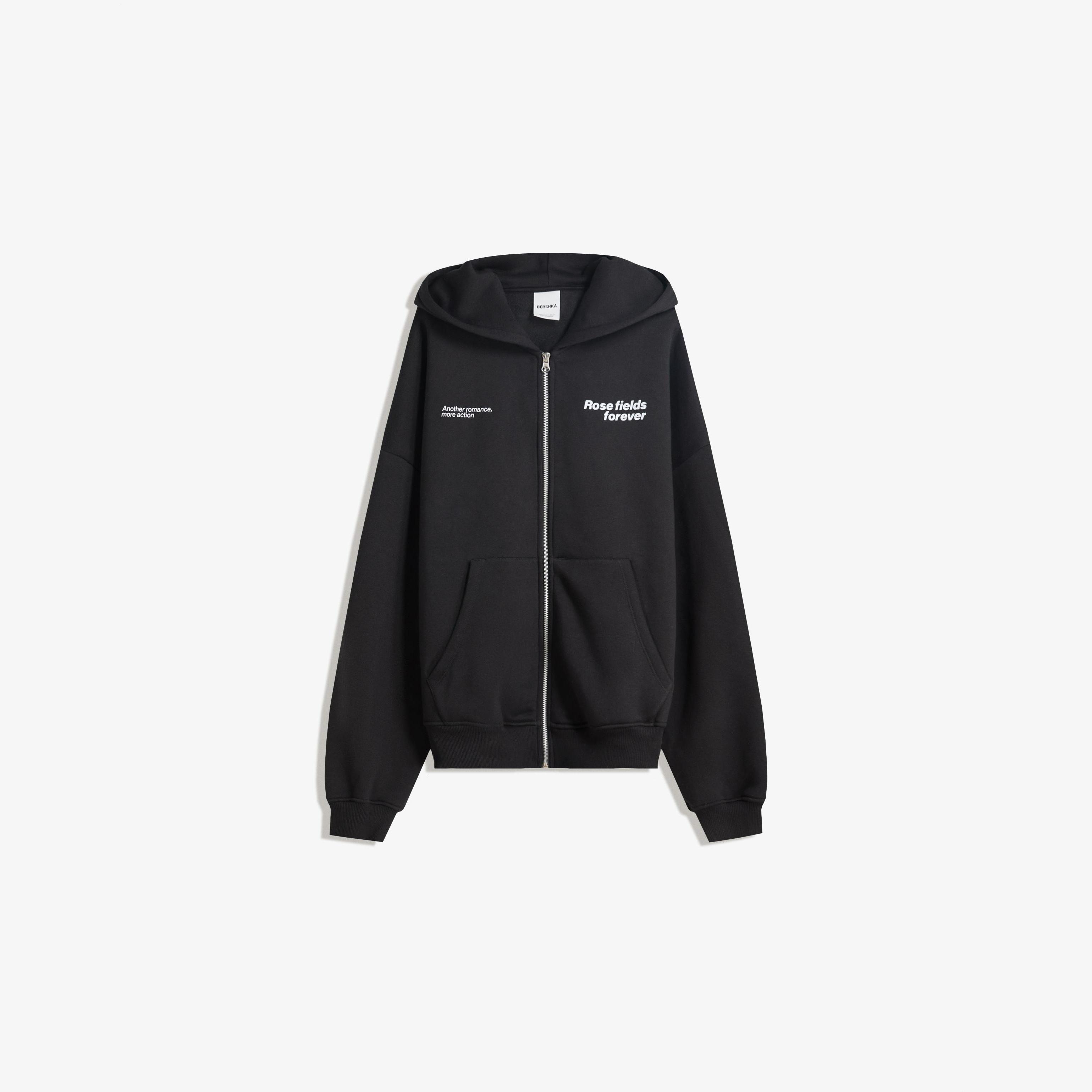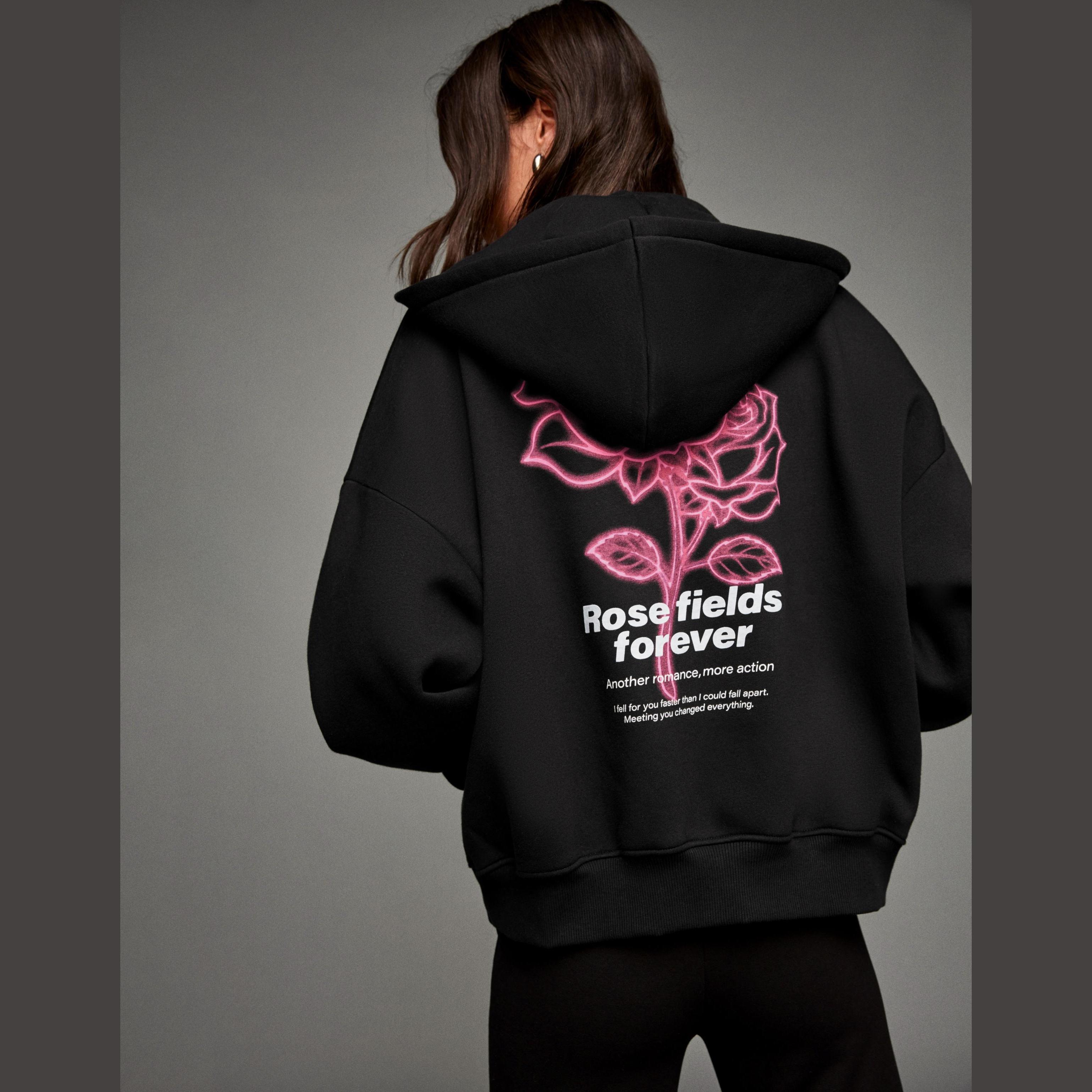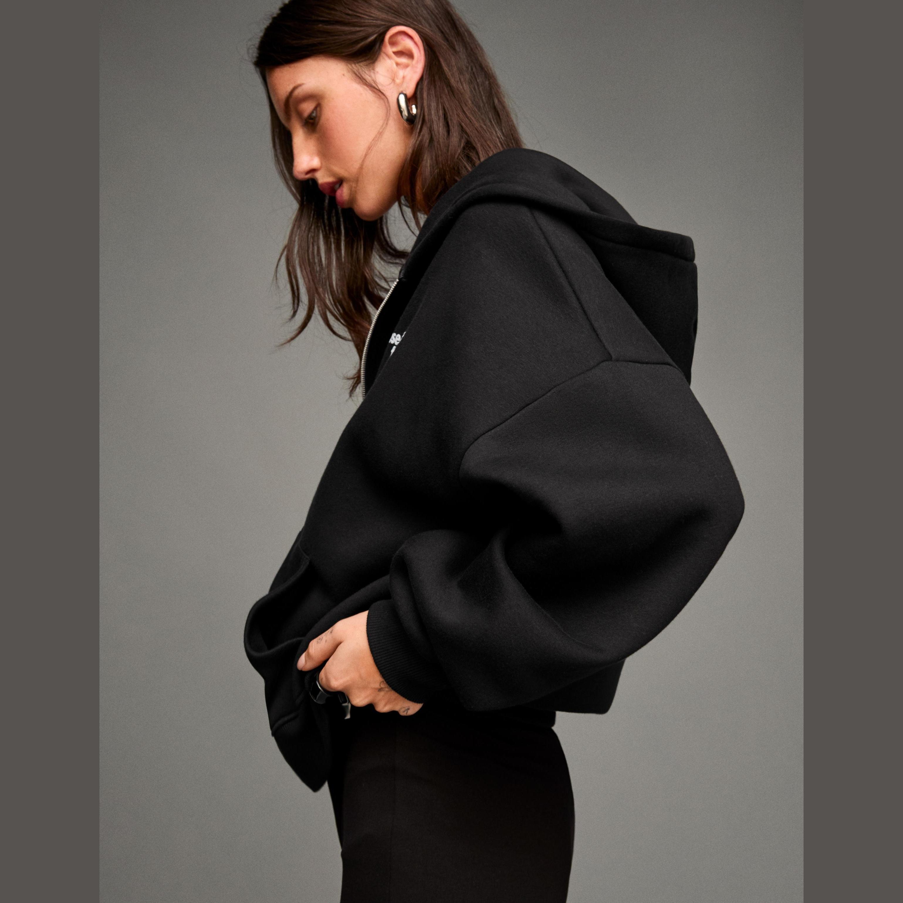 Bershka – هودي أوفرسايز مطبوع بسحاب بلون أسود