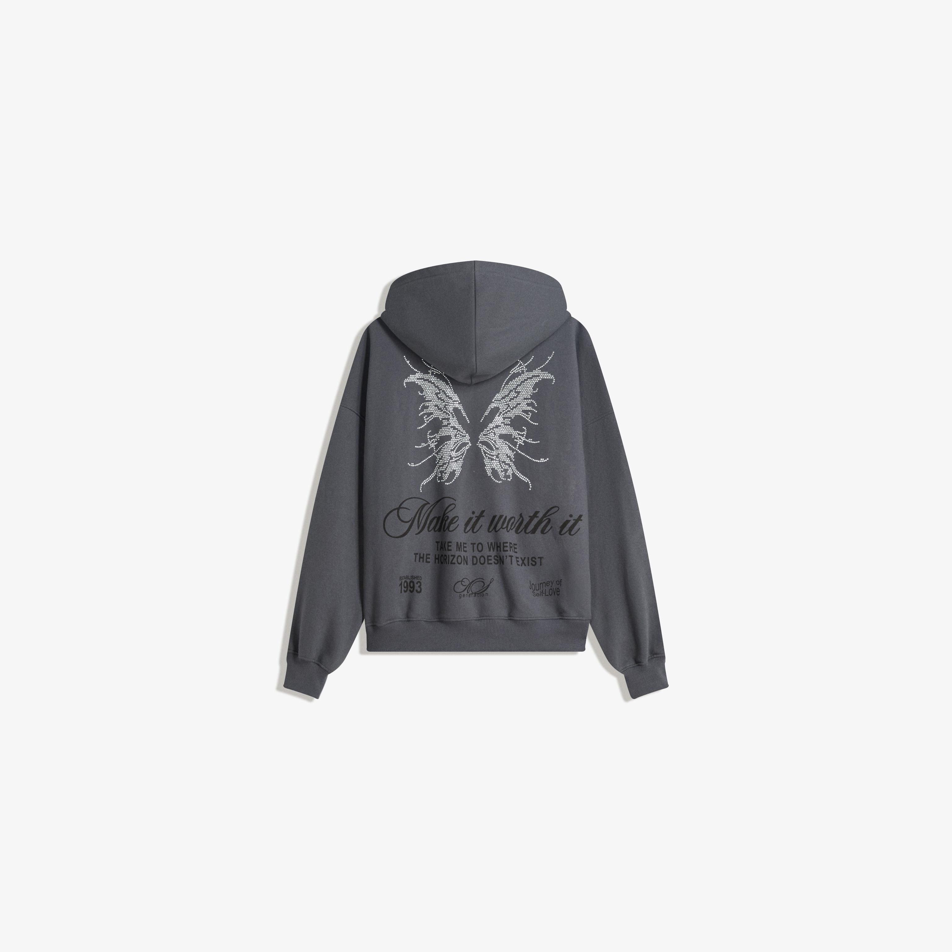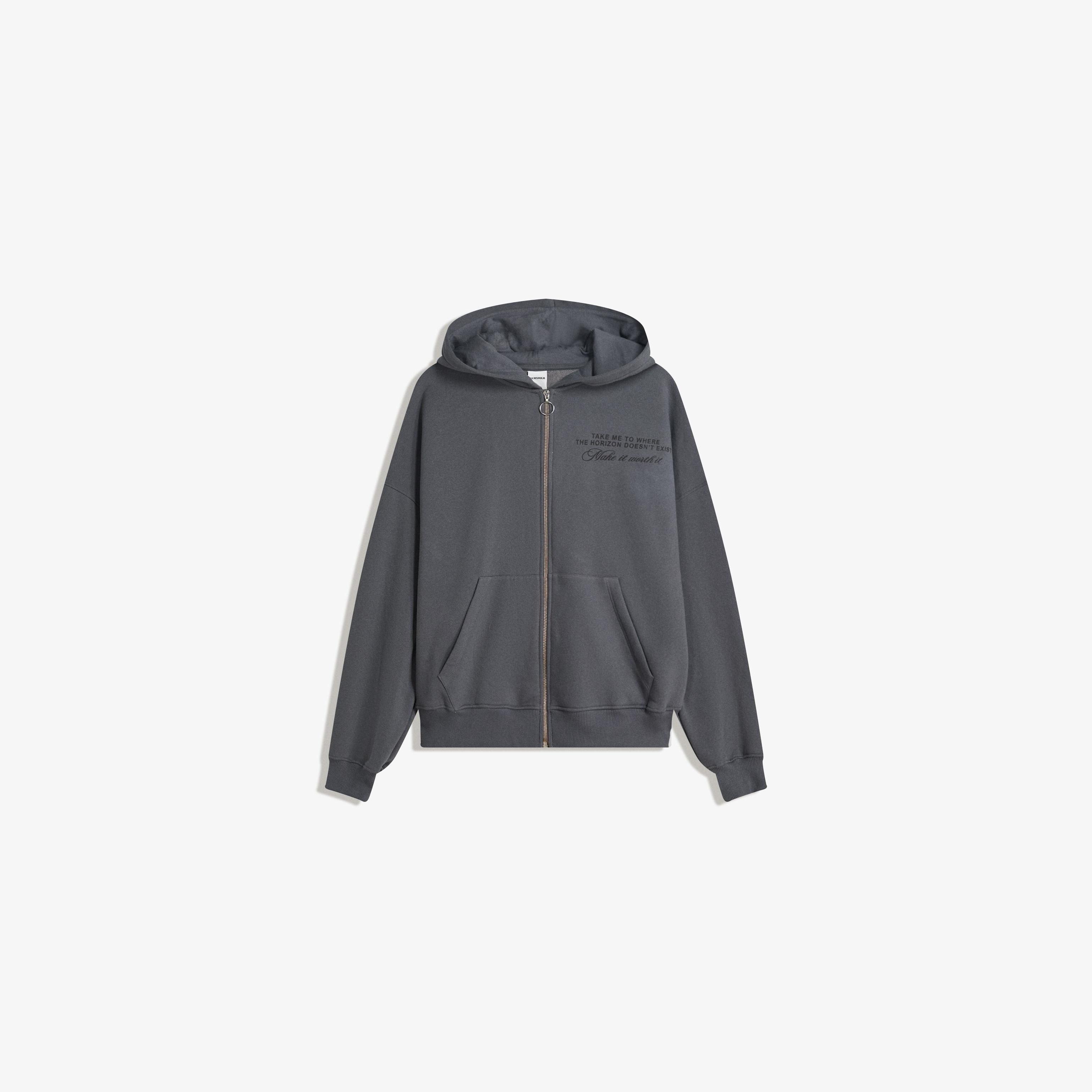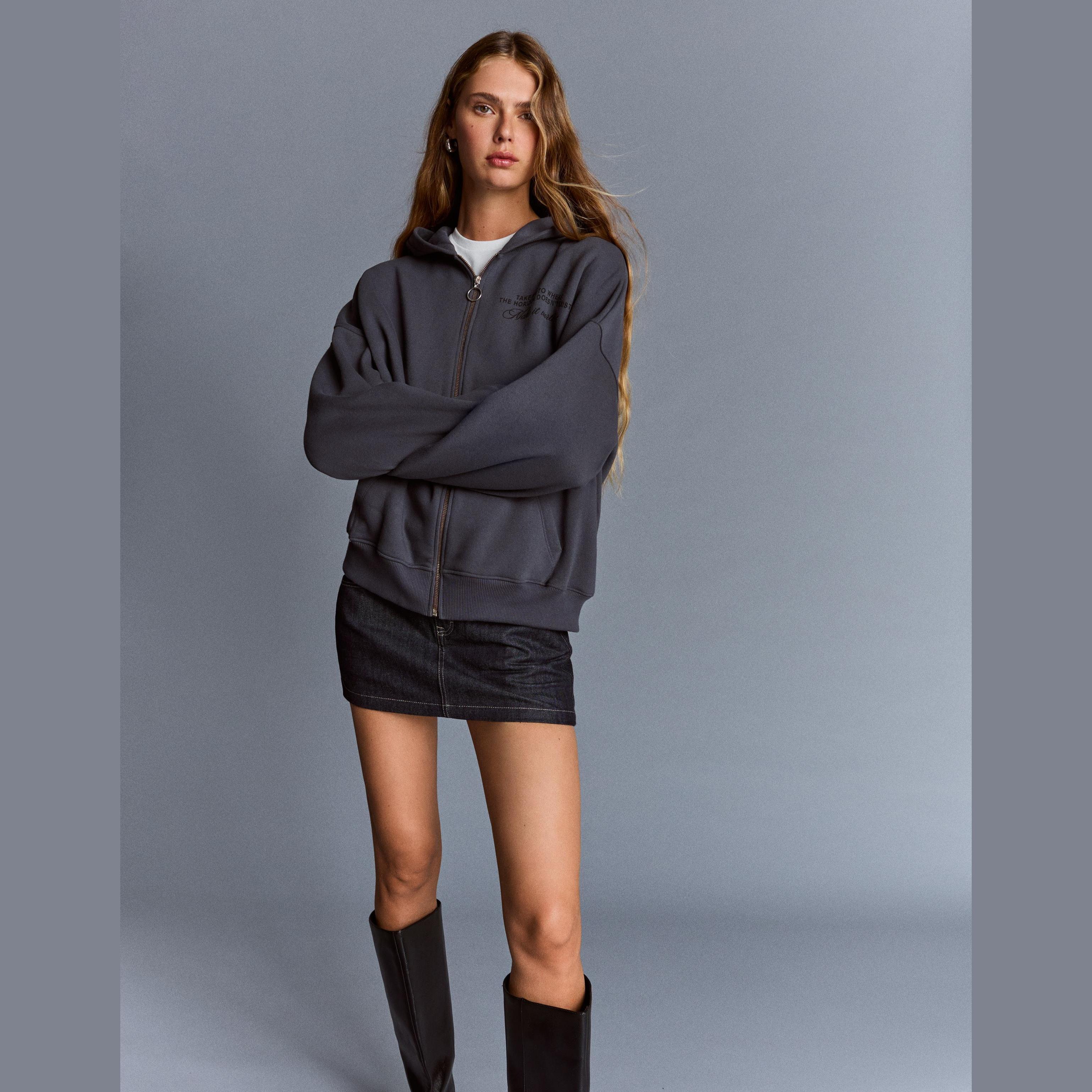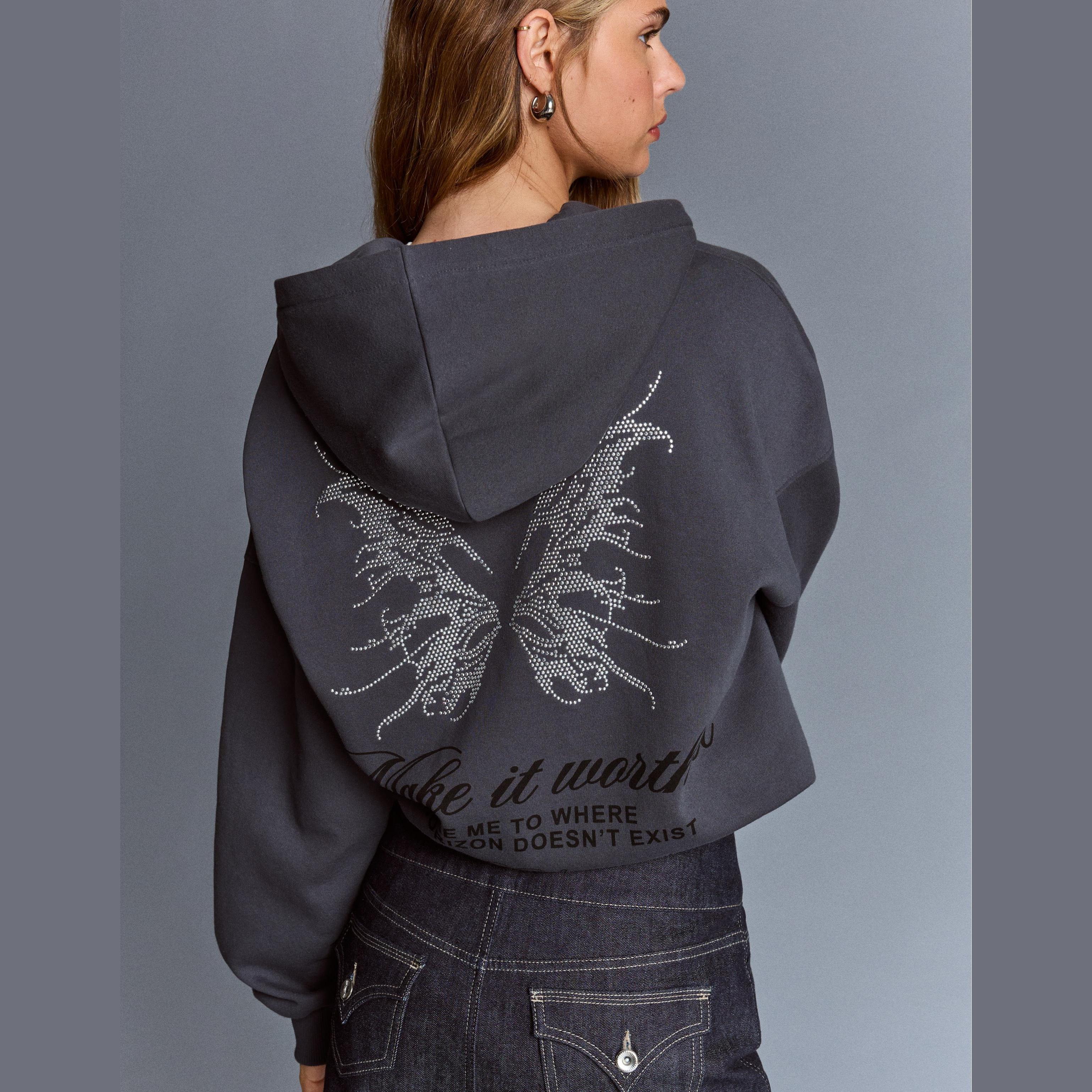 Bershka – هودي أوفرسايز مزين بالمسامير بسحاب بلون رمادي غامق