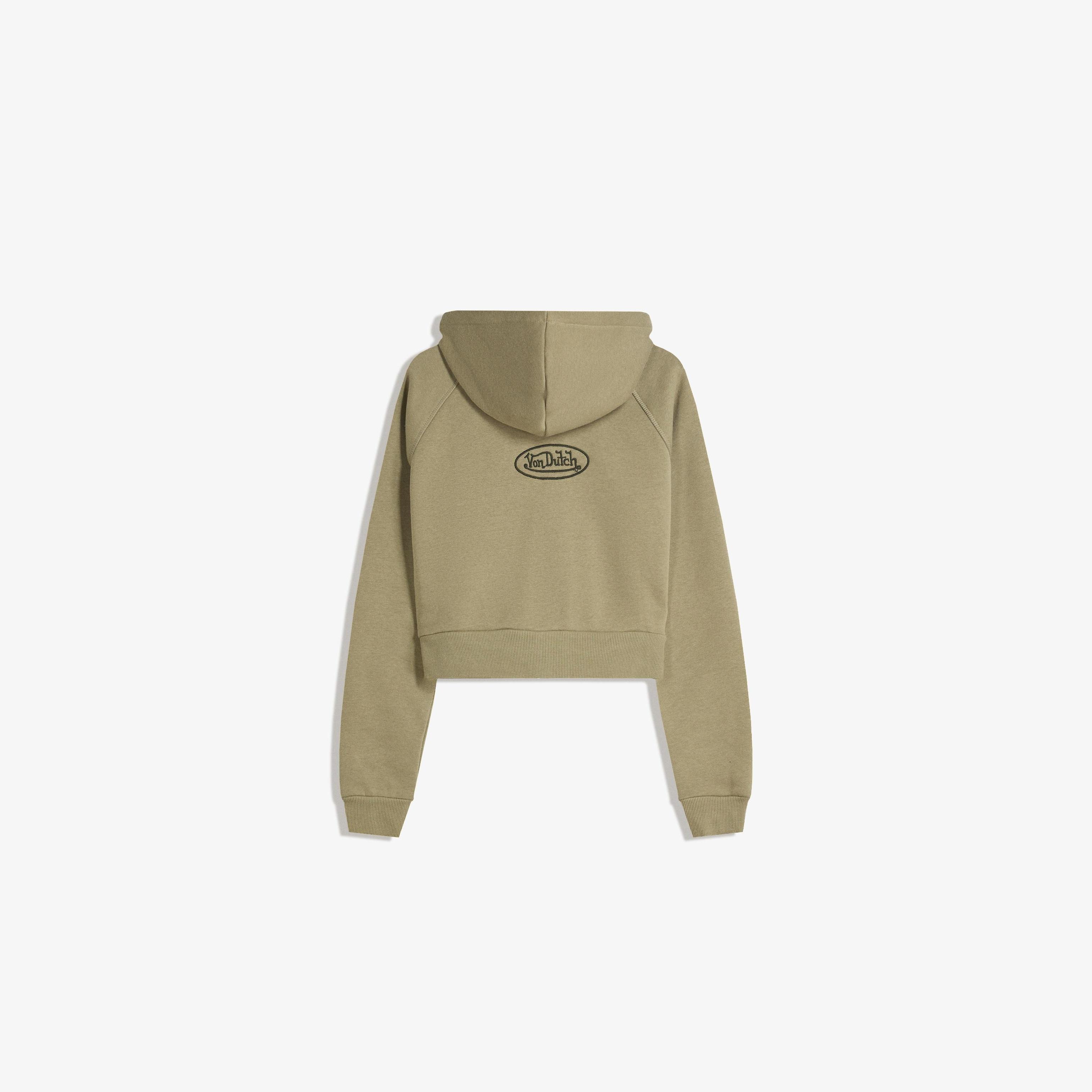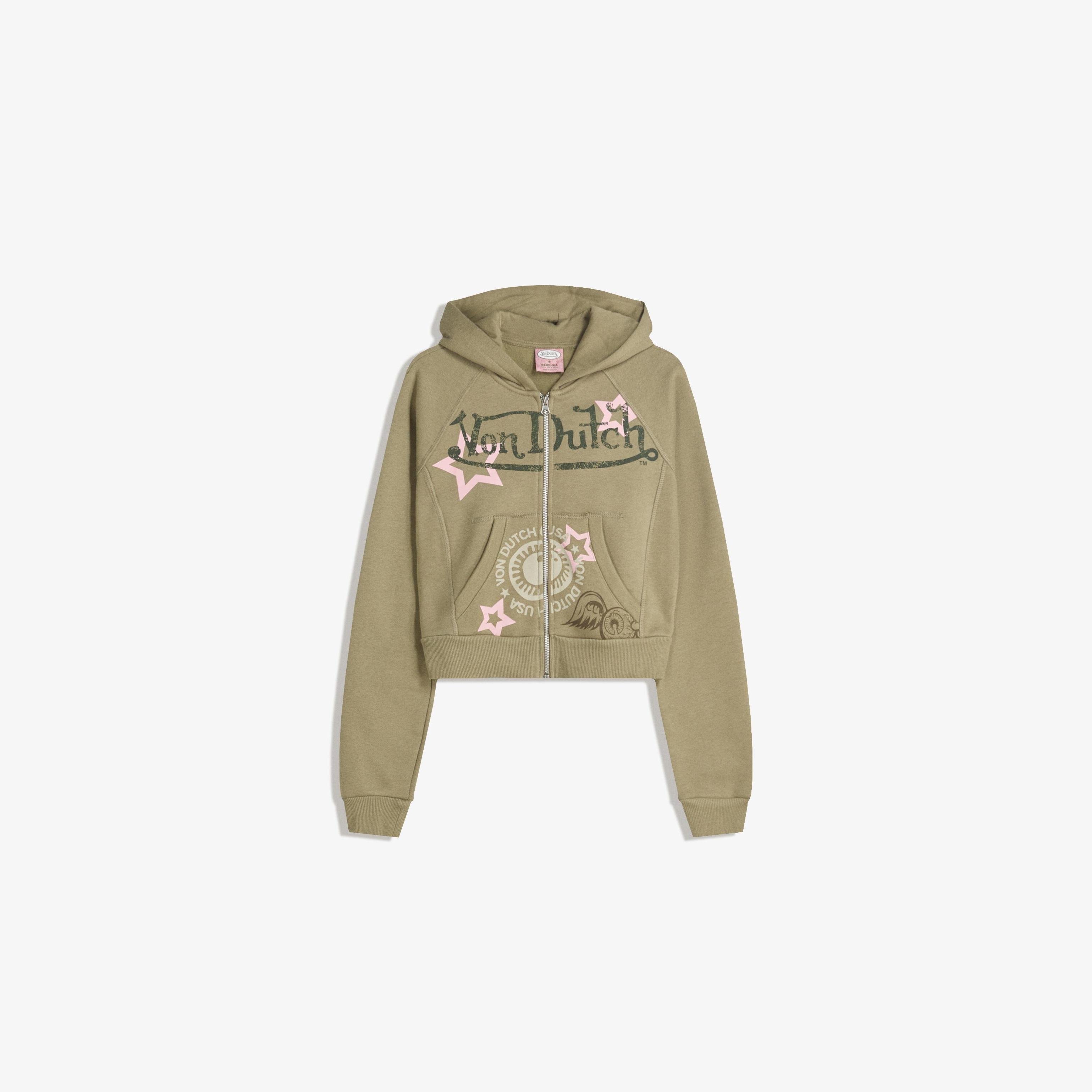 Bershka – هودي أوفرسايز مطبوع Von Dutch بسحاب بلون زيتي