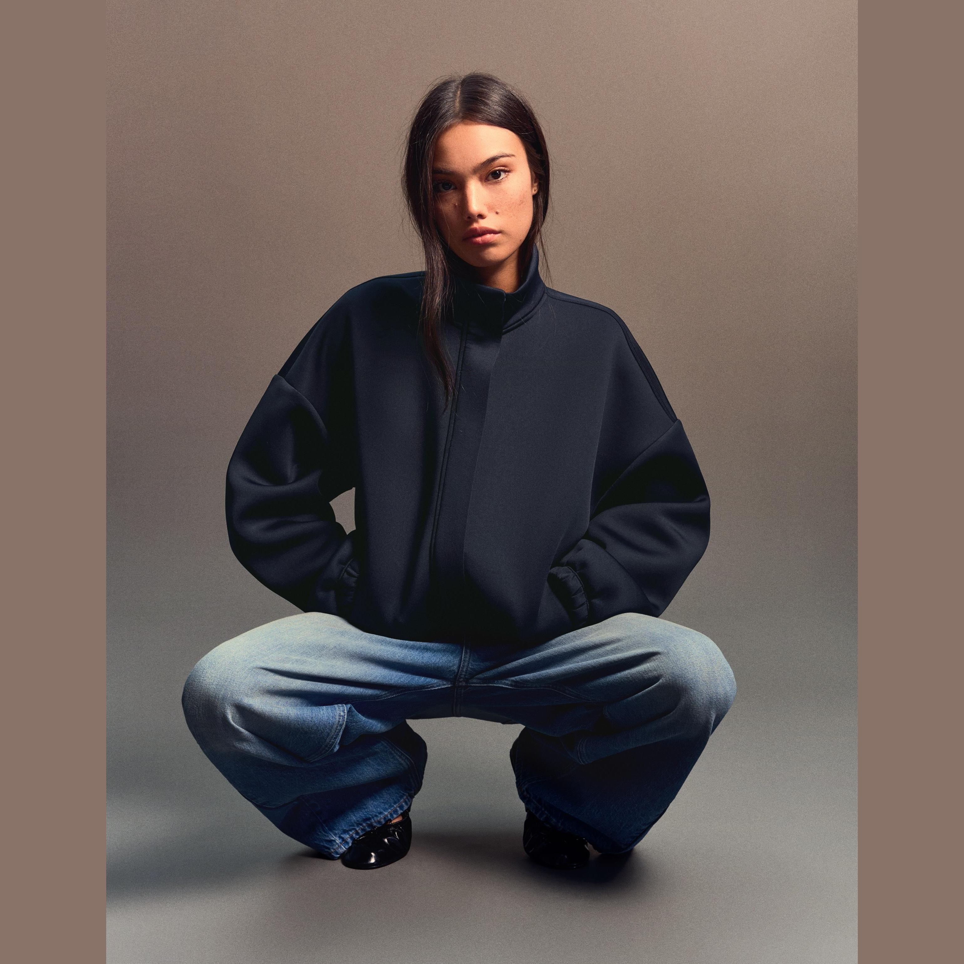 Bershka – جاكيت أوفرسايز بتأثير النيوبرين بلون كحلي
