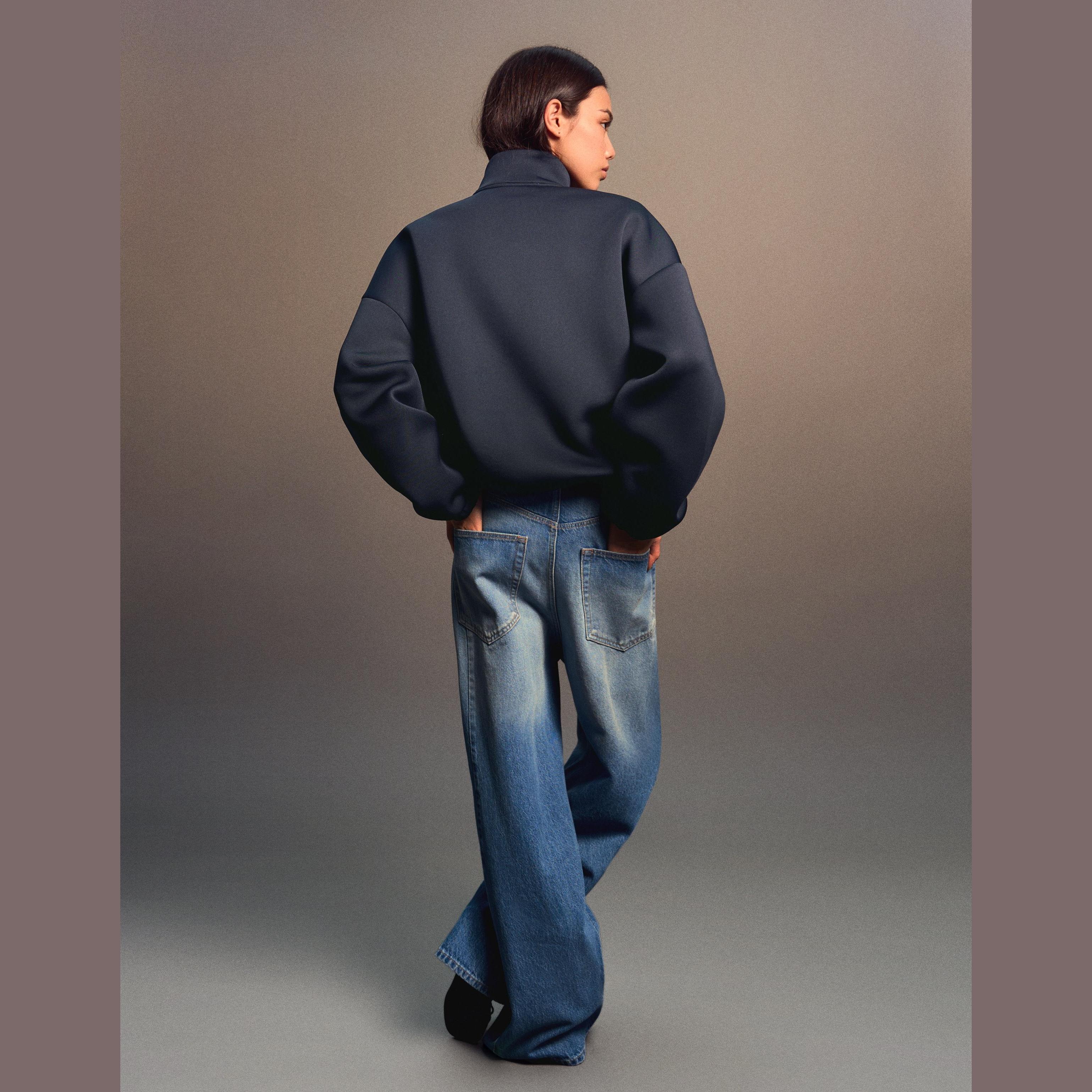 ارتقي بإطلالتك اليومية مع هذا الجاكيت الأوفرسايز من Bershka بتأثير النيوبرين العصري. تصميمه الفضفاض يمنحك راحة مثالية، بينما يضفي اللون الكحلي لمسة أنيقة يمكن تنسيقها بسهولة مع مختلف الإطلالات.