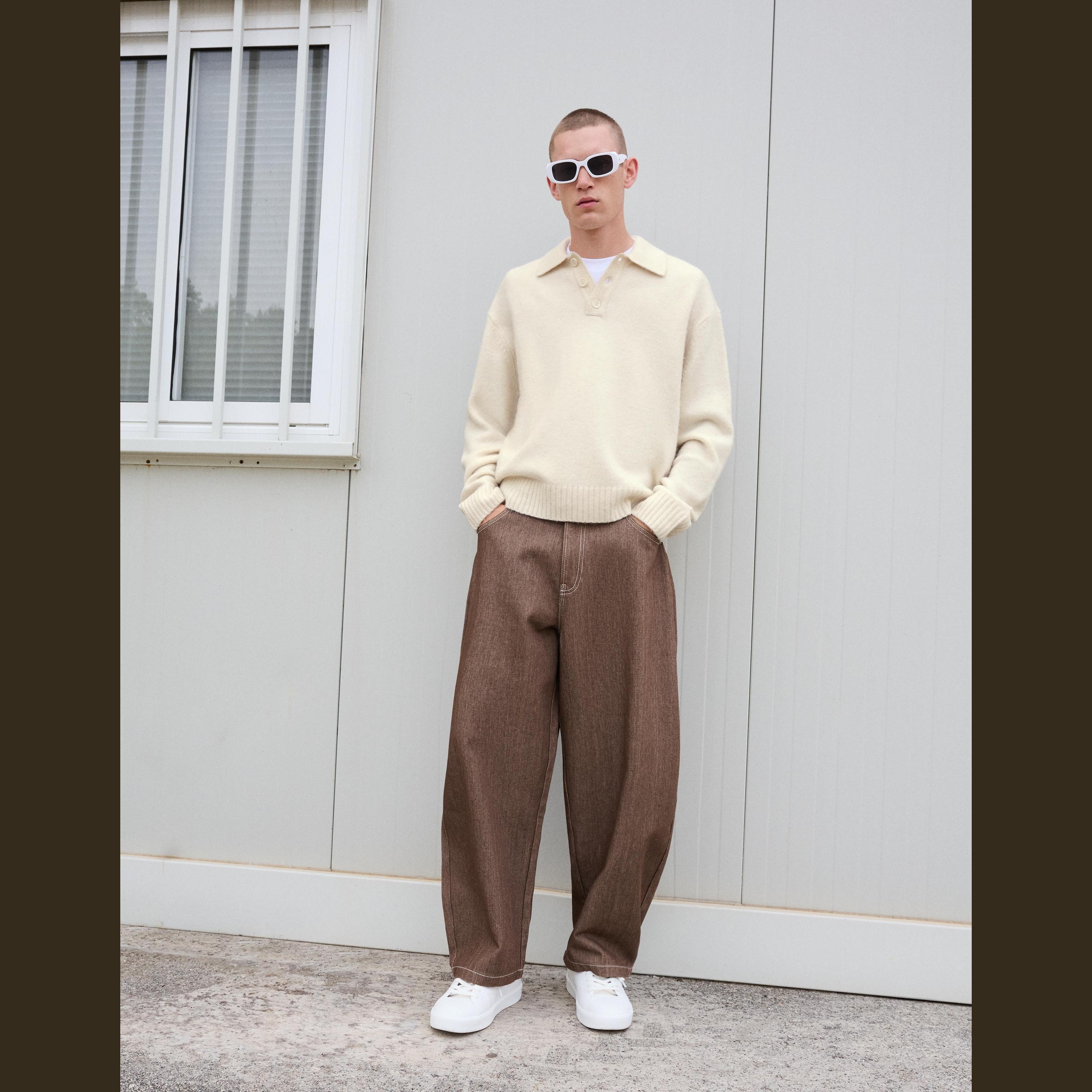 أضف لمسة أنيقة إلى إطلالتك مع هذه الكنزة من Bershka المصممة بياقة بولو تضيف طابعًا كلاسيكيًا بلمسة عصرية. اللون البيج الرملي يمنحك دفئًا وحيادية مثالية للتنسيق، والخامة المختلطة توفر راحة مثالية للأجواء المتقلبة.
