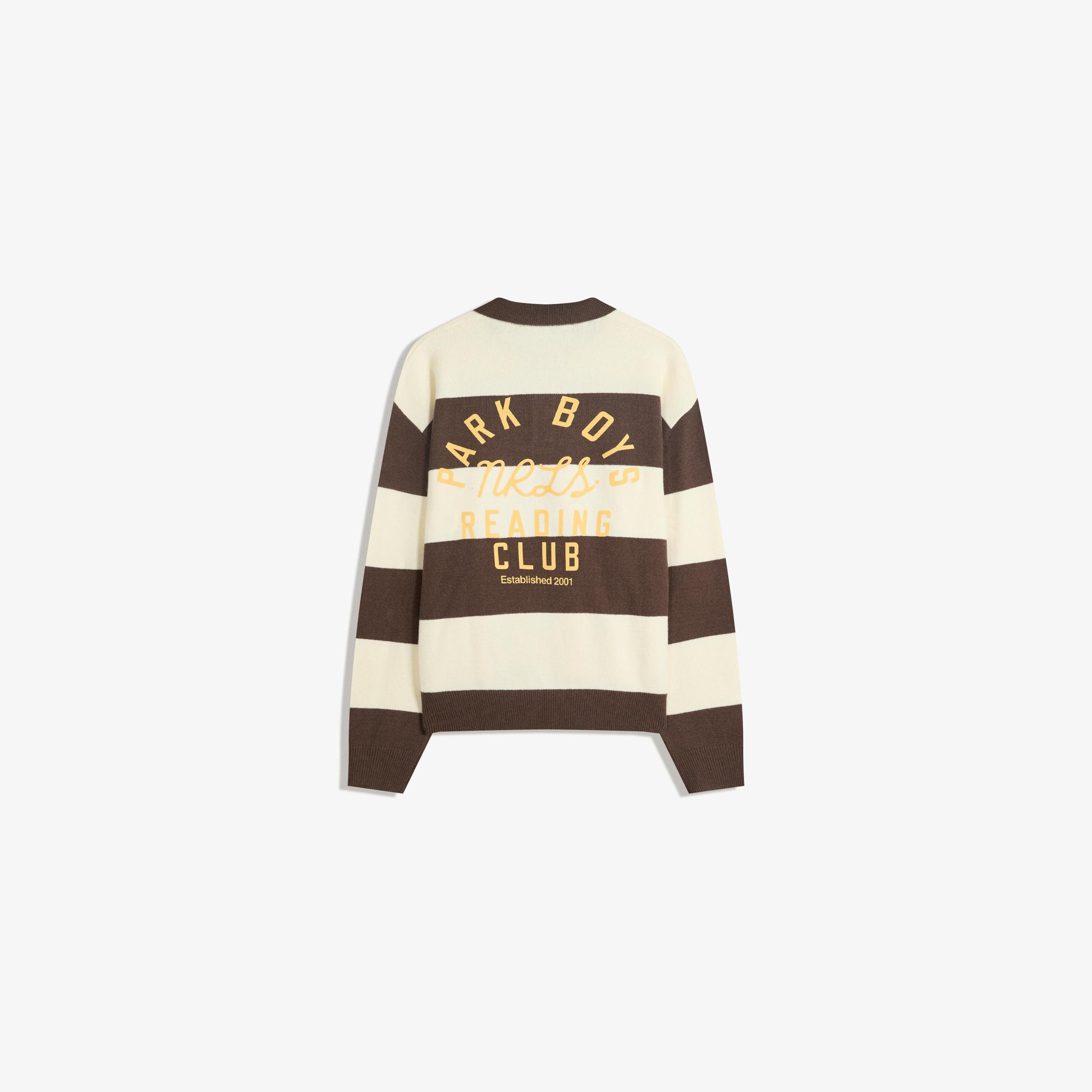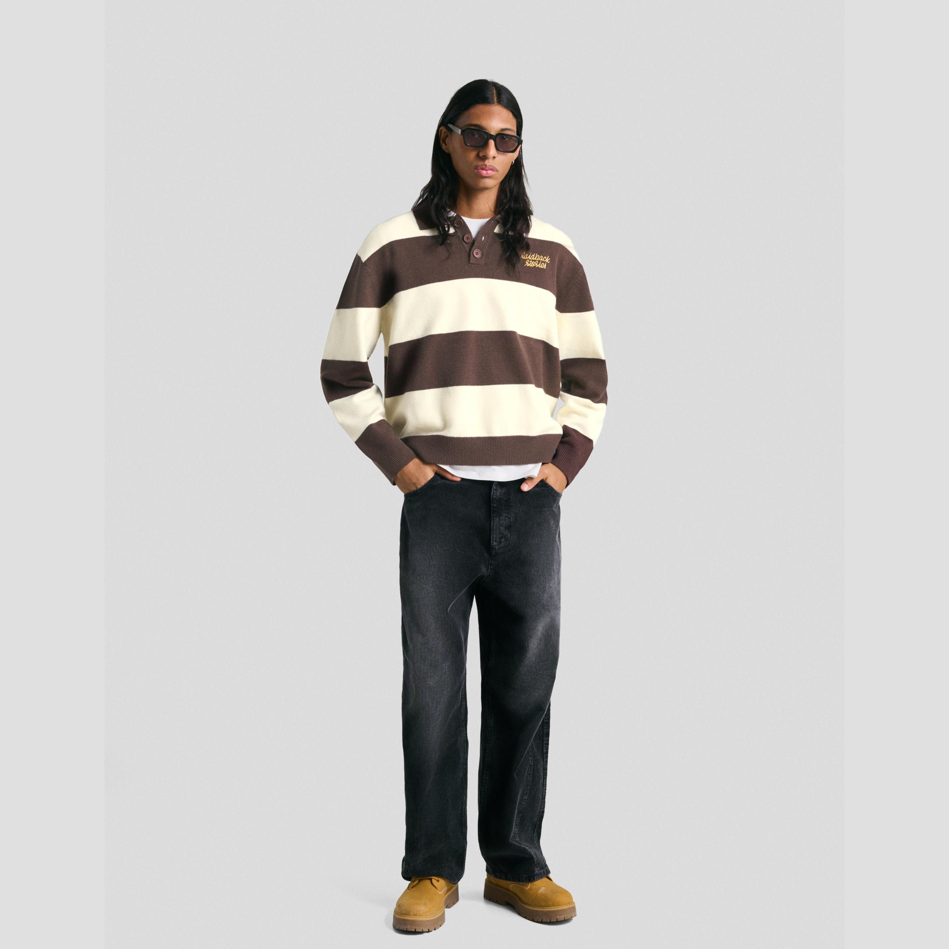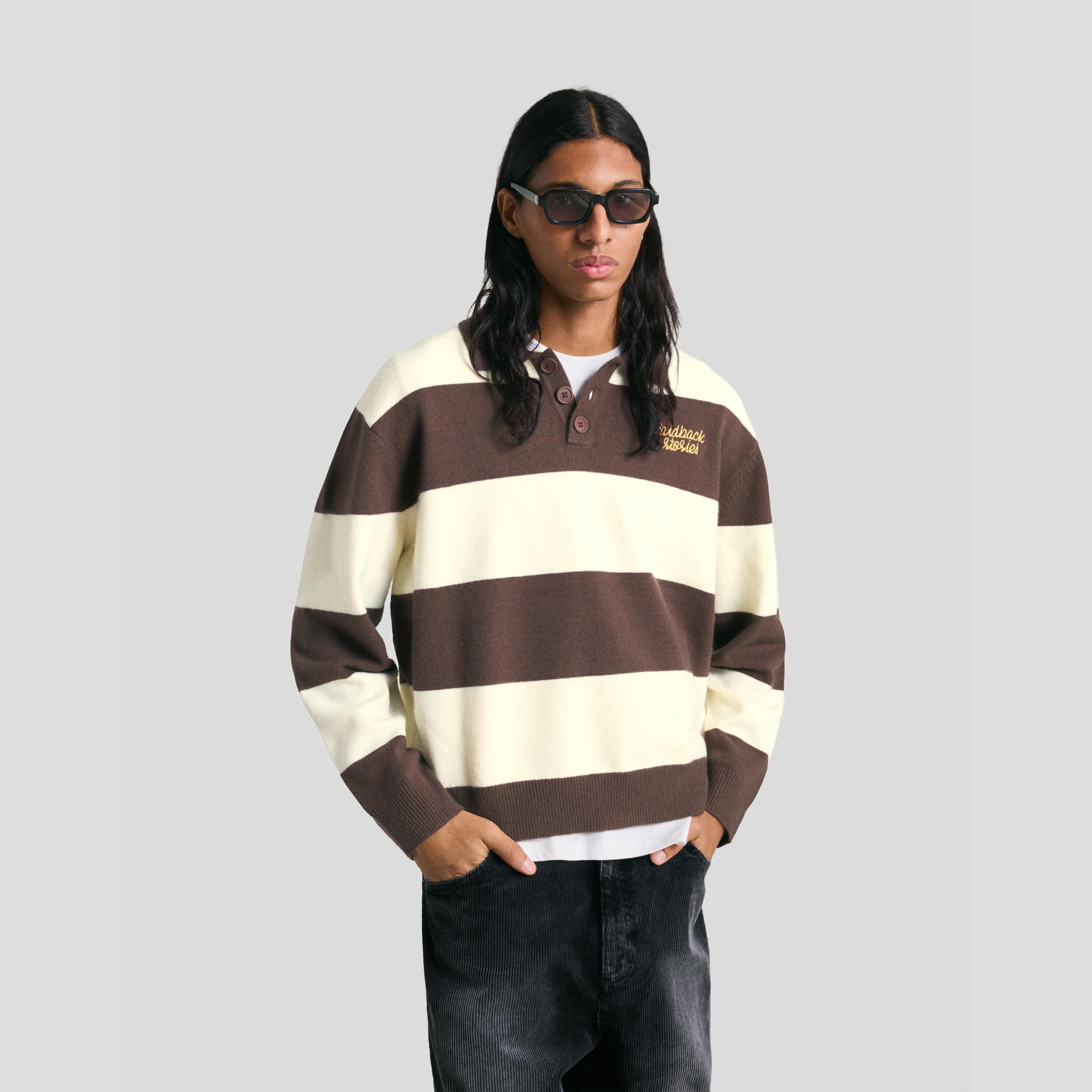 كنزة بياقة بولو مخططة بلون بني من Bershka