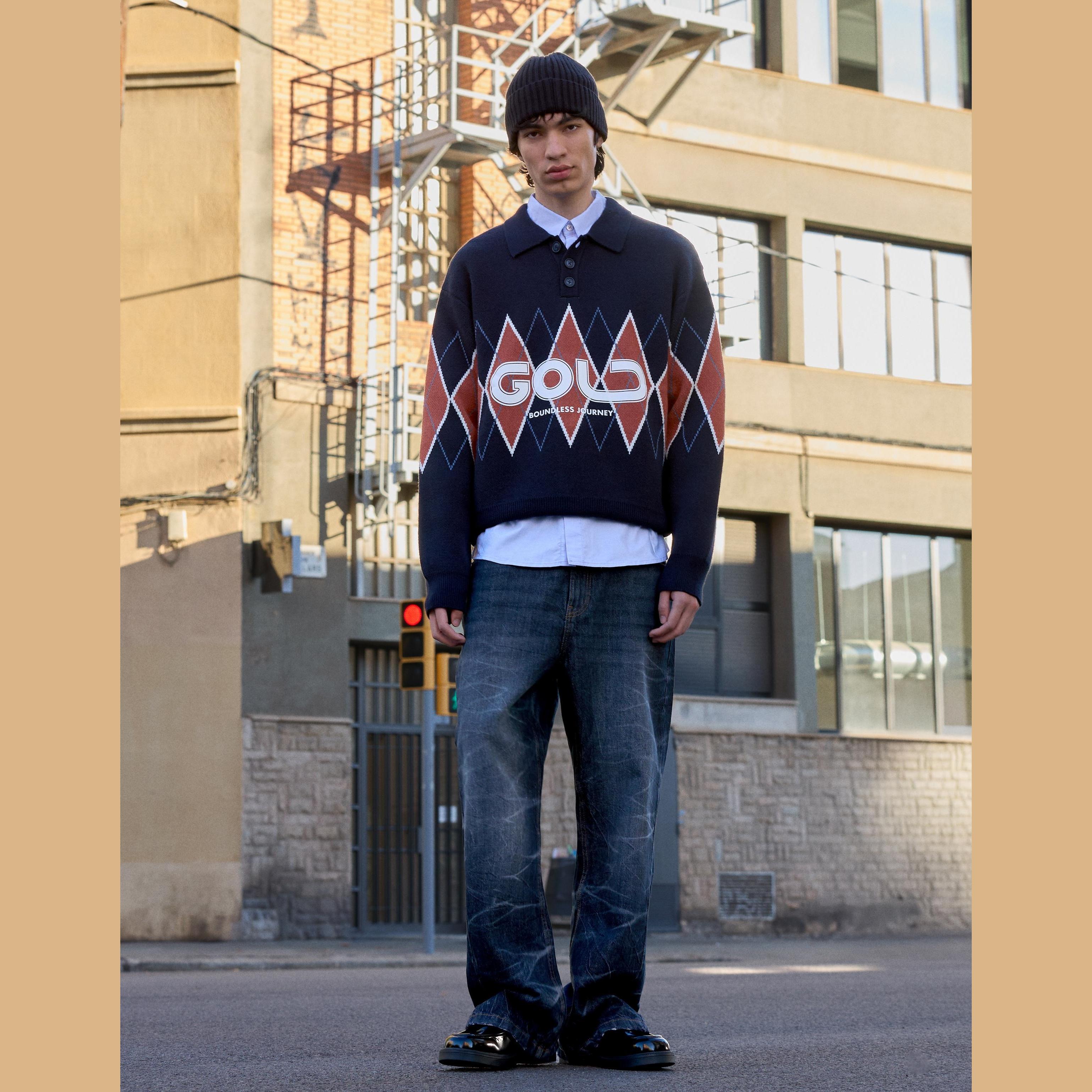 تميّز بإطلالة فريدة تجمع بين الطابع الكلاسيكي واللمسة الشبابية الجريئة مع هذه الكنزة من Bershka. التصميم بياقة بولو يضفي أناقة تقليدية، بينما الطبعة تضيف شخصية مميزة. اللون الكحلي يمنحك حيادية أنيقة، والخامة المختلطة توفر ملمسًا ناعمًا وراحة مثالية للأجواء الباردة.