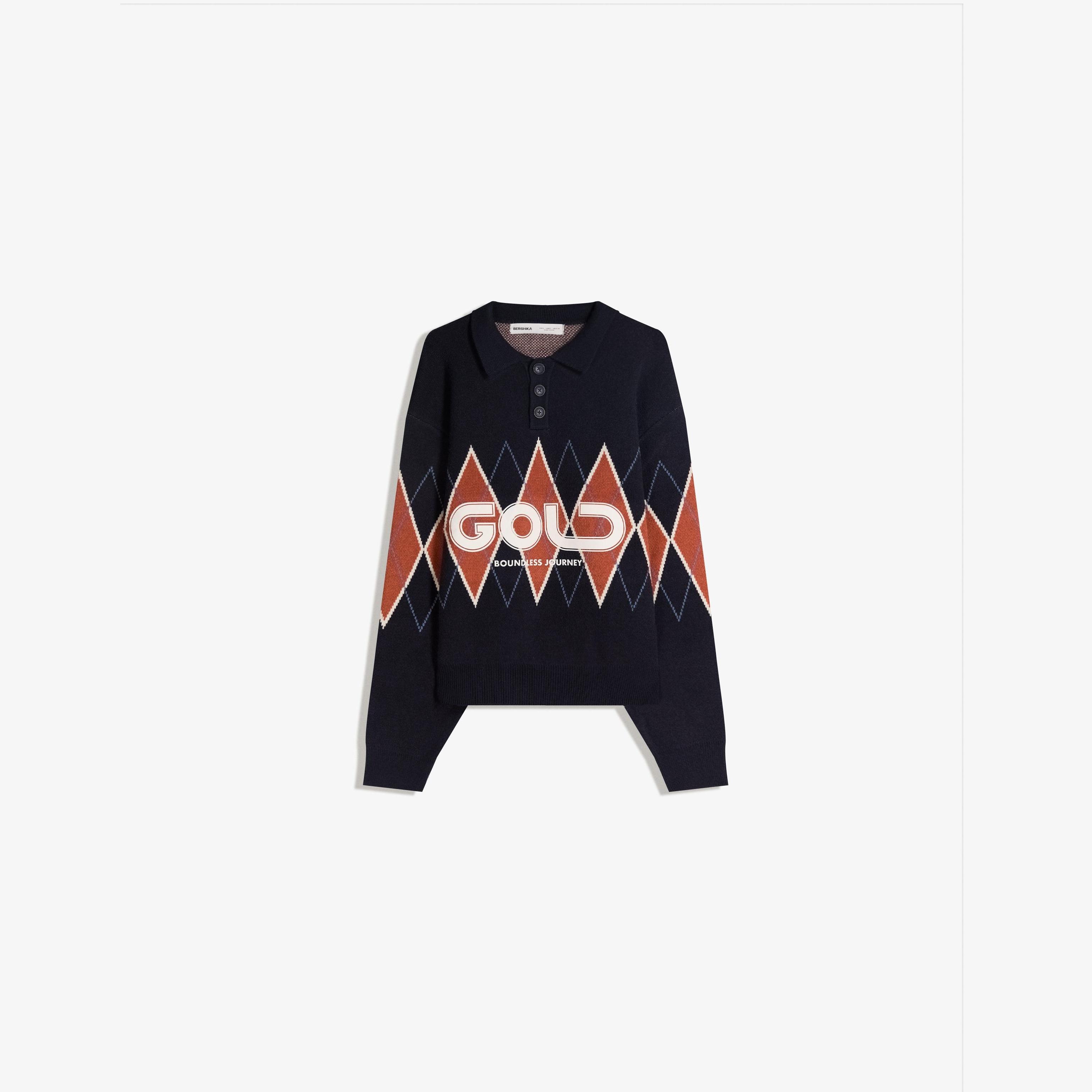 كنزة مطبوعة بياقة بولو بلون كحلي من Bershka