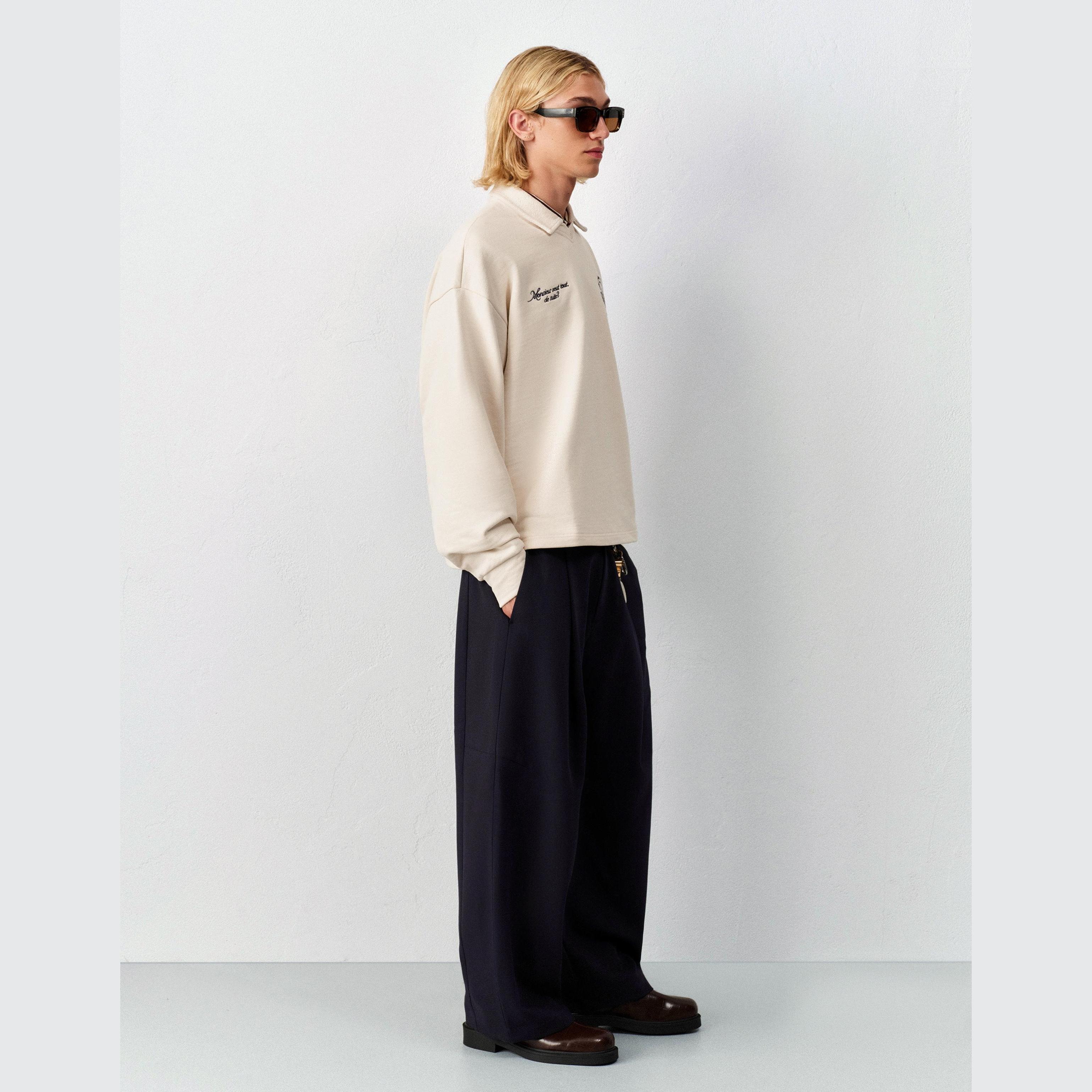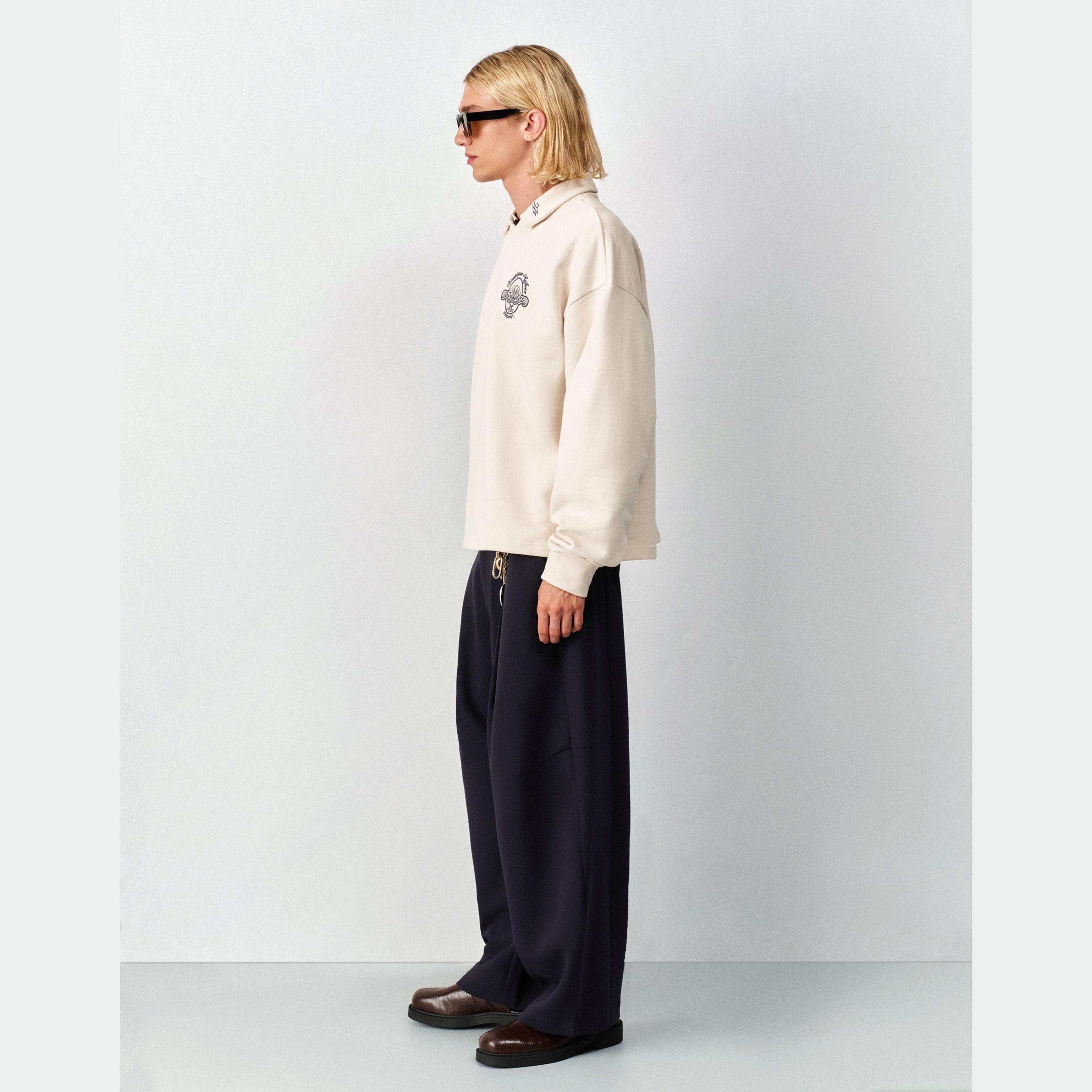 تميّز بإطلالة تجمع بين الراحة والستايل العصري مع هذا التيشيرت من Bershka المصمم بياقة بولو وأكمام طويلة، وطبعة شبابية تضيف لمسة جريئة إلى مظهرك. اللون الكريمي يمنحك حيادية ناعمة، والخامة القطنية توفر ملمسًا طبيعيًا وراحة مثالية طوال اليوم.
