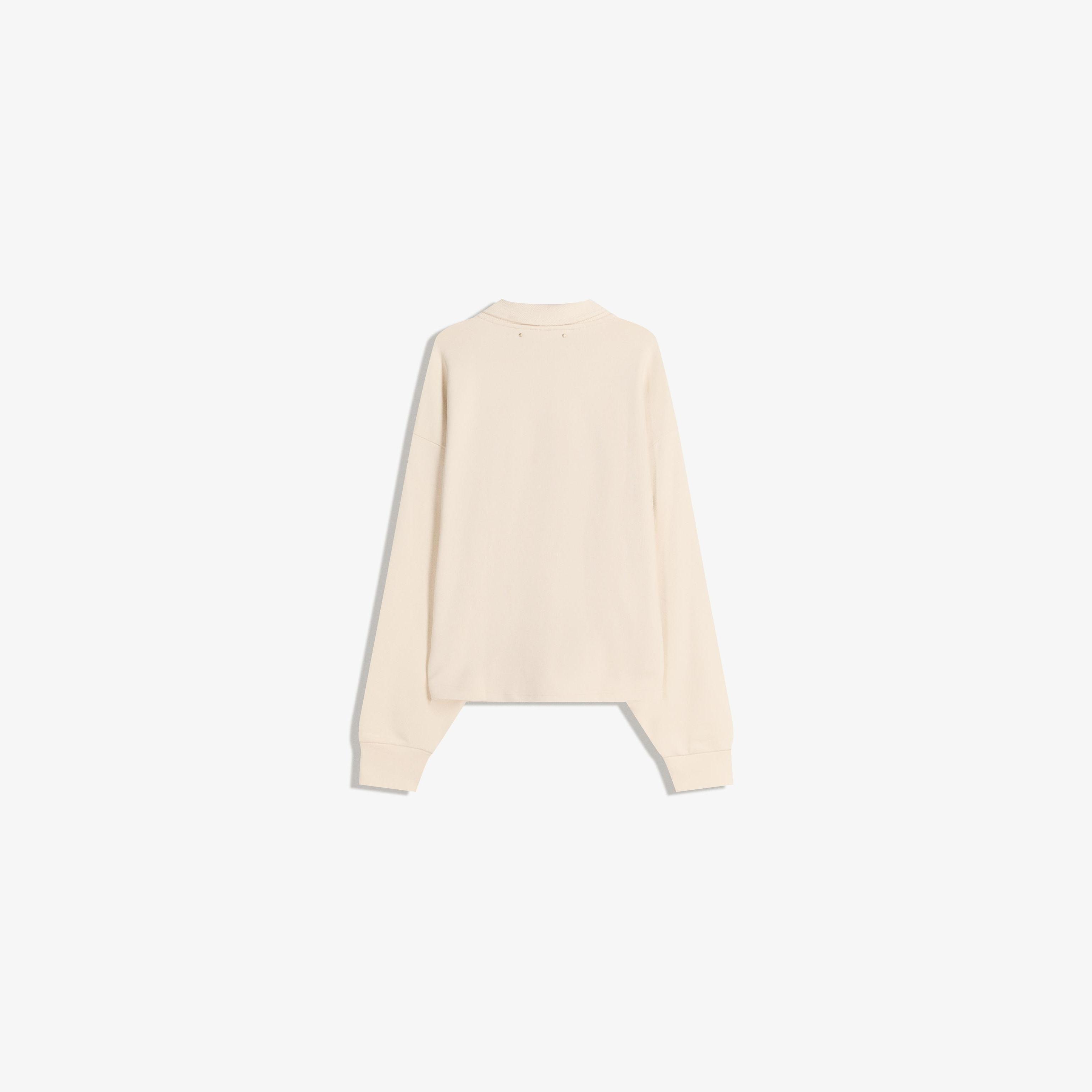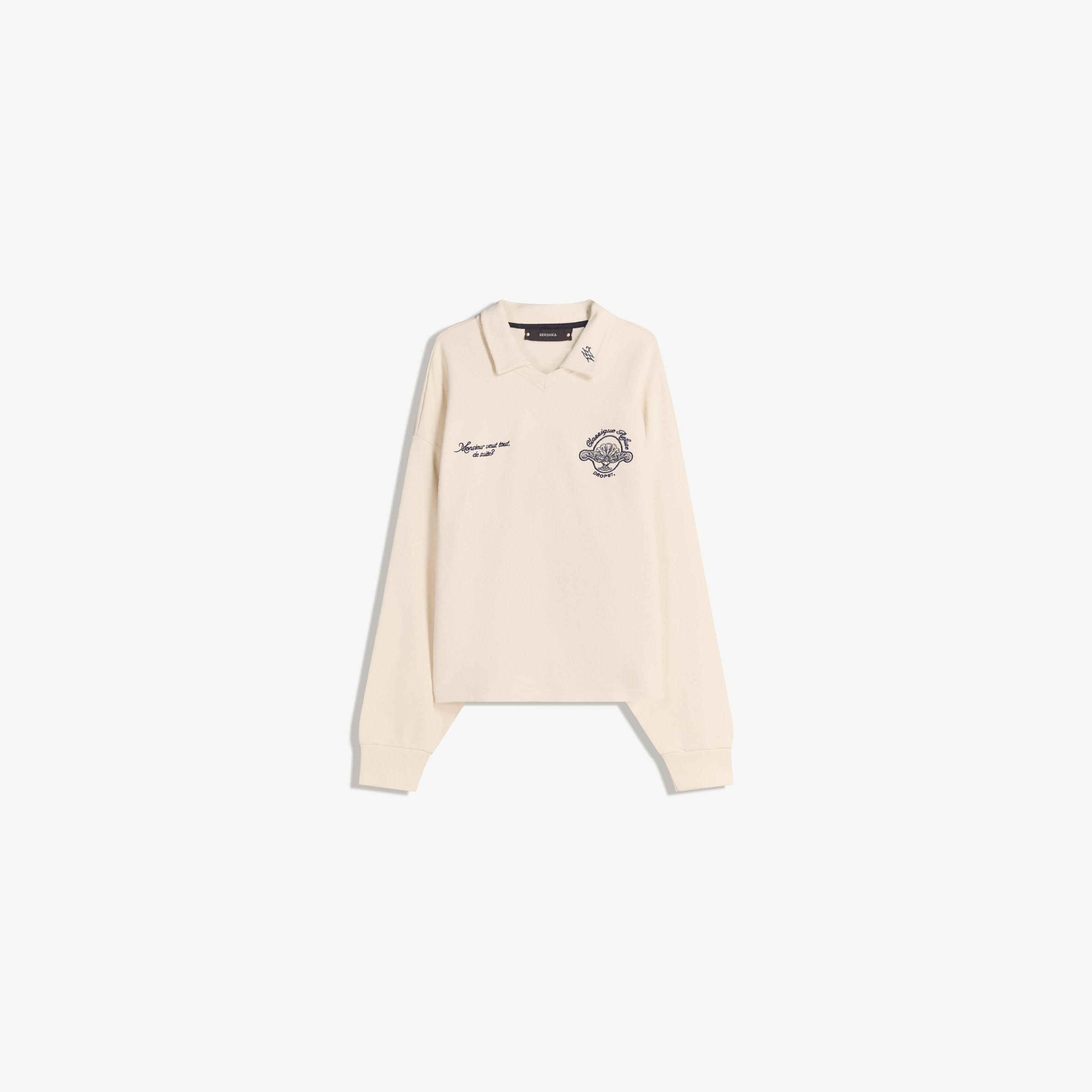 تيشيرت مطبوع بياقة بولو وأكمام طويلة بلون كريمي من Bershka