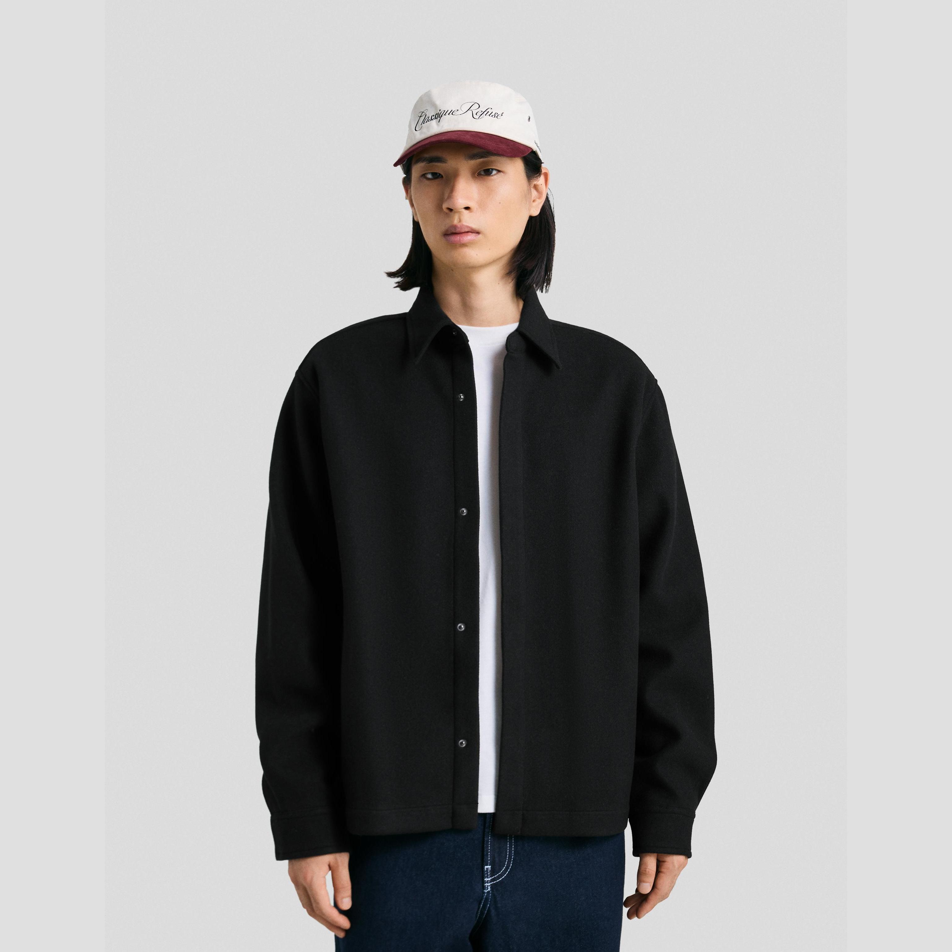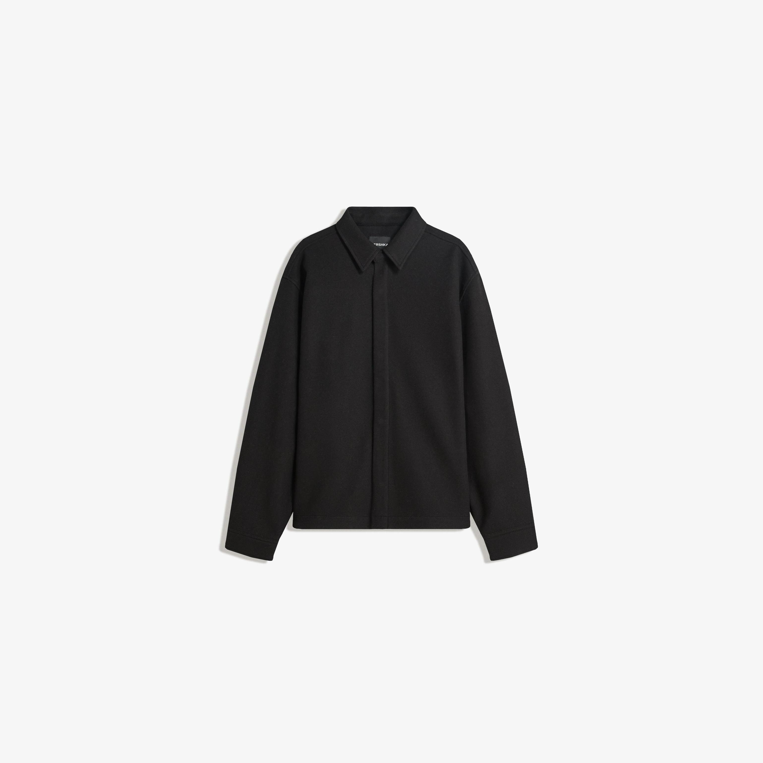 قميص فلانيل واسع بلون أسود من Bershka