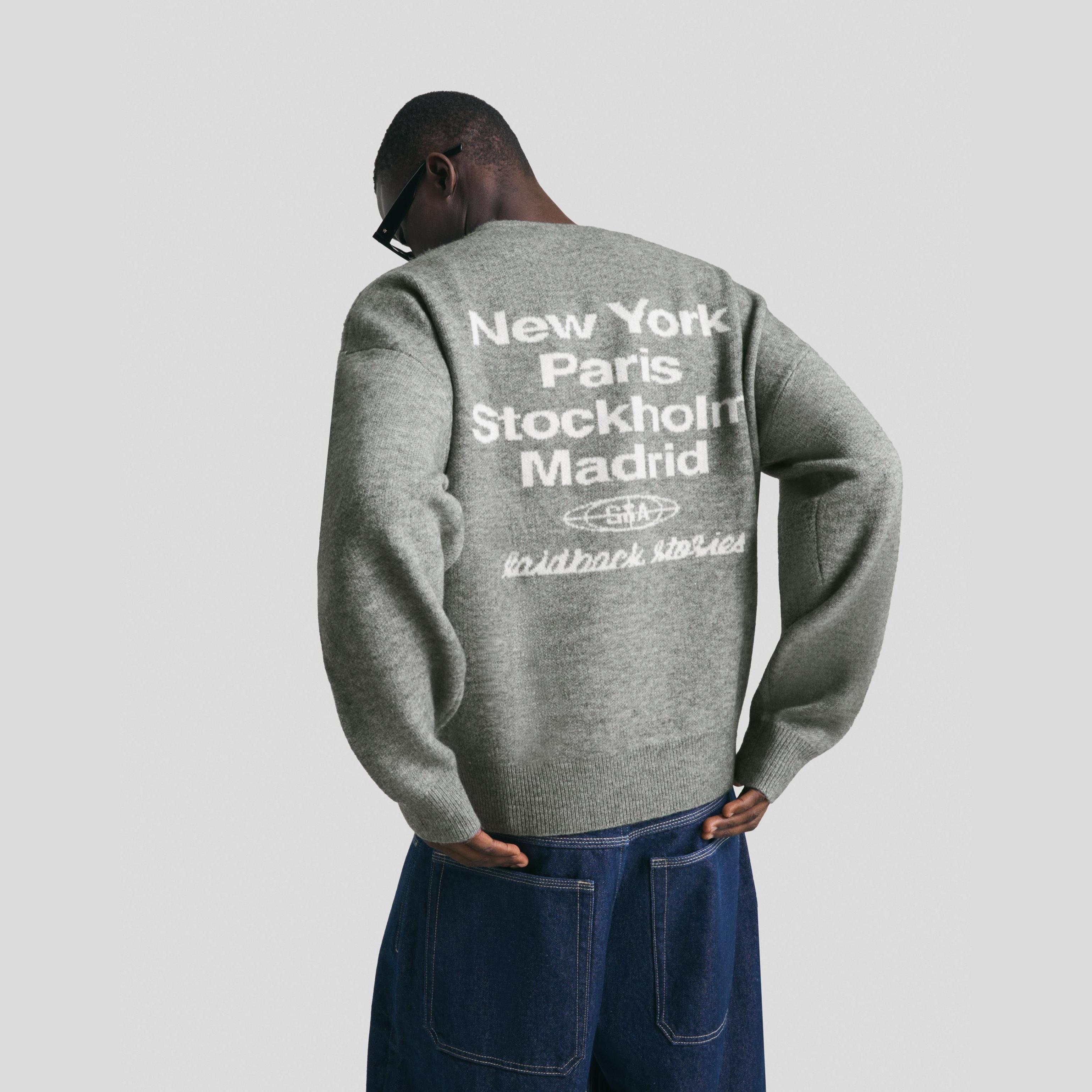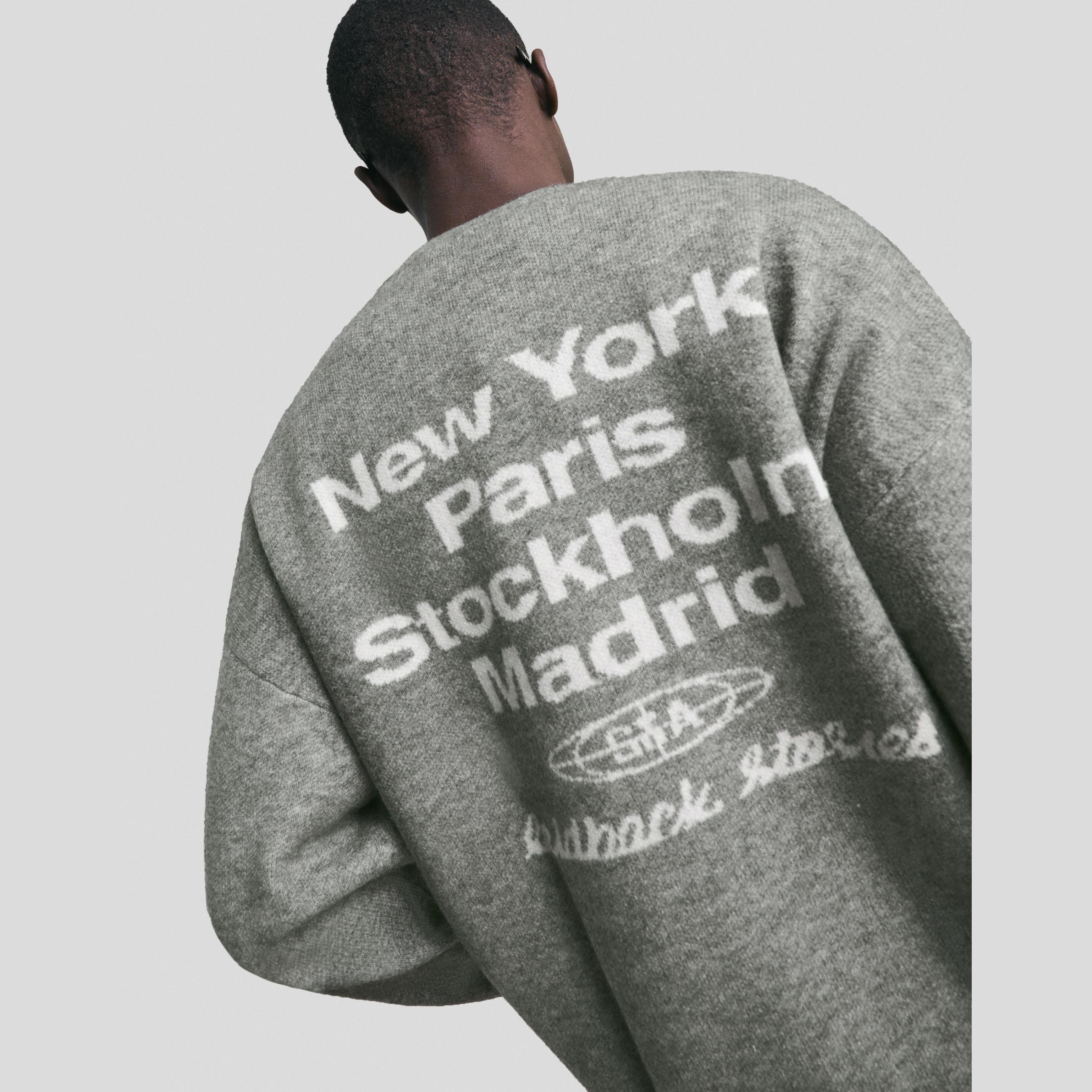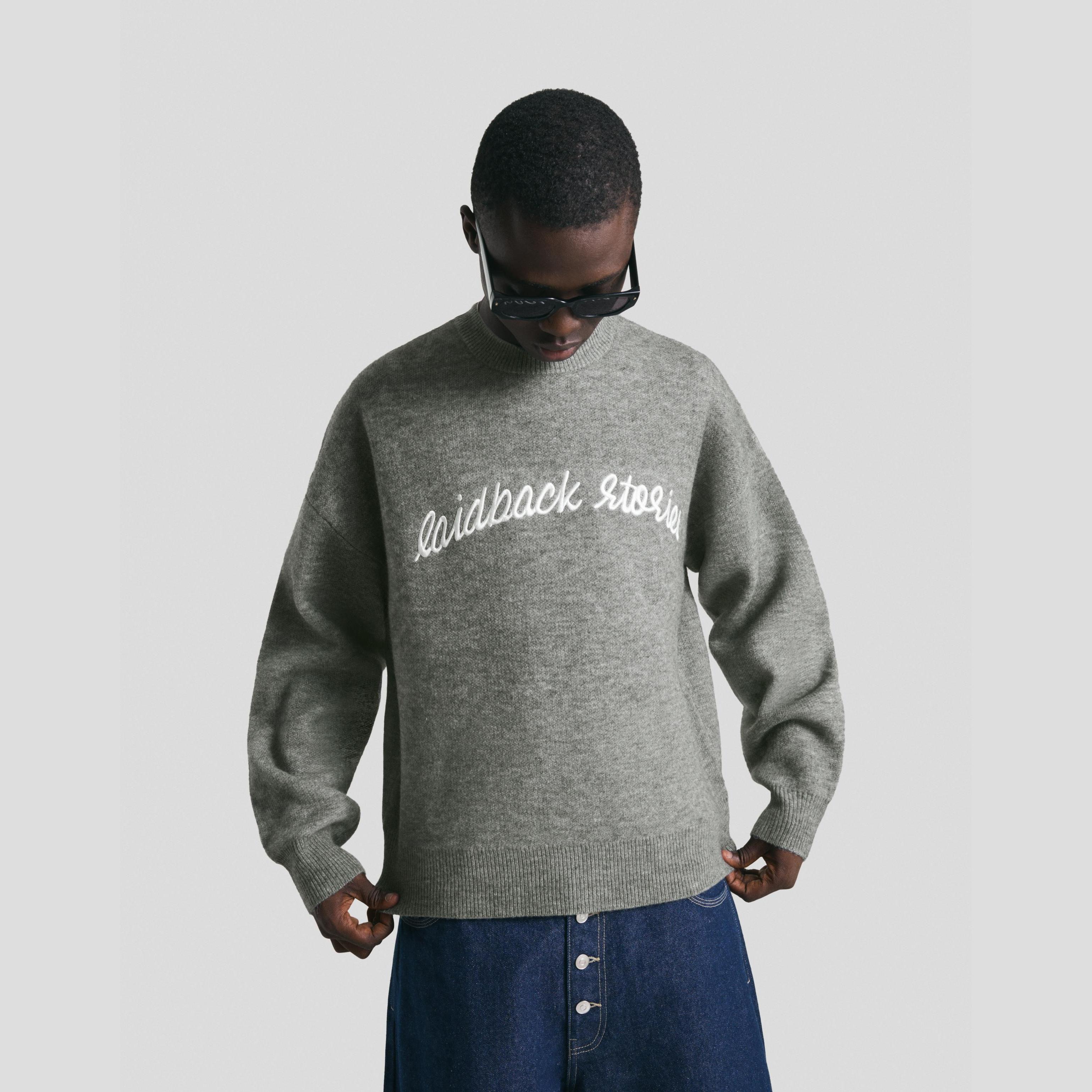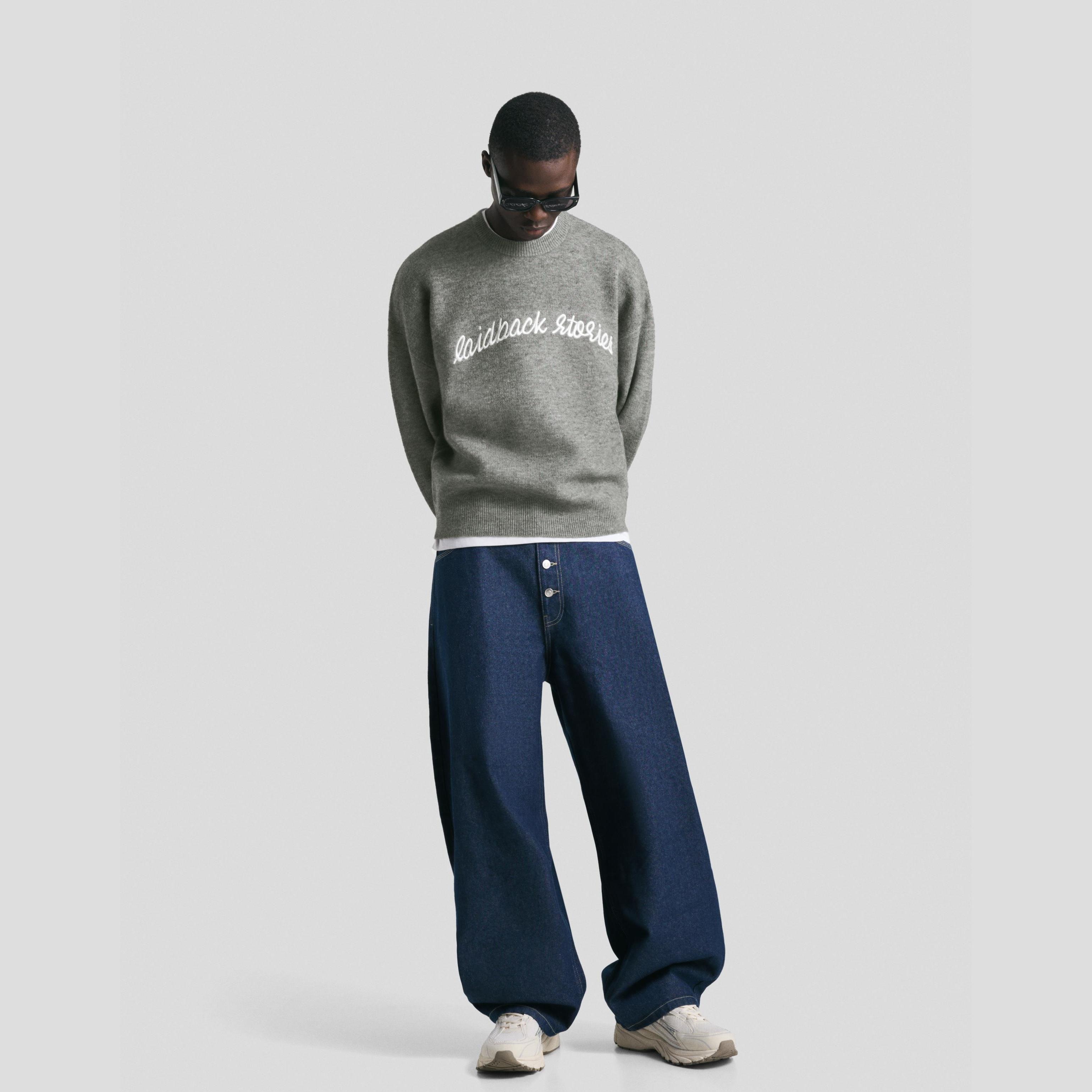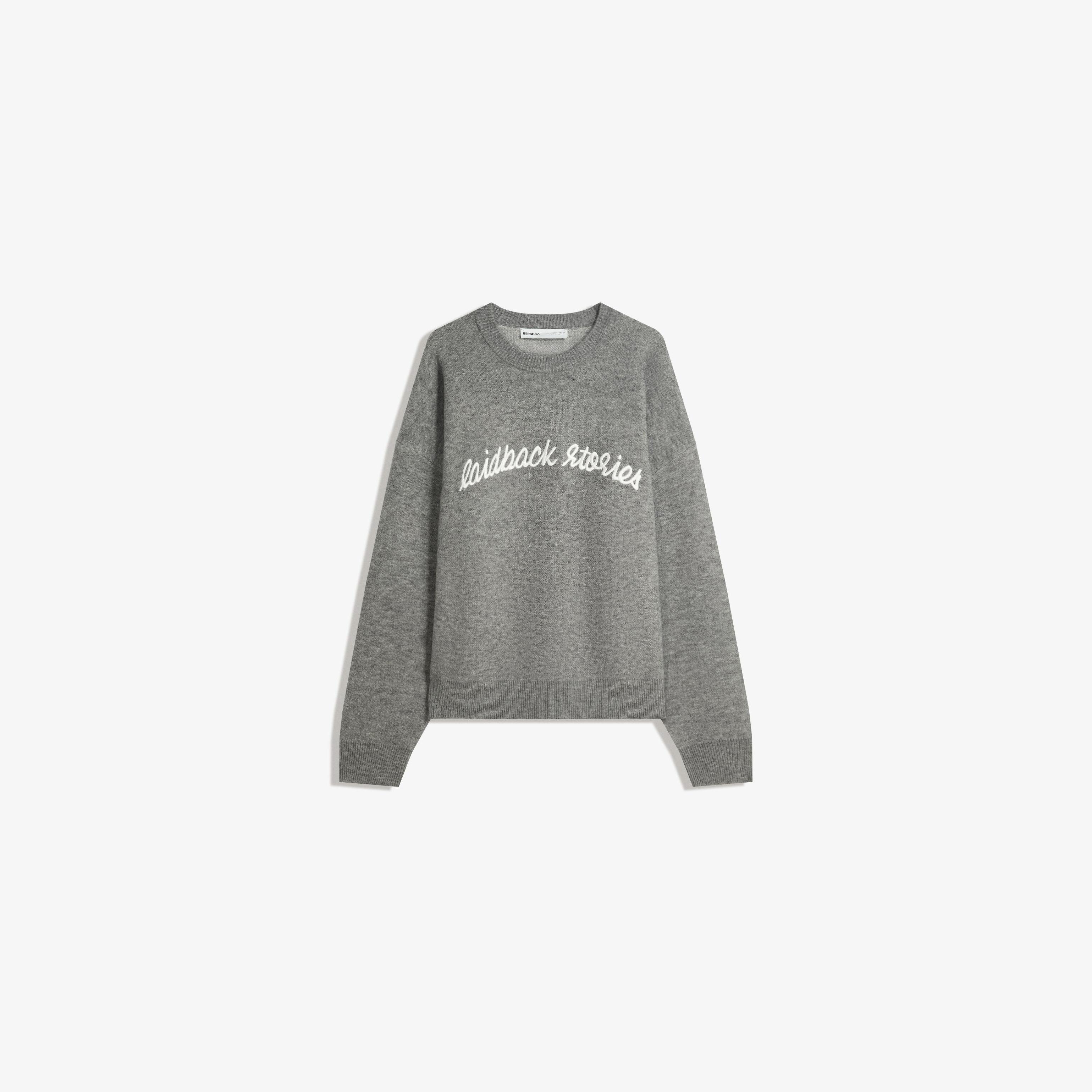كنزة جاكار مطرزة بلون رمادي من Bershka
