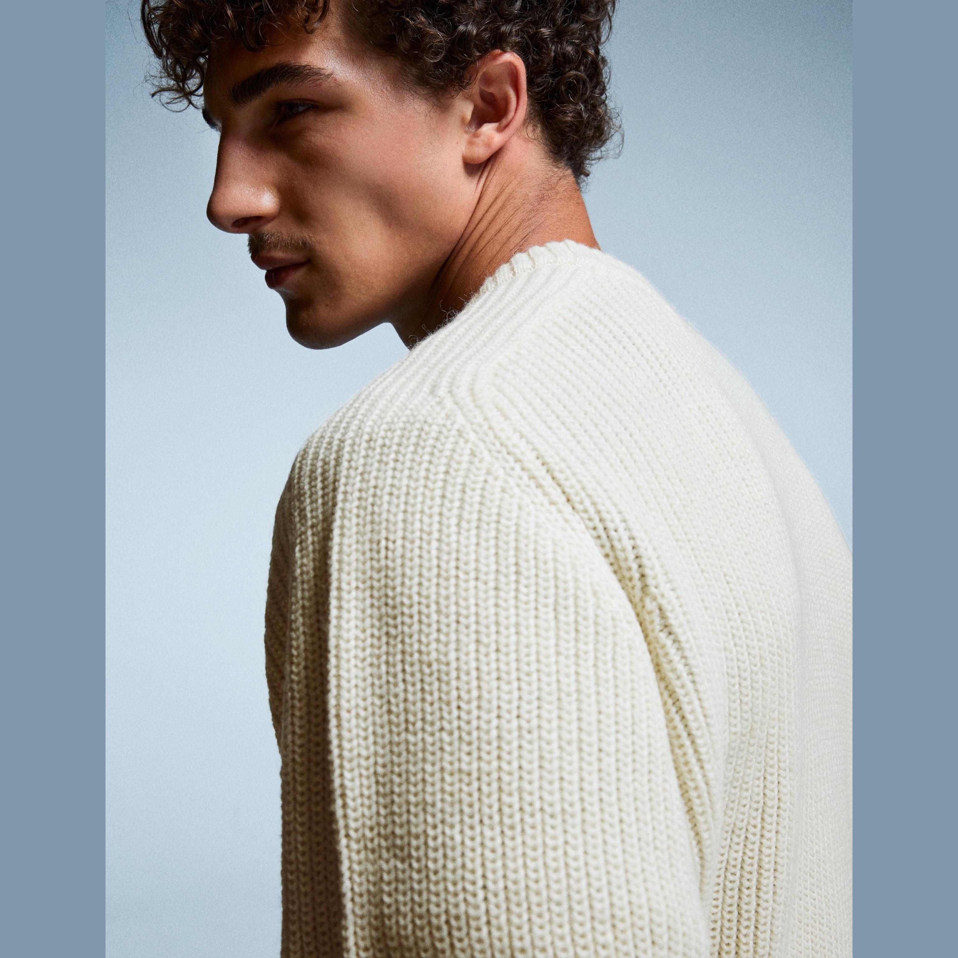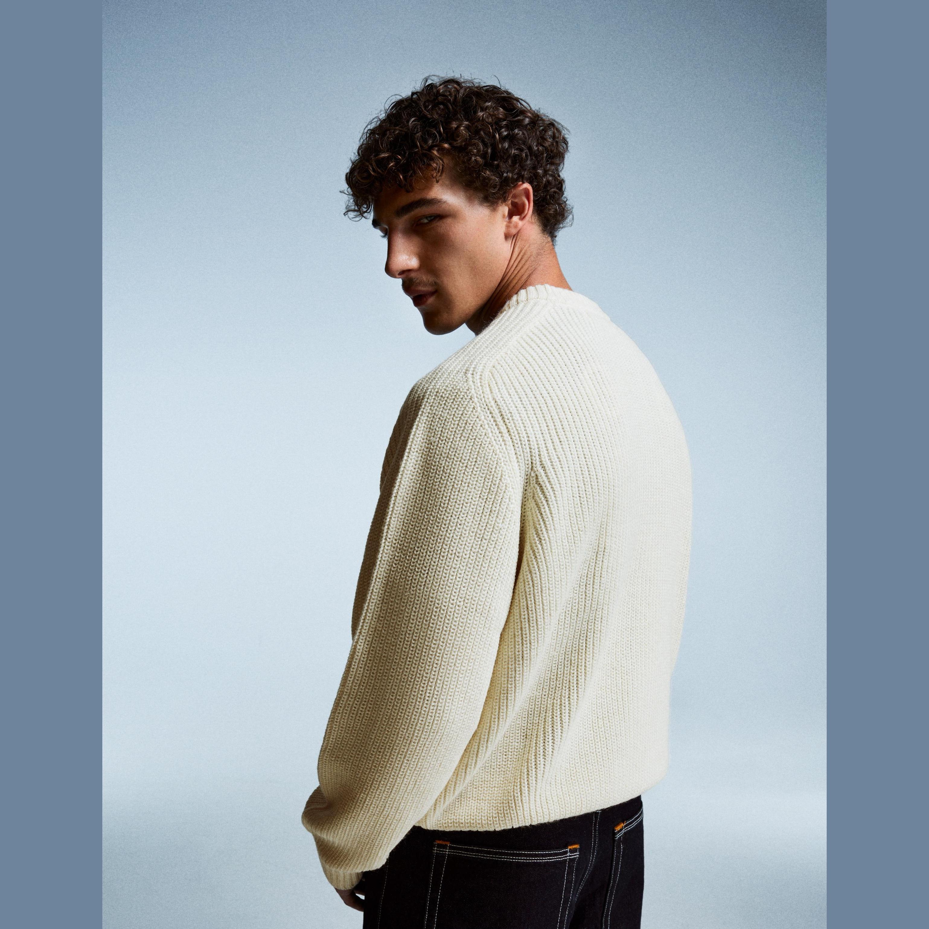 كنزة محبوكة بمزيج صوف بلون أوف وايت من Bershka