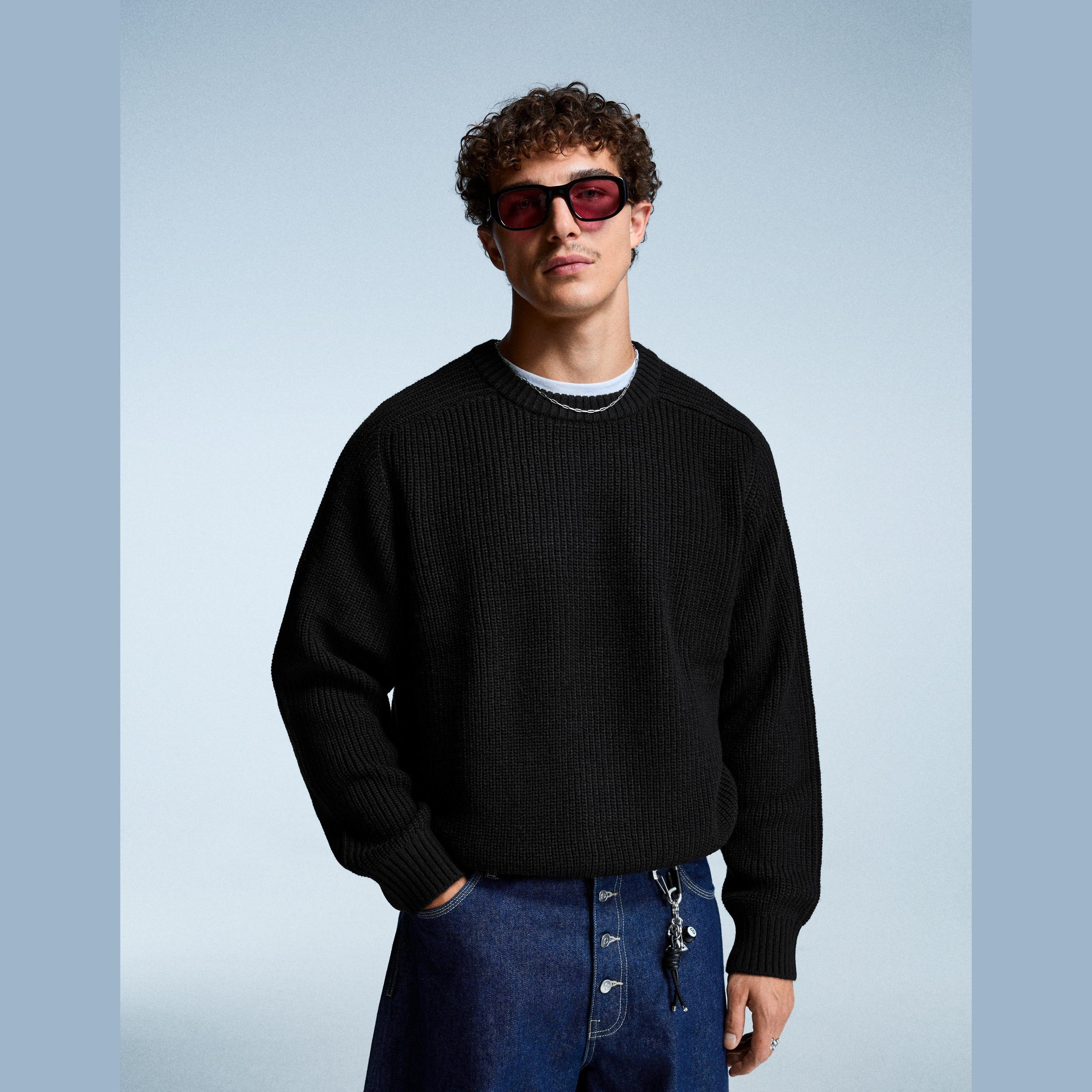 أضف لمسة دافئة وعصرية إلى إطلالتك الشتوية مع هذه الكنزة المحبوكة من Bershka المصممة بخيوط بارزة تمنحك ملمسًا غنيًا ومظهرًا أنيقًا. اللون الأسود يمنحك حيادية كلاسيكية، والخامة المختلطة توفر دفئًا وراحة مثالية للارتداء اليومي.