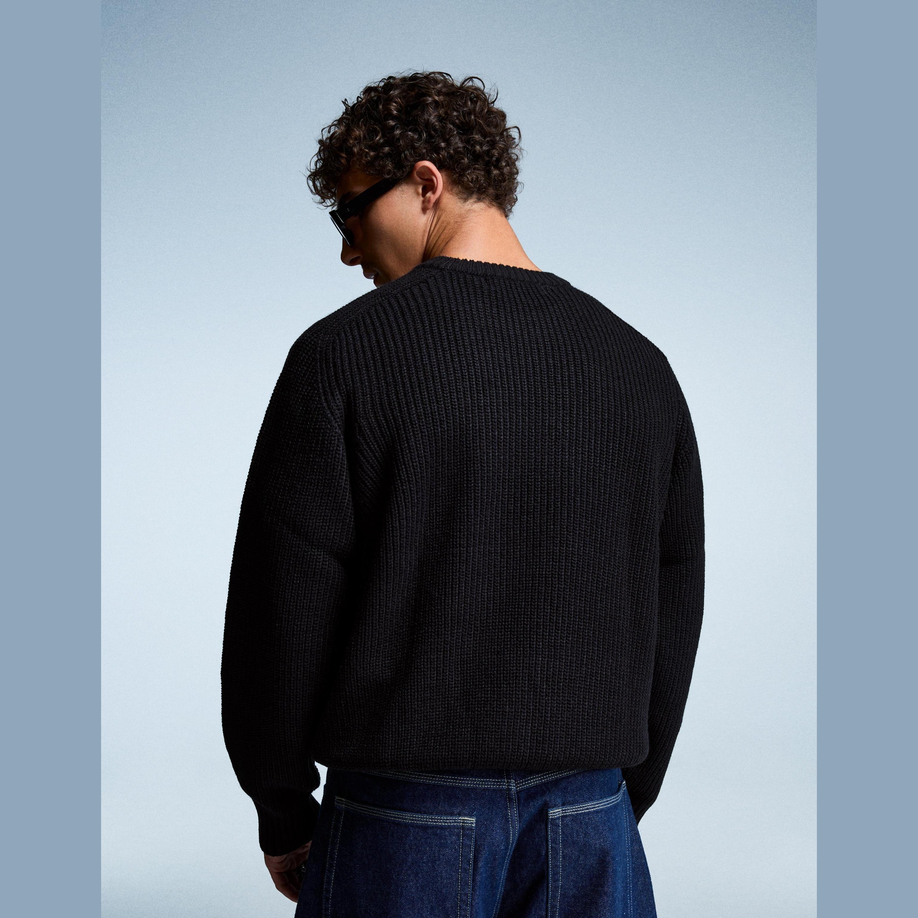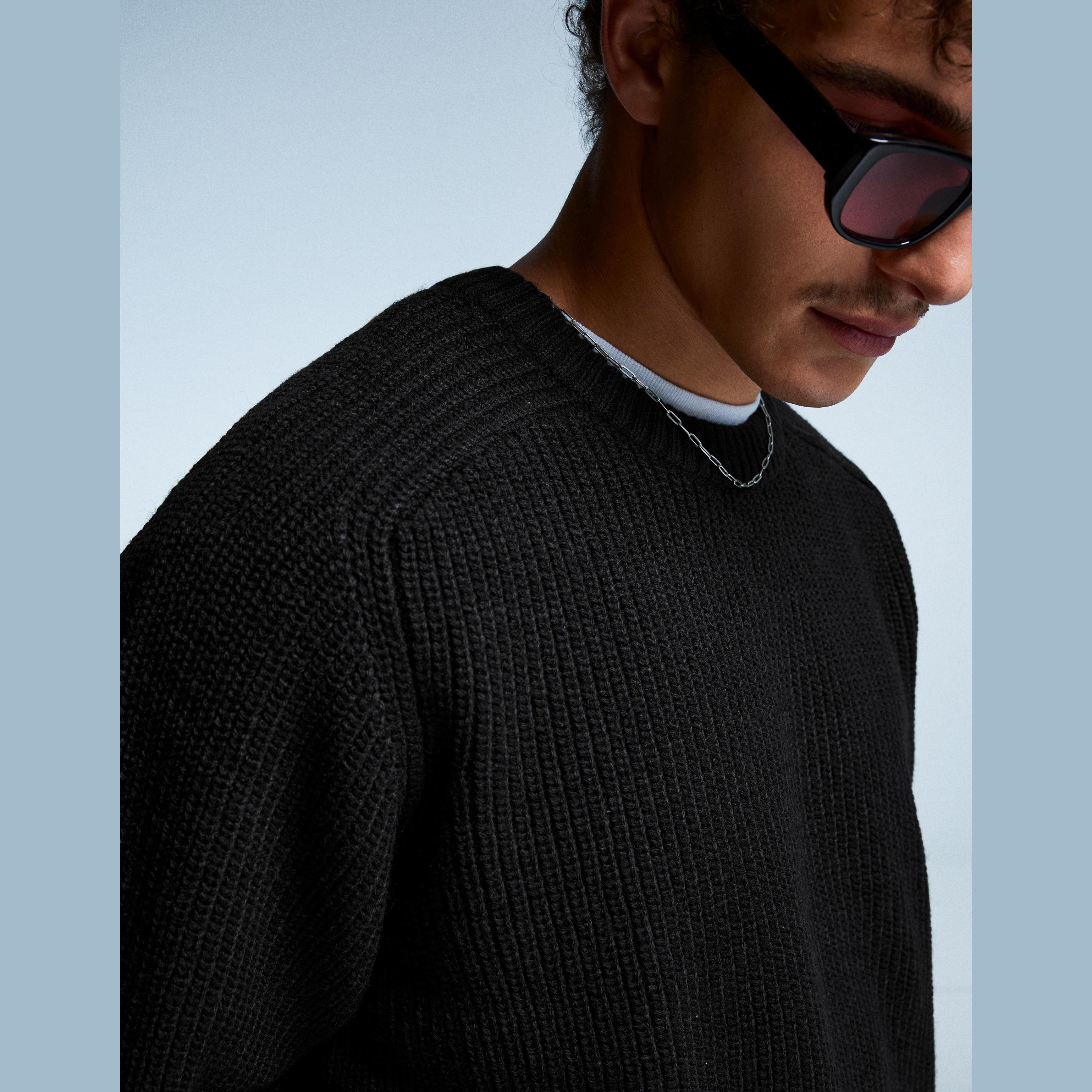 كنزة محبوكة بمزيج صوف بلون أسود من Bershka