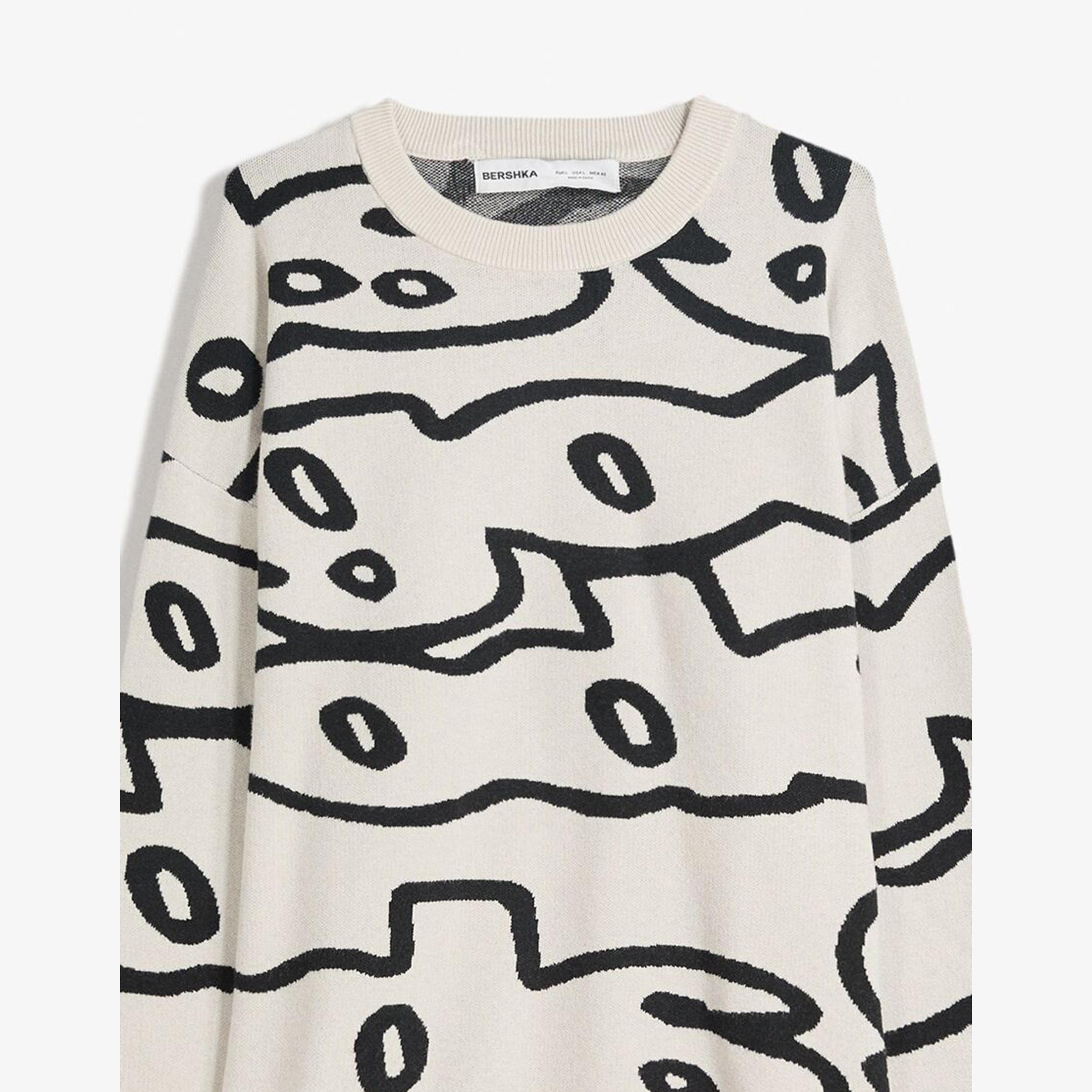 كنزة مطبوعة بلون أوف وايت من Bershka