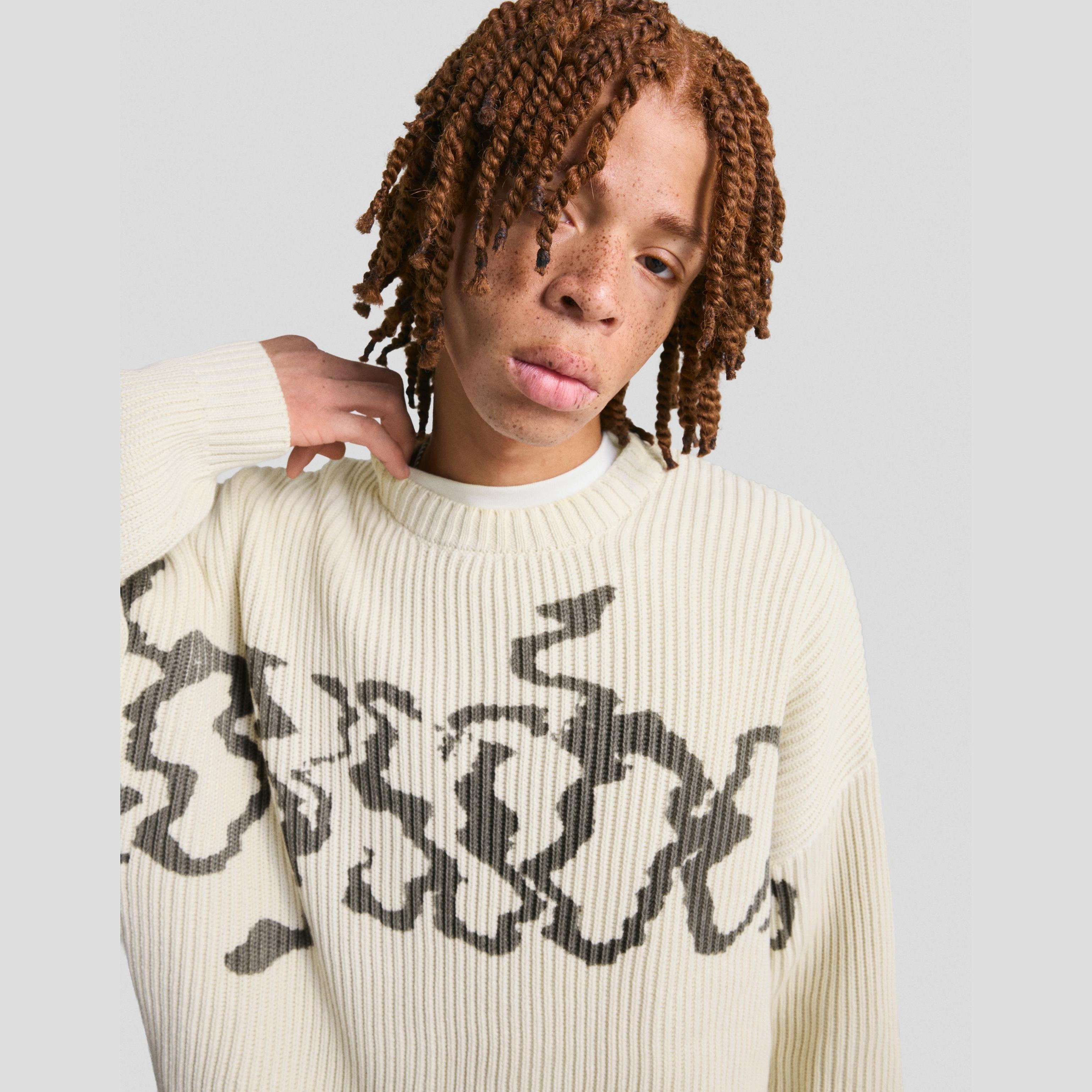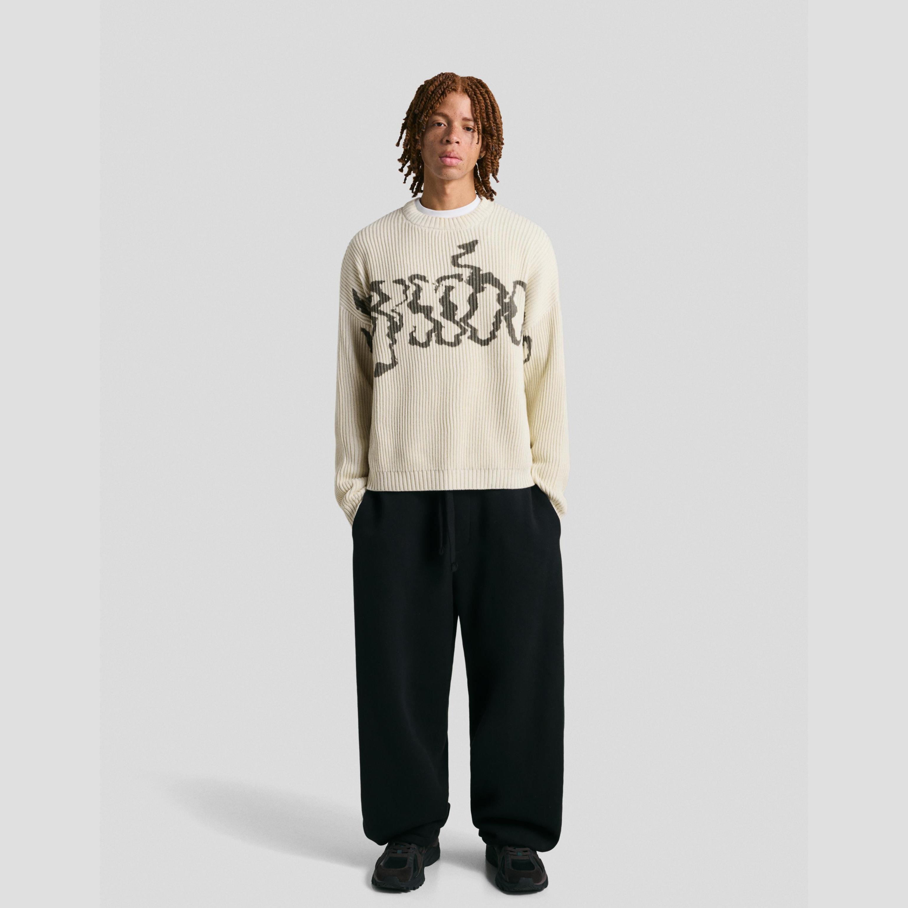 كنزة مطبوعة بلون أوف وايت من Bershka