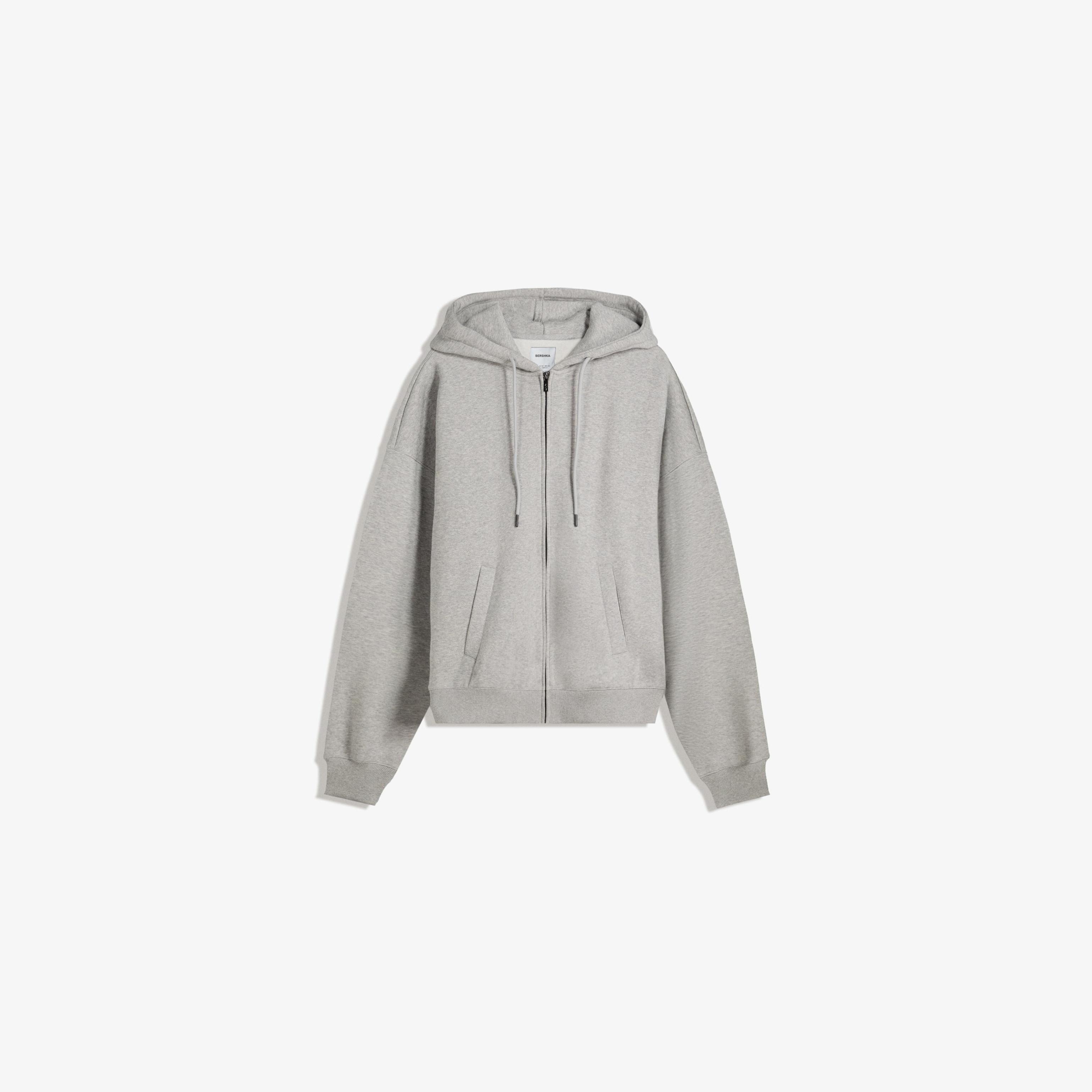هودي بسحاب أمامي بلون رمادي من Bershka – مجموعة Basics