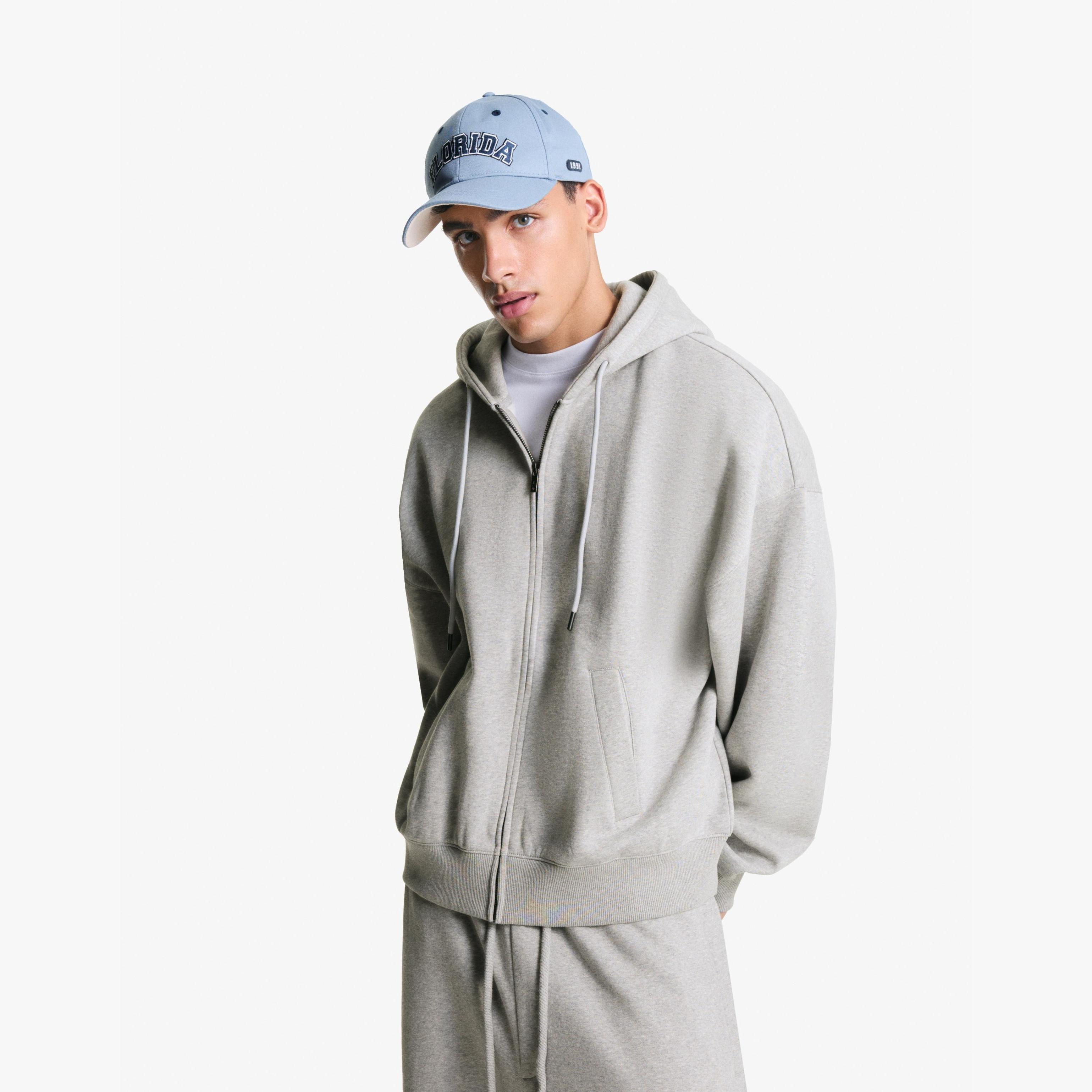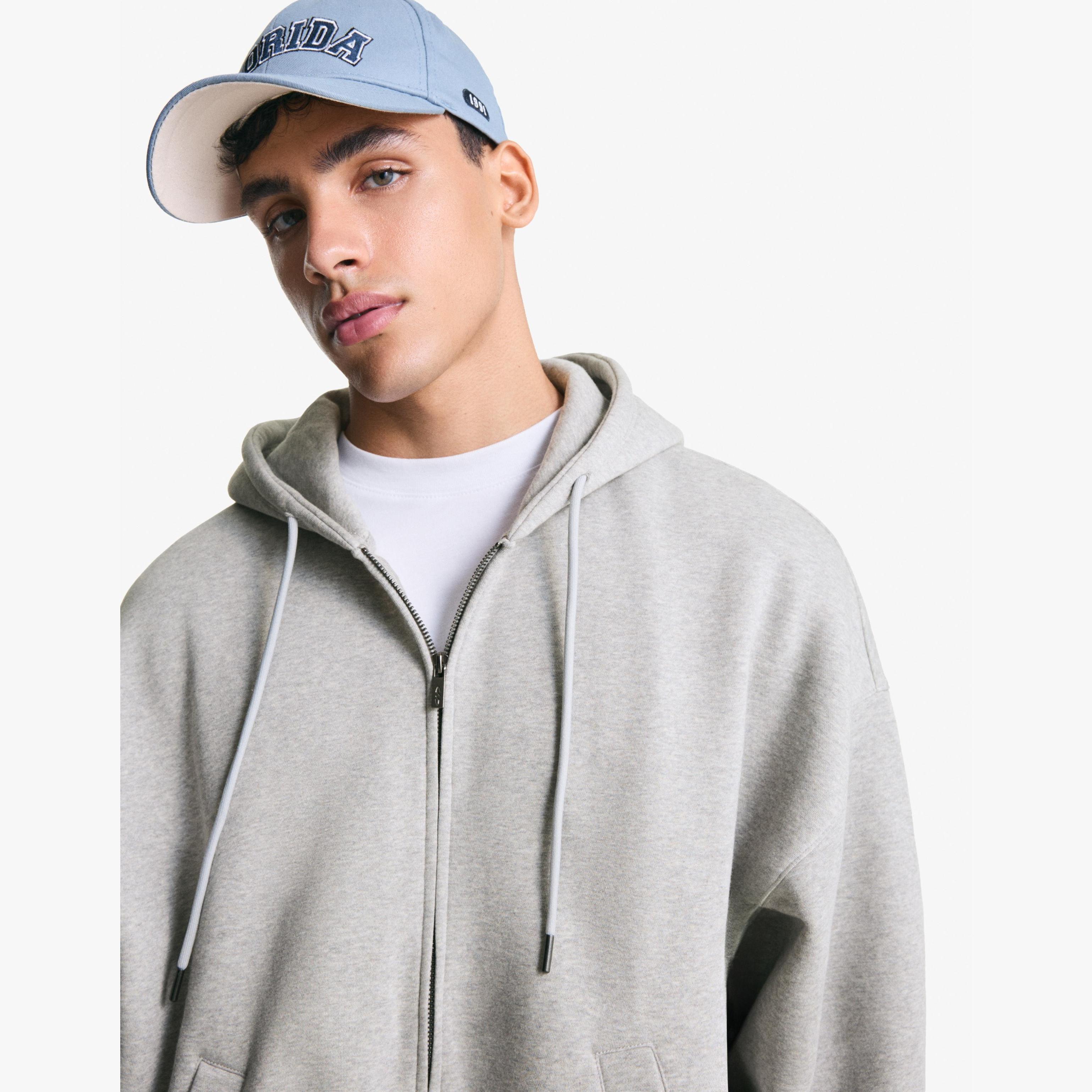 احصل على مظهر عملي وأنيق مع هذا الهودي الكلاسيكي من Bershka المصمم بسحاب أمامي وغطاء رأس بلون رمادي حيادي. مثالي للتنسيقات اليومية أو الإطلالات متعددة الطبقات، ويمنحك راحة وأناقة في آنٍ واحد.