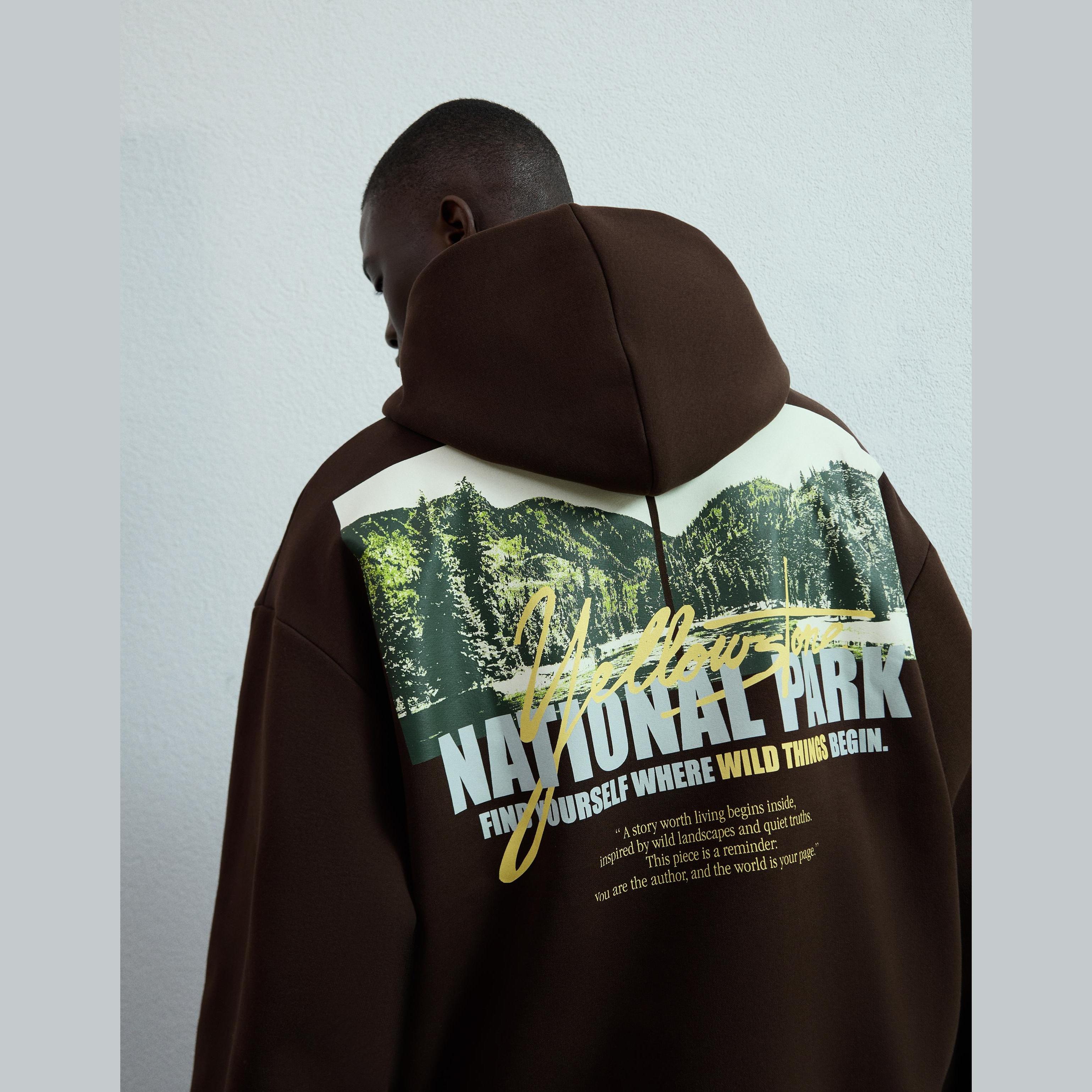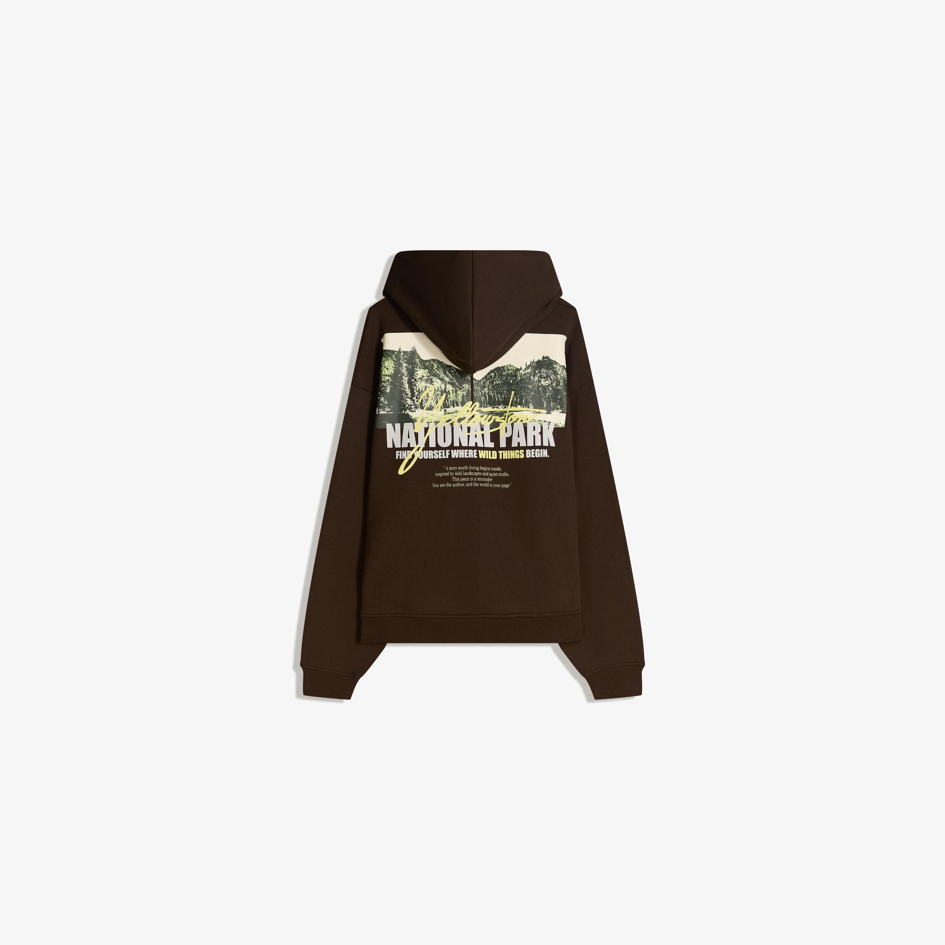 تميّز بإطلالة فنية غير تقليدية مع هذا الهودي من Bershka المصمم بطبعة أمامية وغطاء رأس بلون بني دافئ. مثالي للتنسيقات الشبابية أو الإطلالات اليومية، ويمنحك مظهرًا عصريًا مريحًا يجمع بين الأسلوب والراحة.