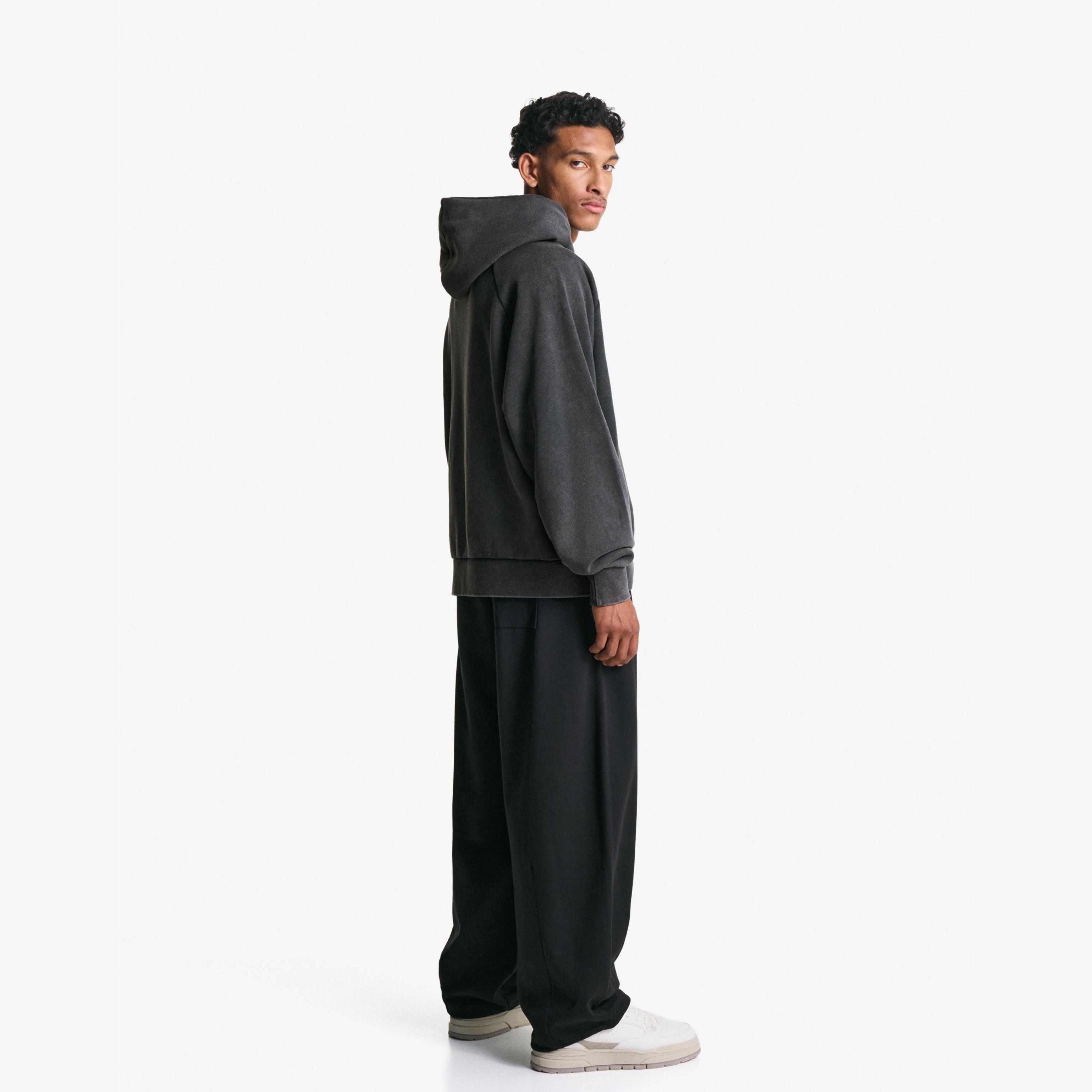 هودي بقصة Boxy بلون رمادي غامق من Bershka – مجموعة Basics