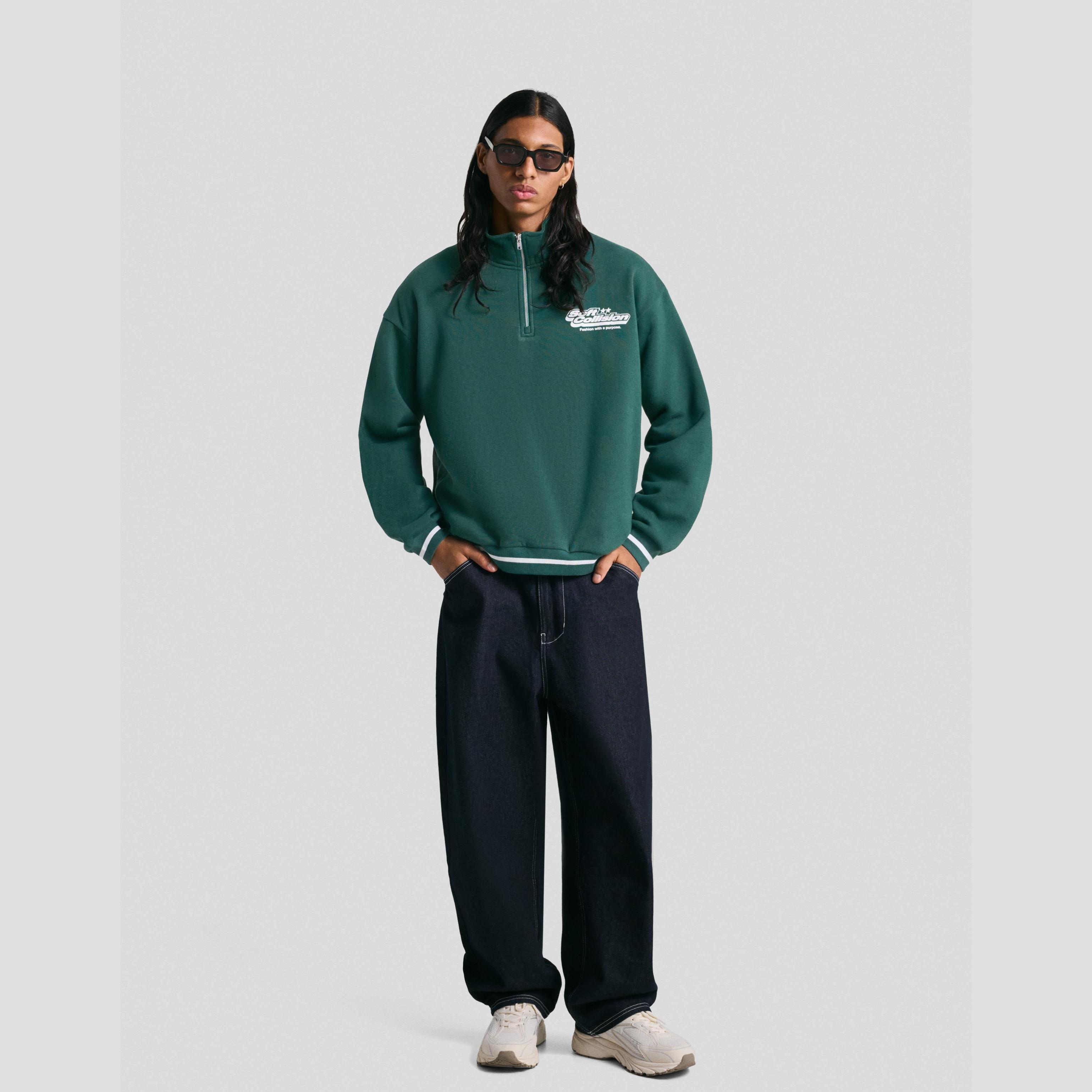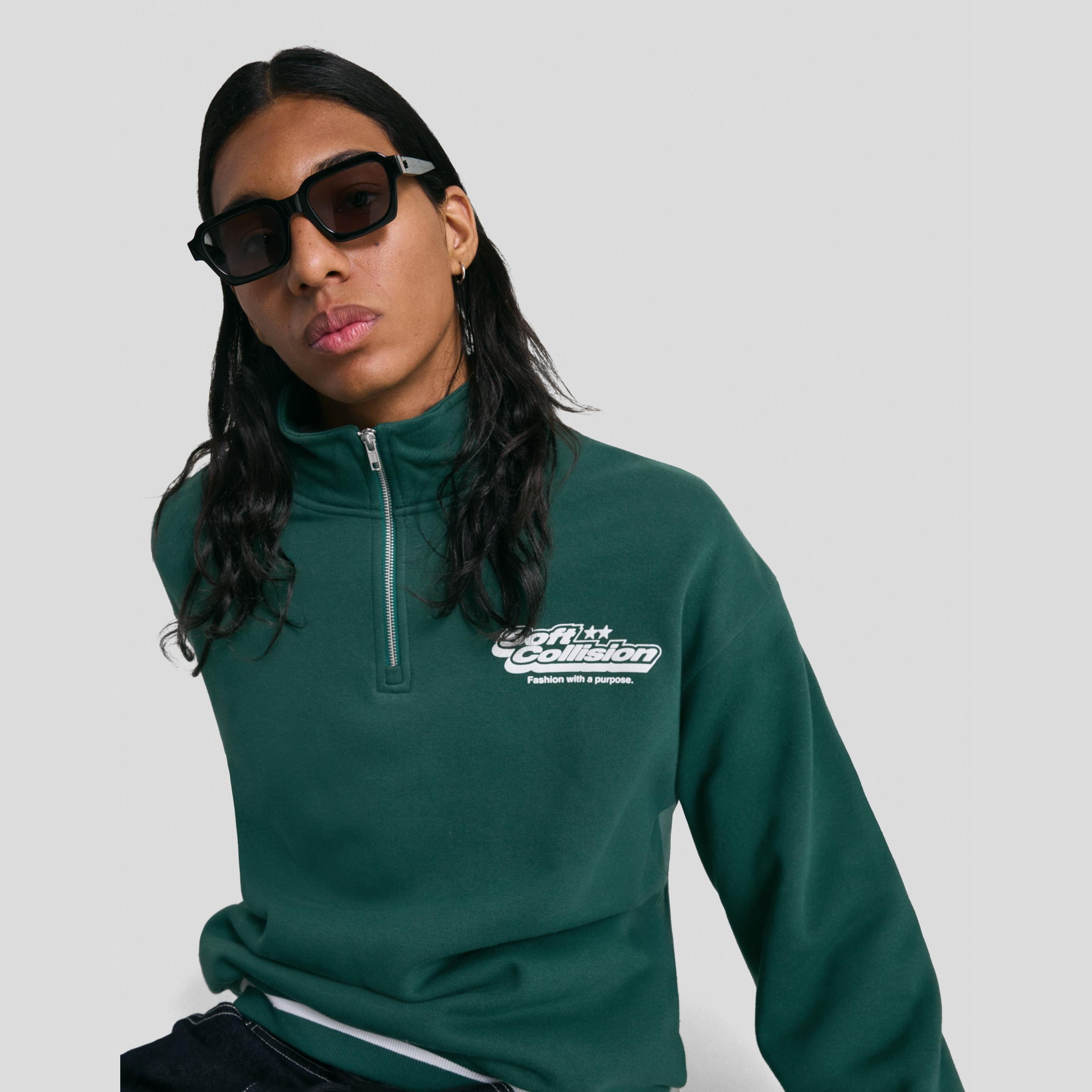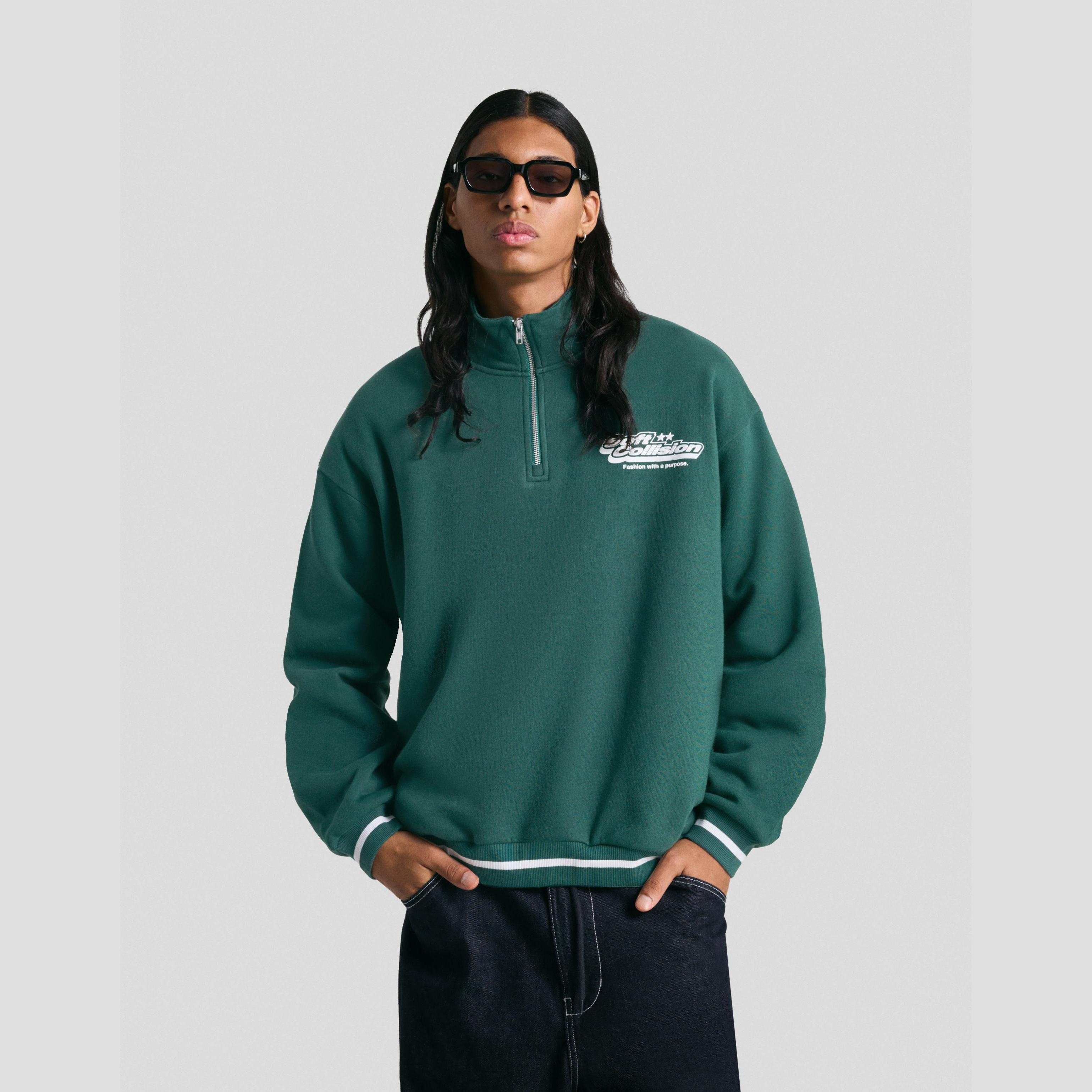 سويت شيرت بربع سحاب وطبعة بلون أخضر من Bershka