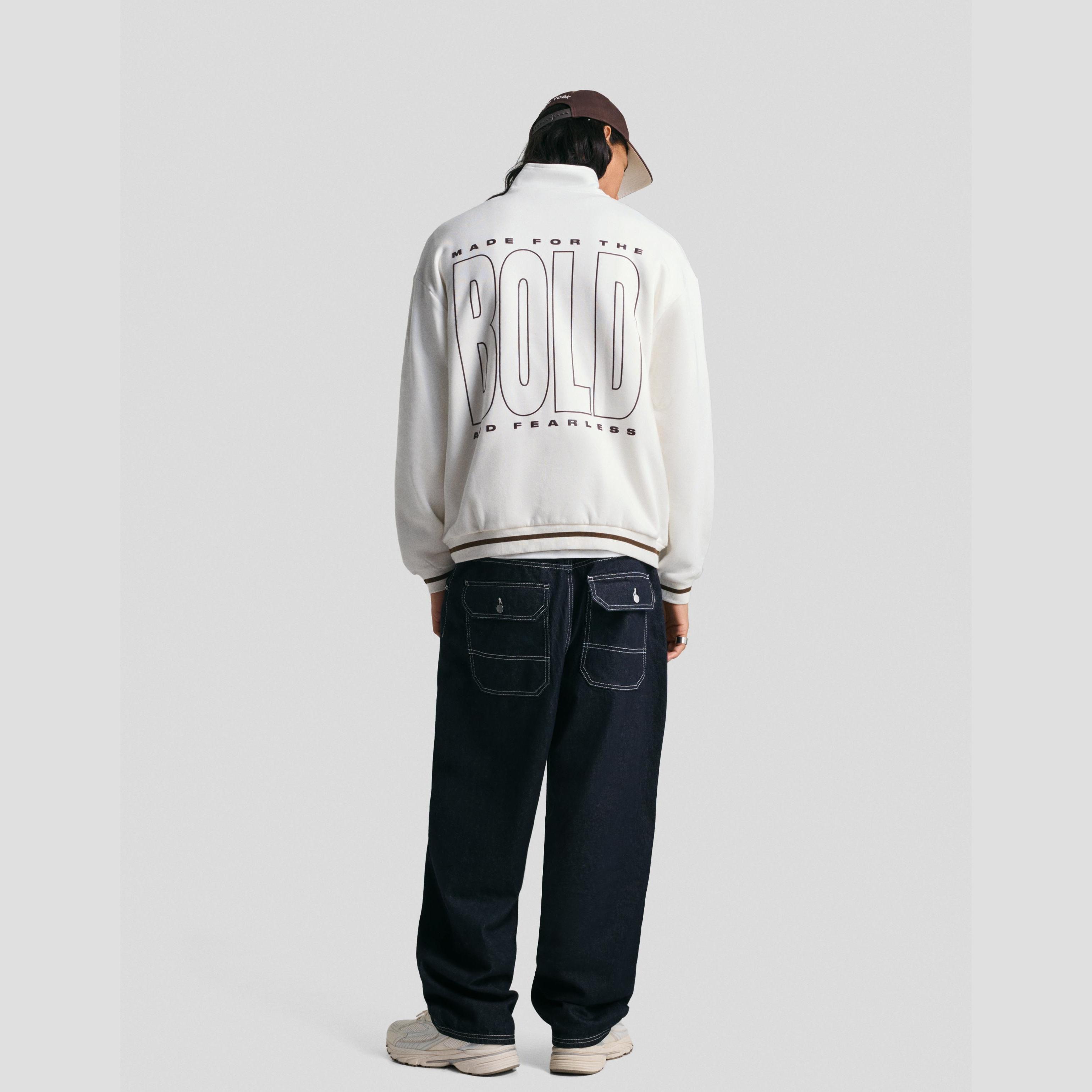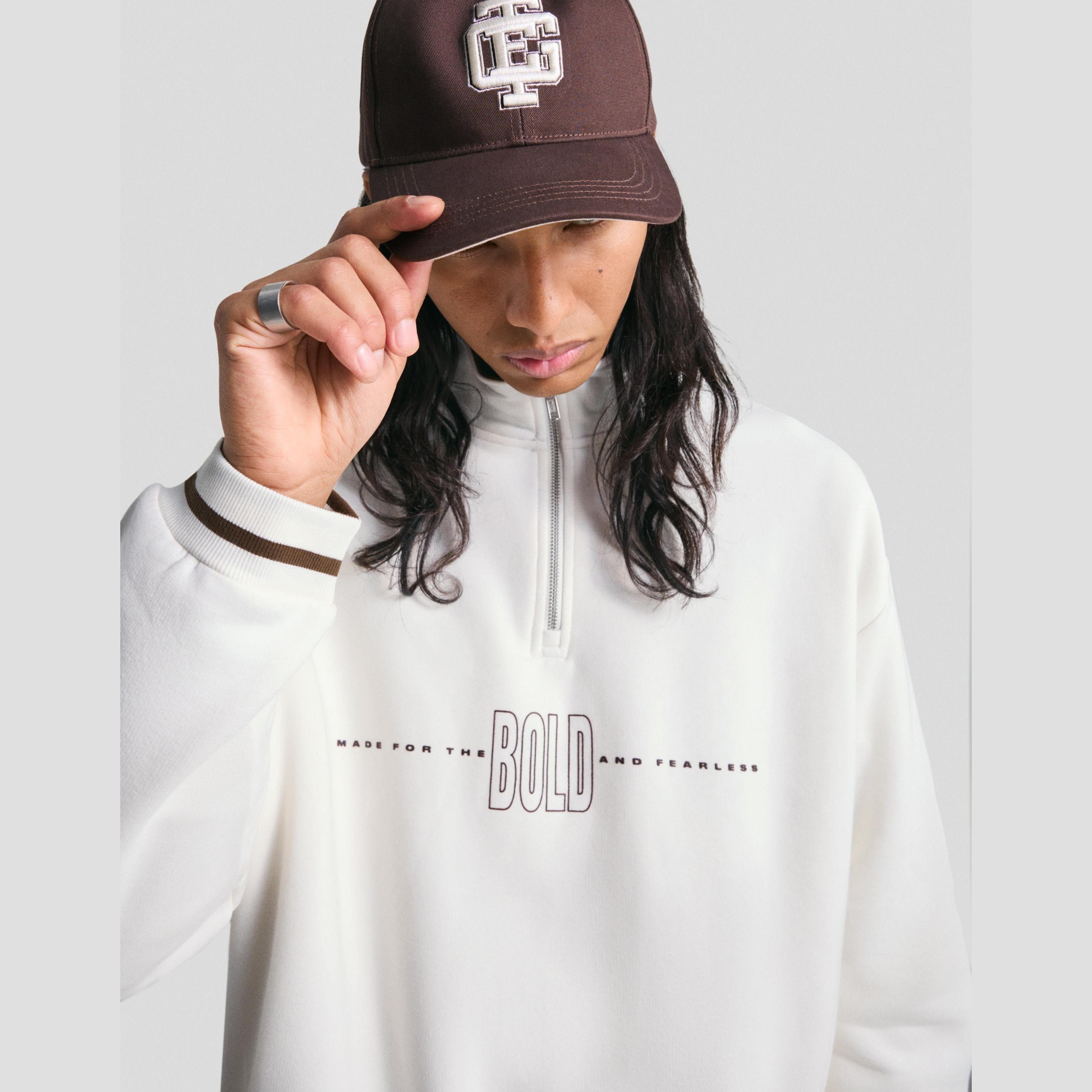 سويت شيرت بربع سحاب وطبعة بلون أوف وايت من Bershka