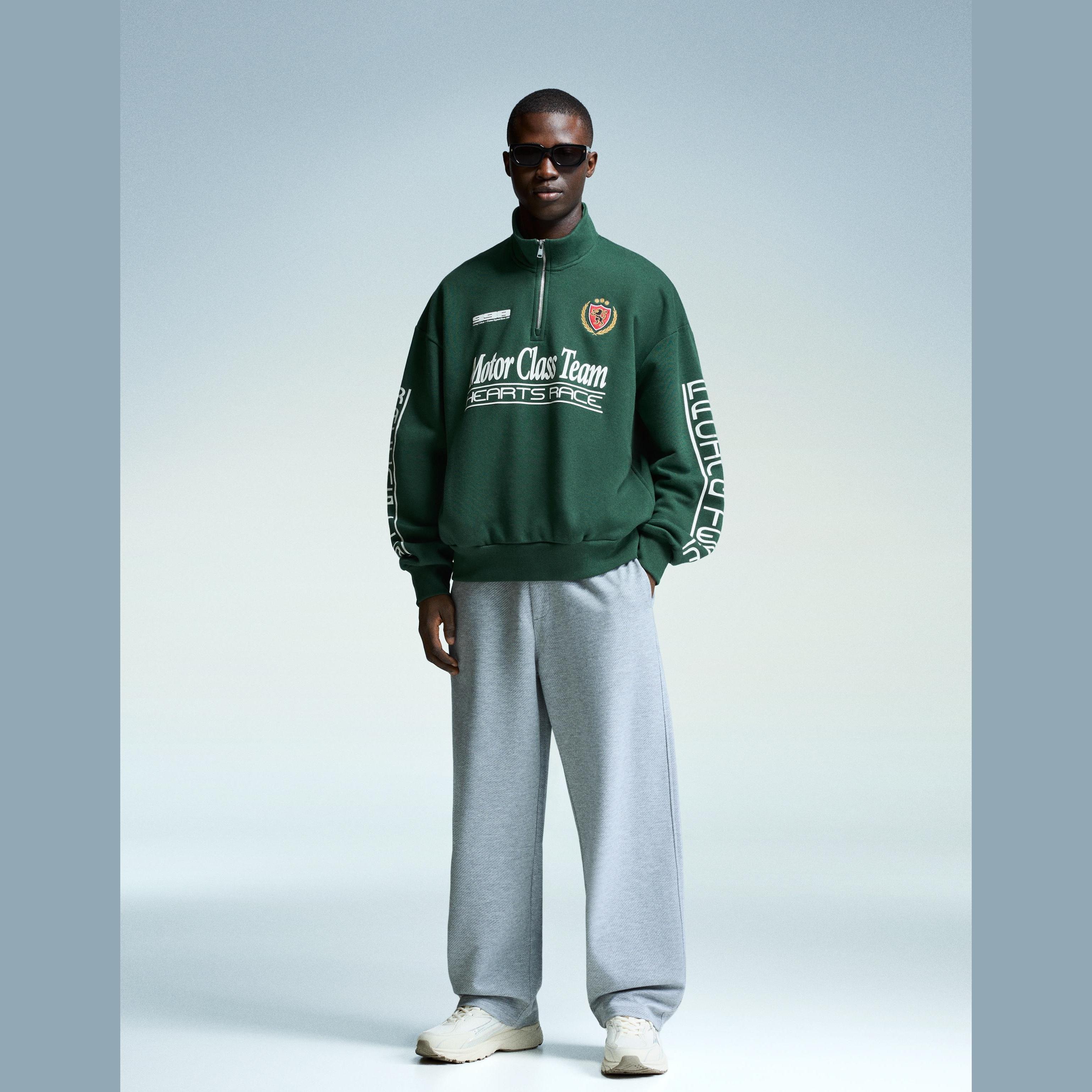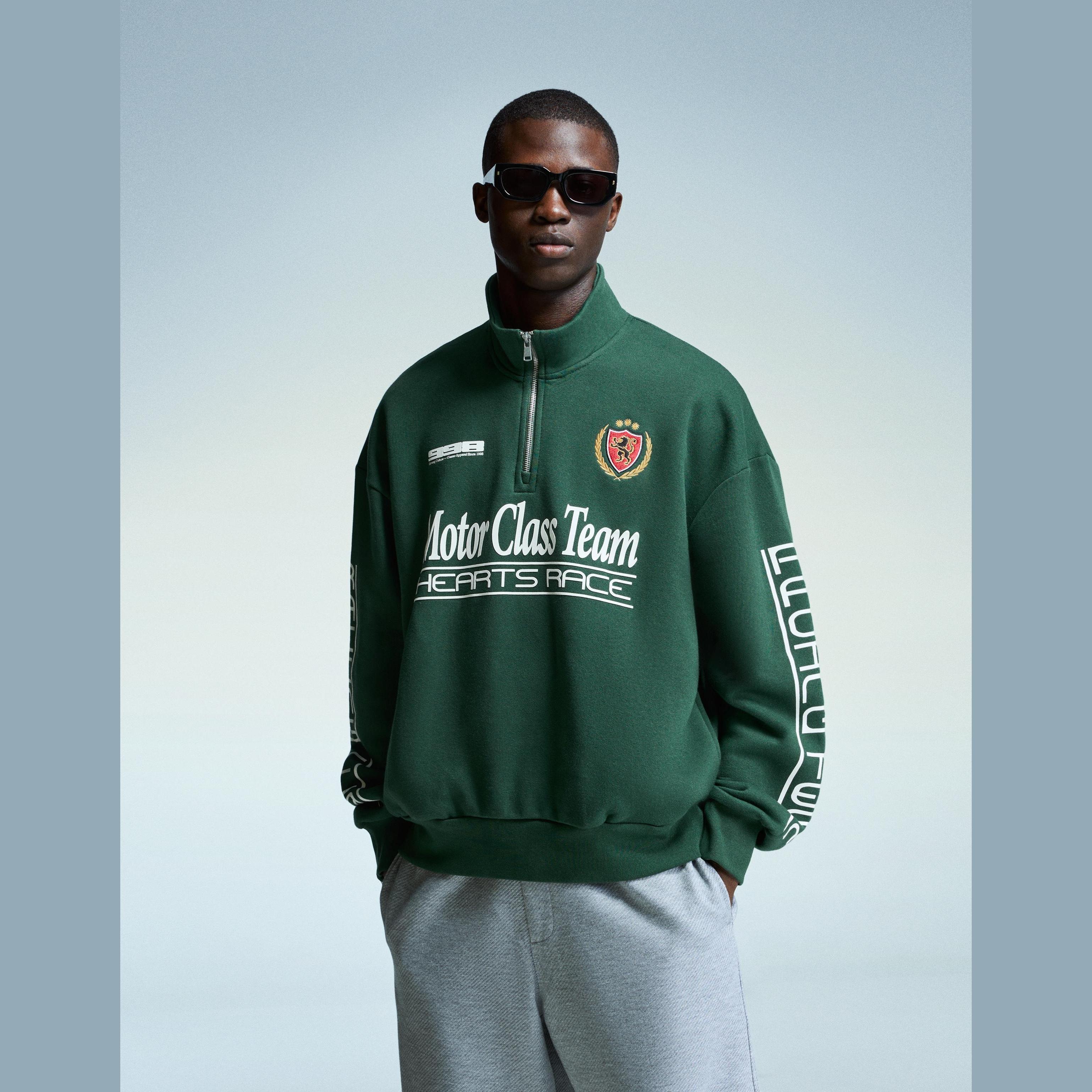 سويت شيرت بسحاب كامل وطبعة بلون أخضر من Bershka