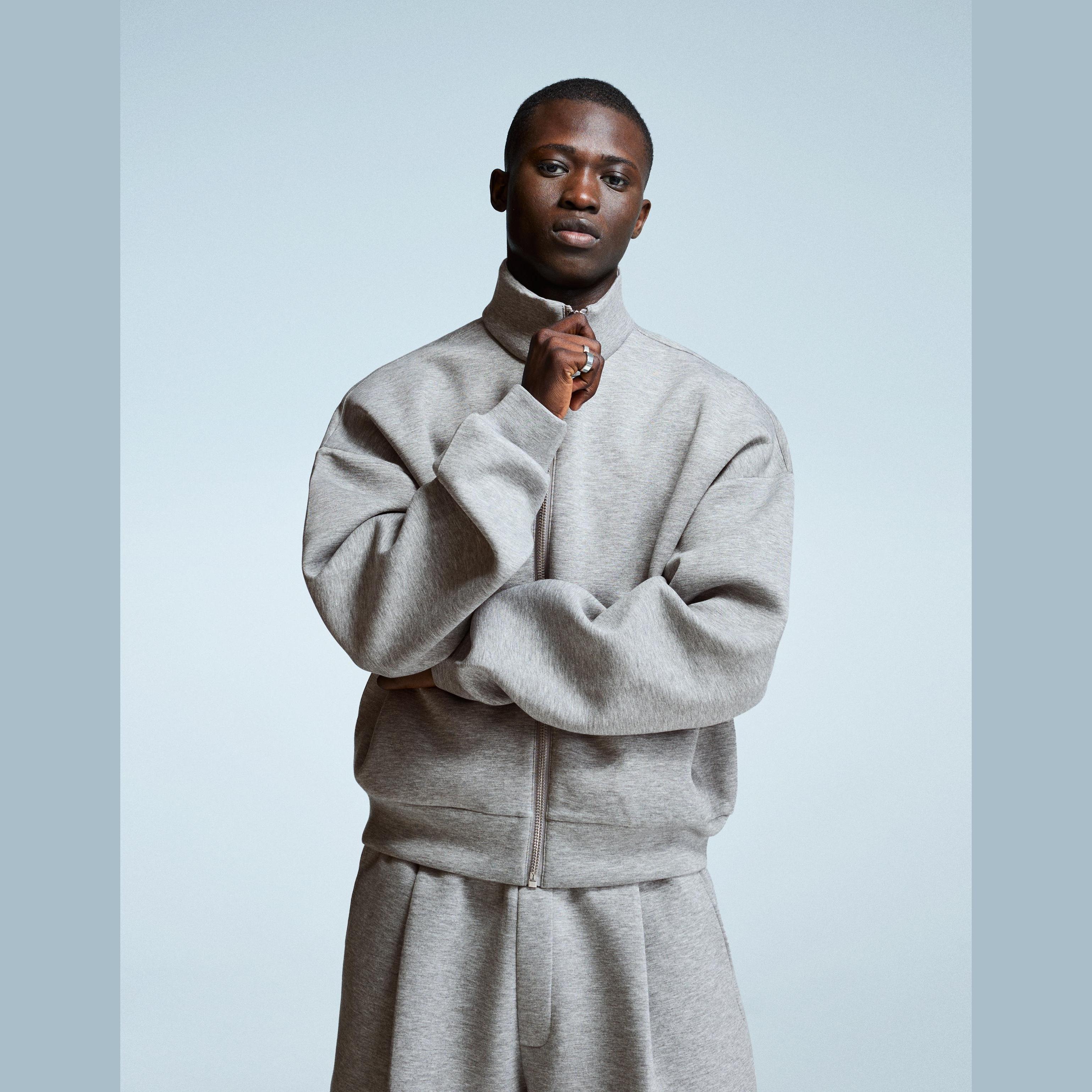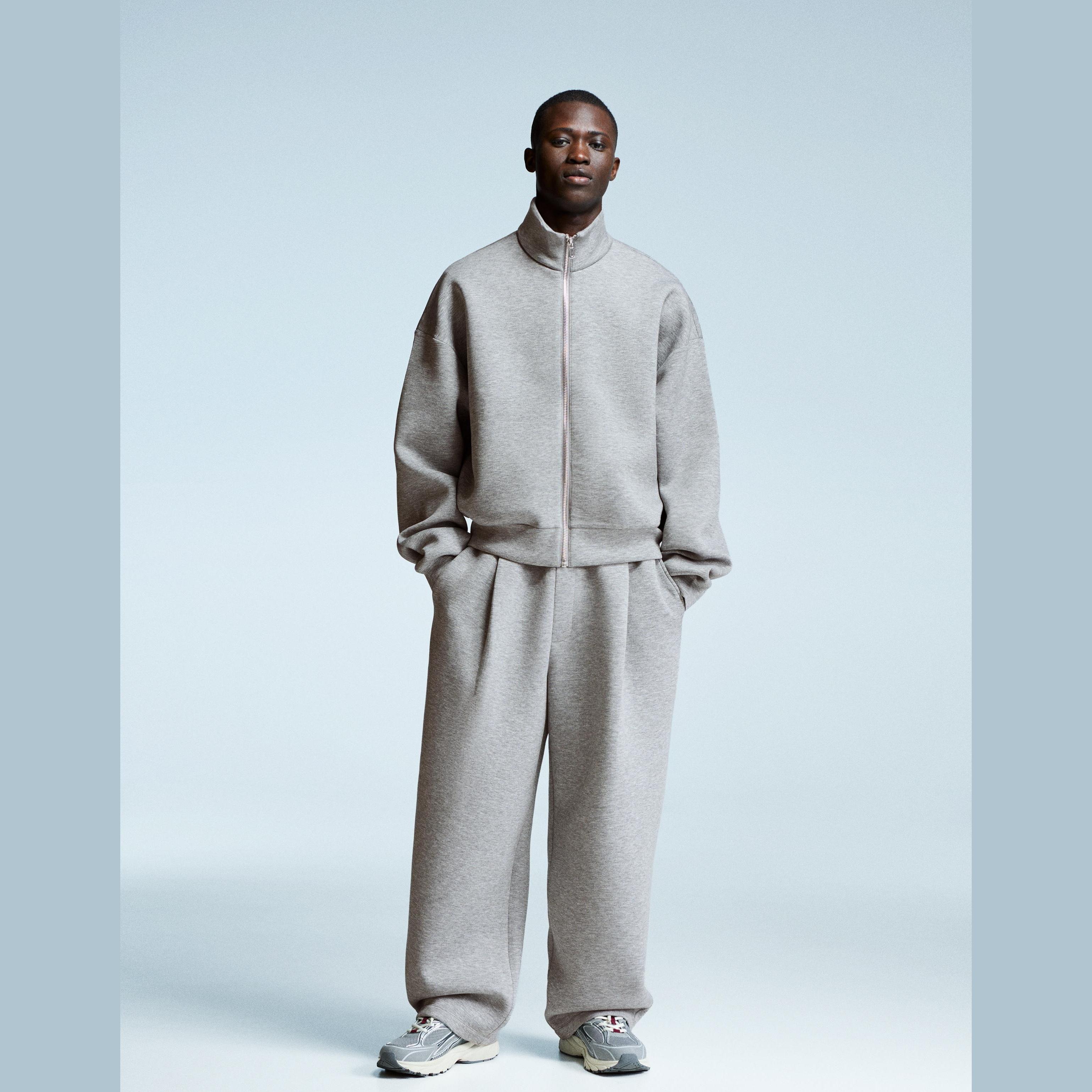 سويت شيرت بسحاب كامل بلون رمادي غامق من Bershka – مجموعة Basics
