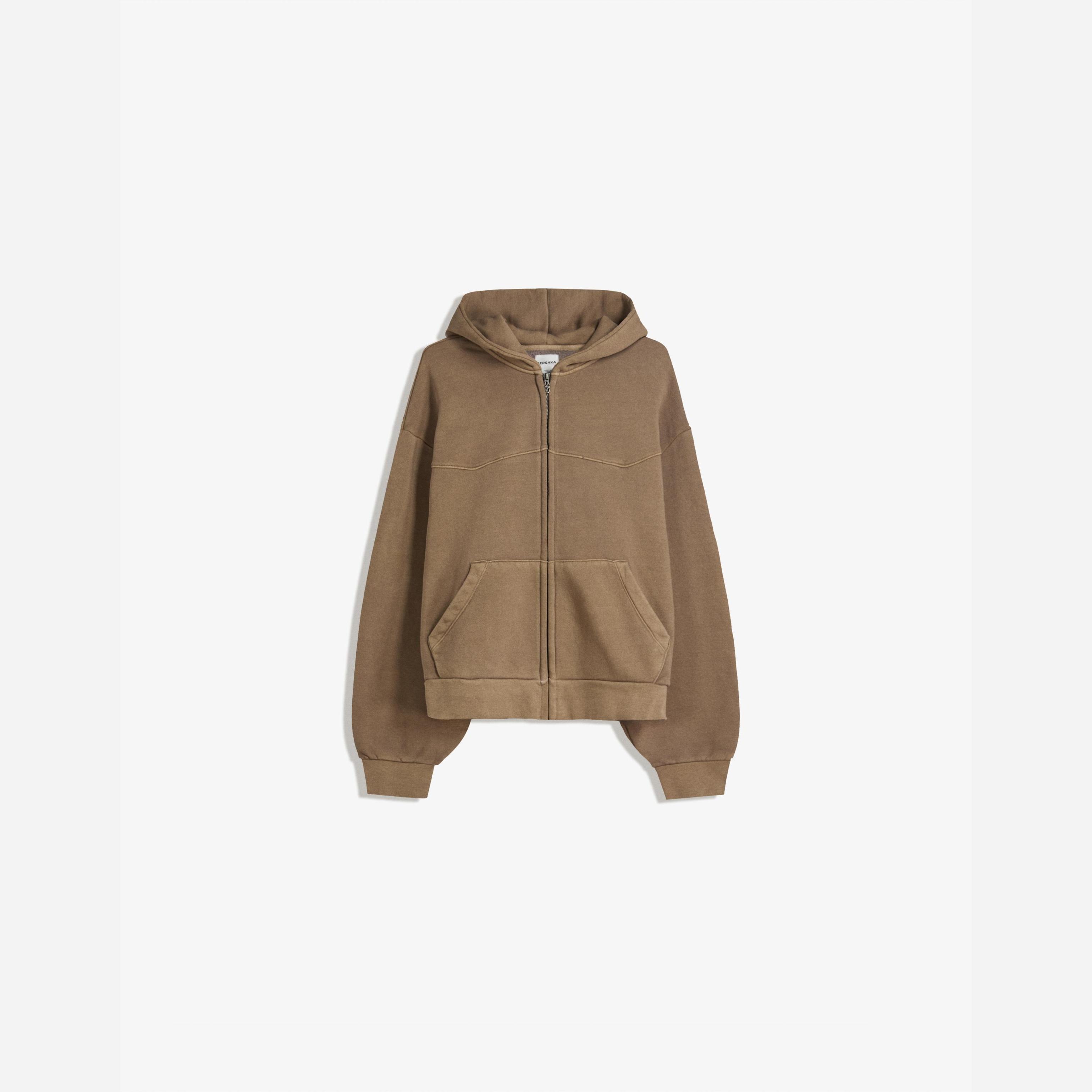 سويت شيرت قصير بقصة Boxy وسحاب كامل بلون بني من Bershka – مجموعة Basics