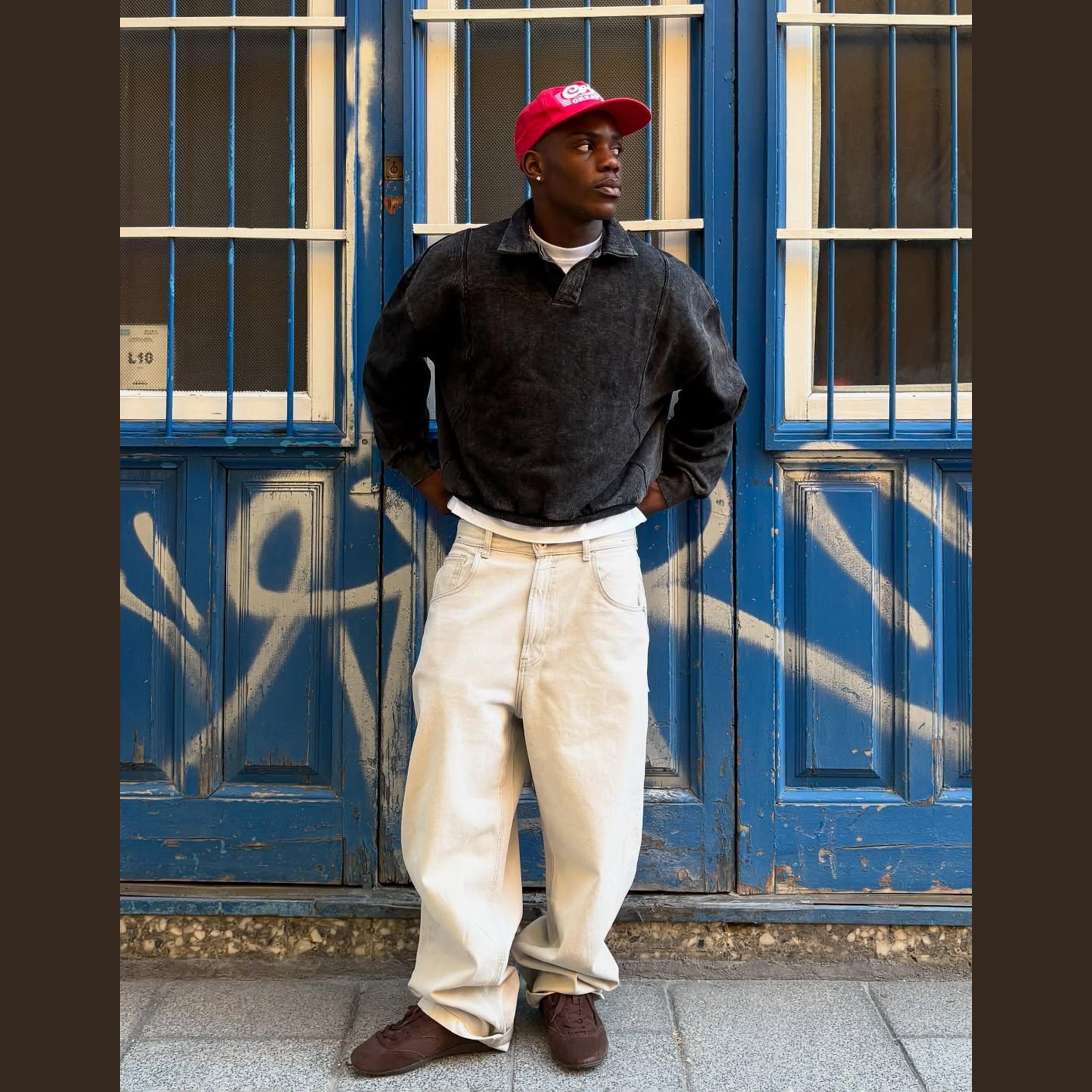 ارتقِ بإطلالتك اليومية مع هذا السويت شيرت من Bershka المصمم بقصة واسعة وياقة بولو بلون رمادي فاتح حيادي. تصميمه يجمع بين الراحة والخامة العملية، ويمنحك مظهرًا شبابيًا أنيقًا يناسب التنسيقات متعددة الطبقات أو الإطلالات المستقلة.