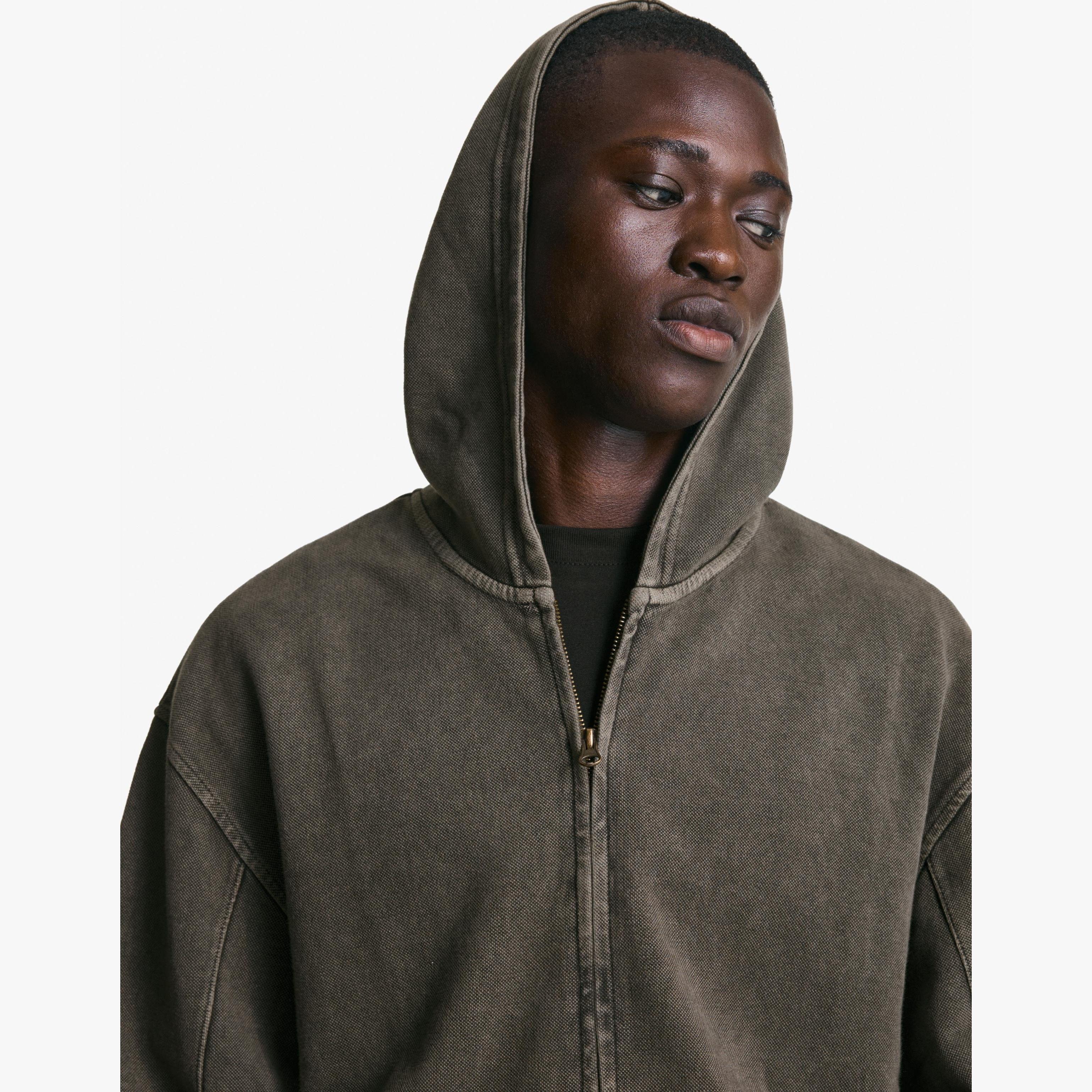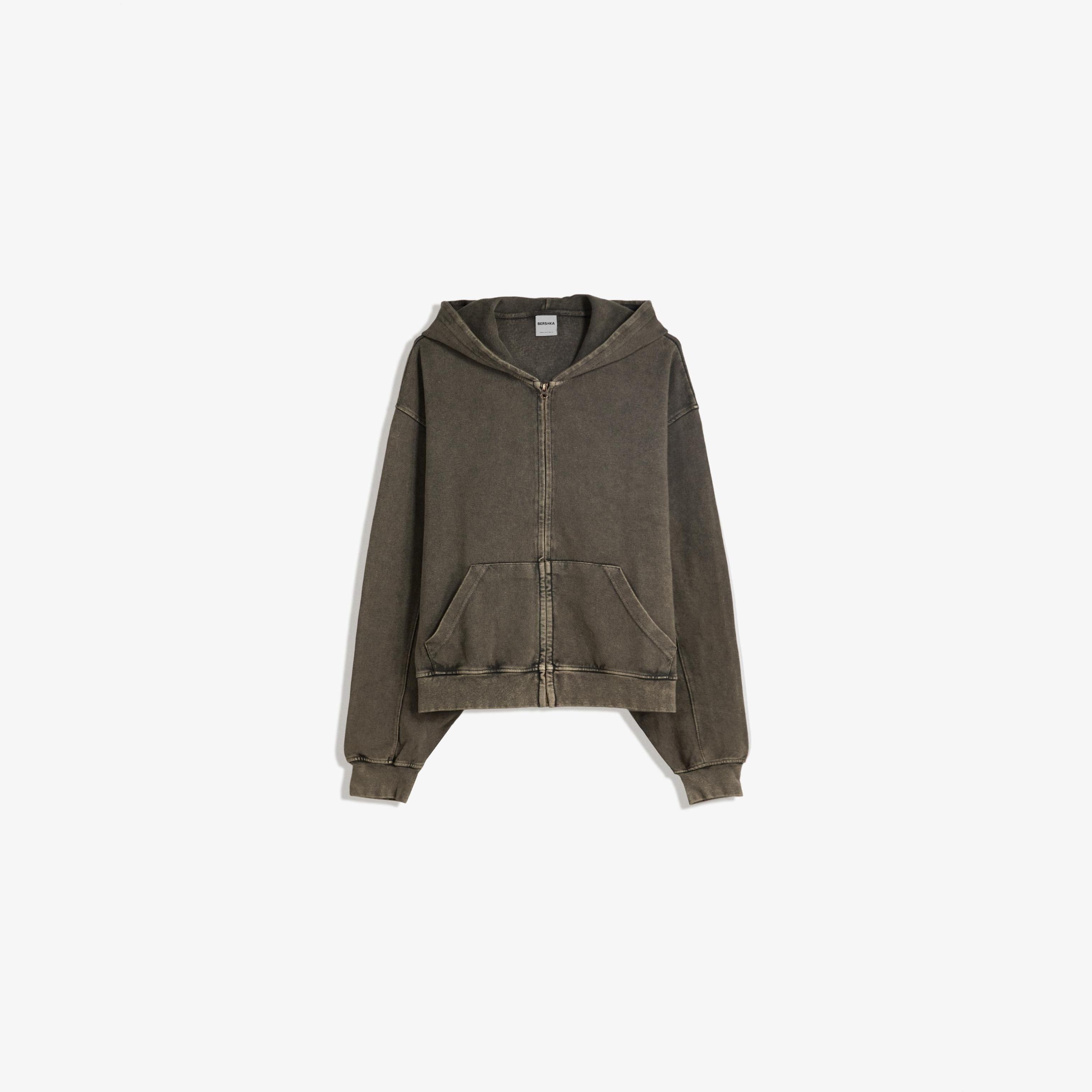 سويت شيرت بسحاب كامل بتأثير باهت من قماش بيكيه – رمادي فاتح من Bershka
