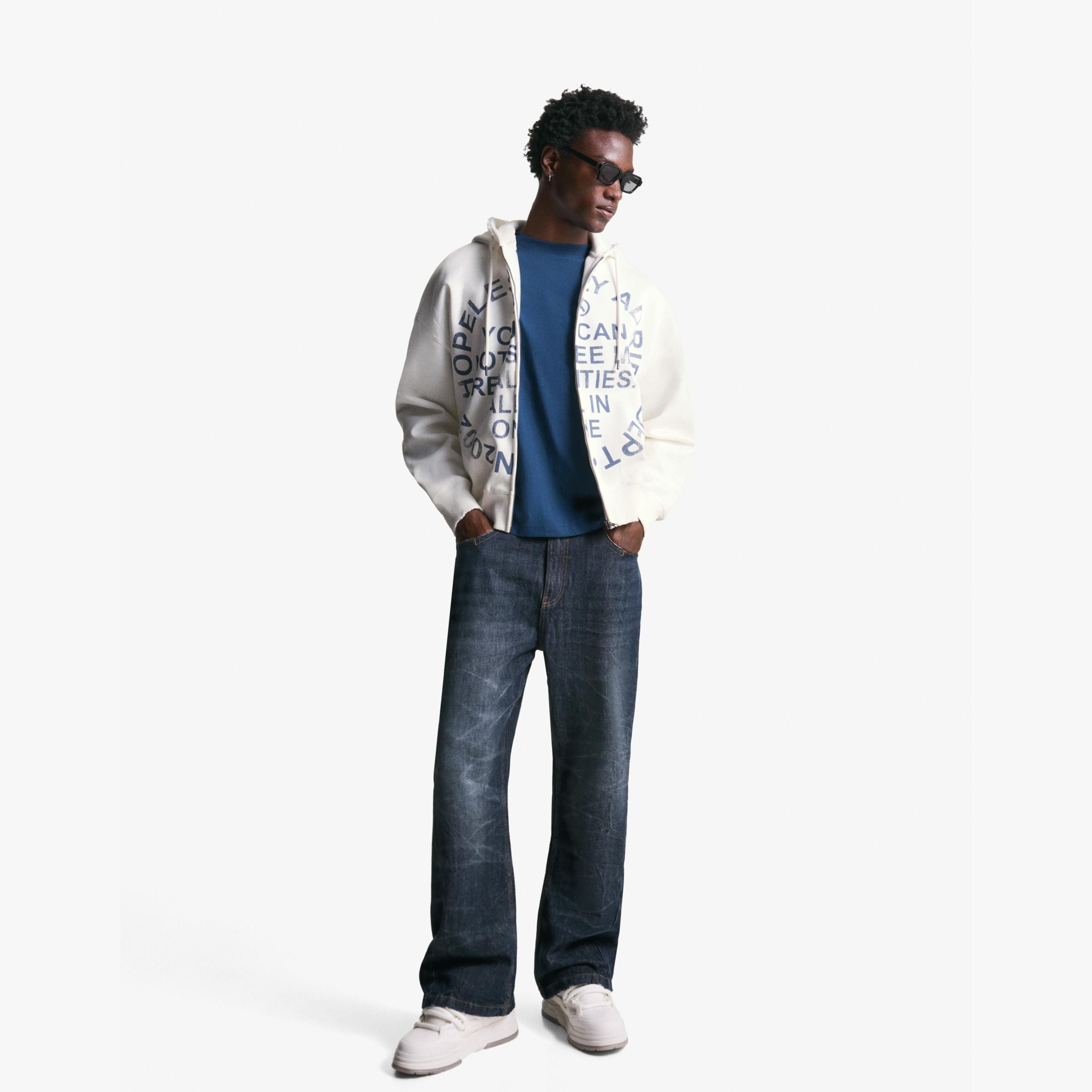 تميّز بإطلالة فنية وعصرية مع هذا السويت شيرت من Bershka المصمم بسحاب أمامي كامل وطبعة أمامية بلون بيج حيادي. تصميمه يجمع بين الراحة والأسلوب الجريء، ويمنحك مظهرًا شبابيًا مثاليًا للتنسيقات متعددة الطبقات أو الإطلالات المستقلة.