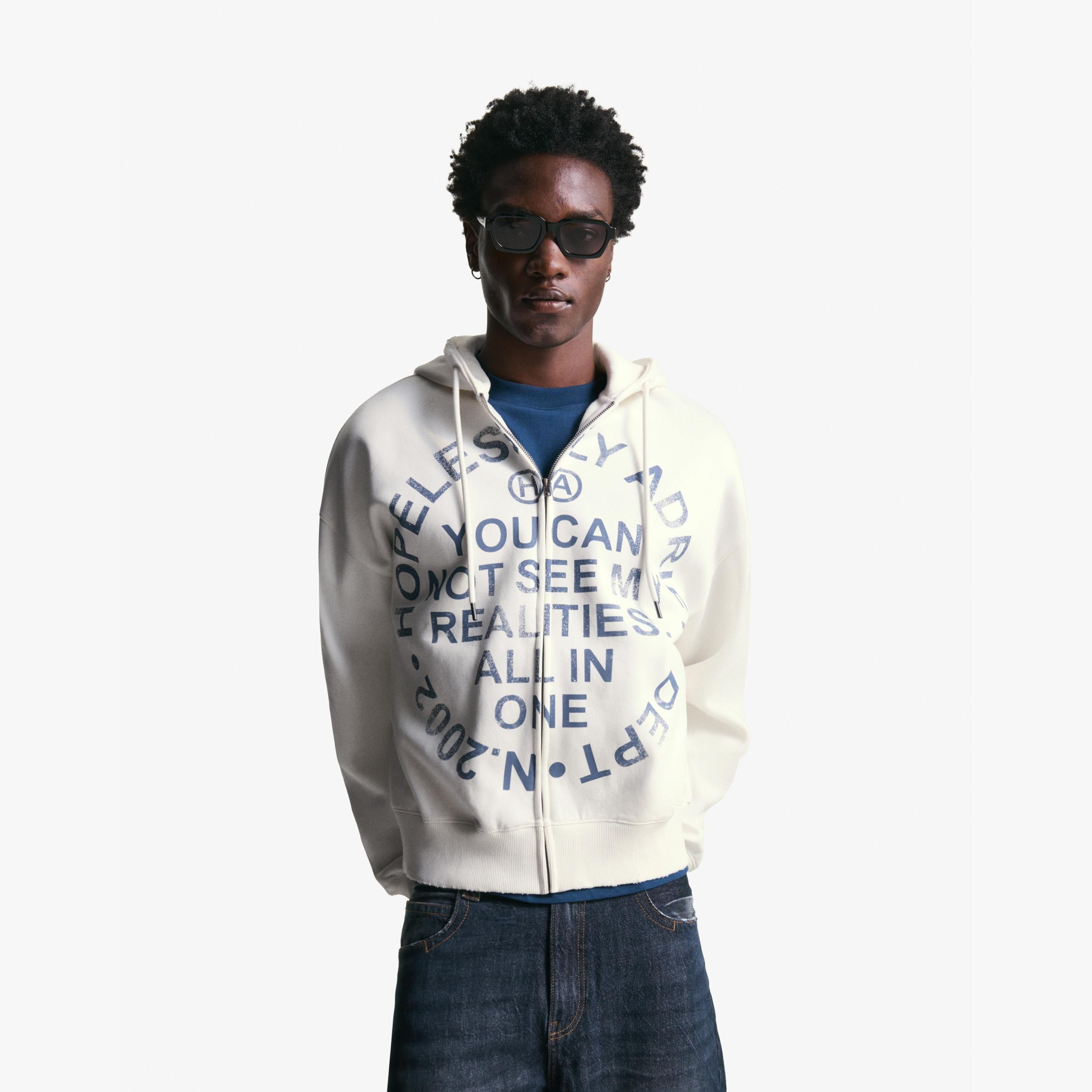 - النوع: سويت شيرت بسحاب أمامي كامل وأكمام طويلة مع طبعة أمامية