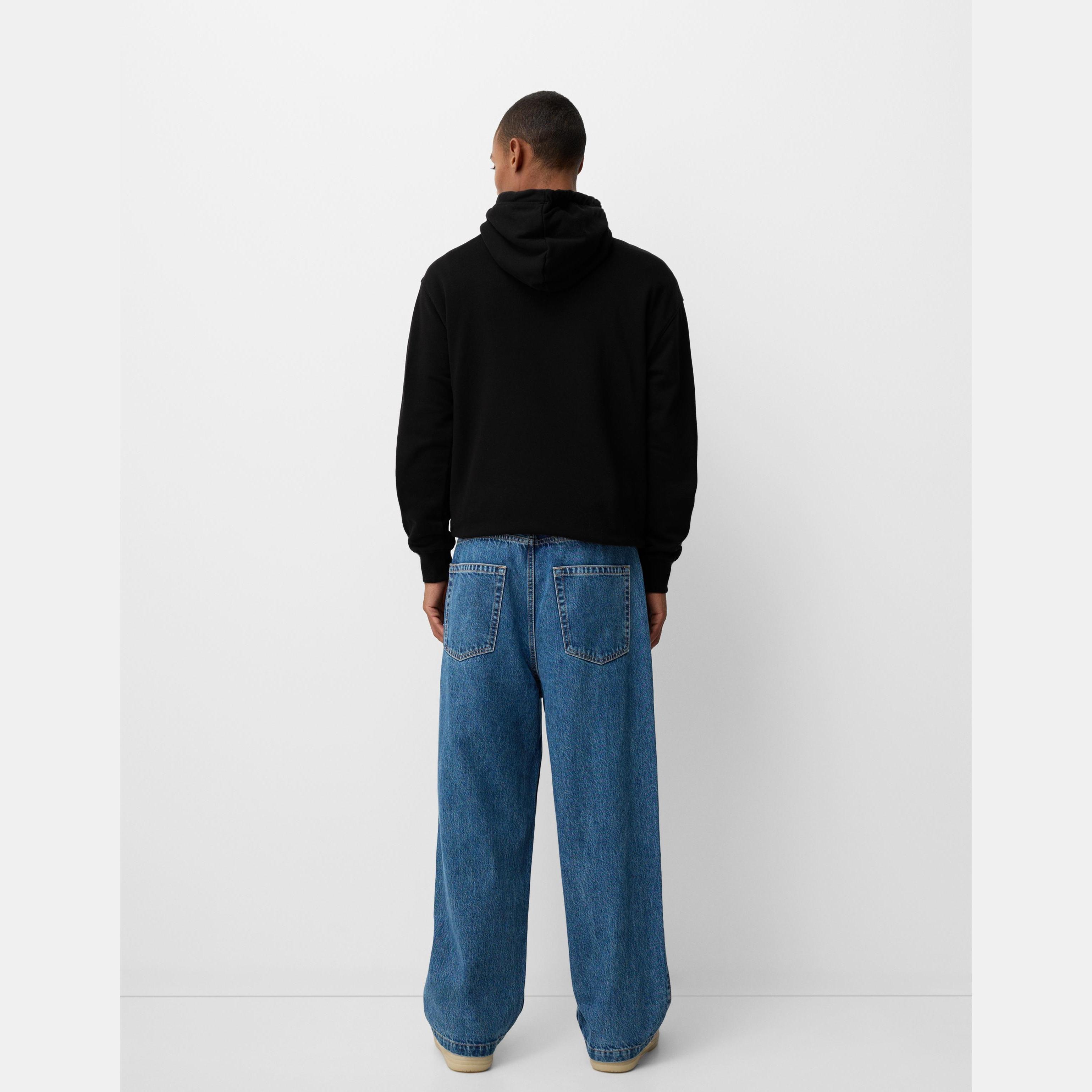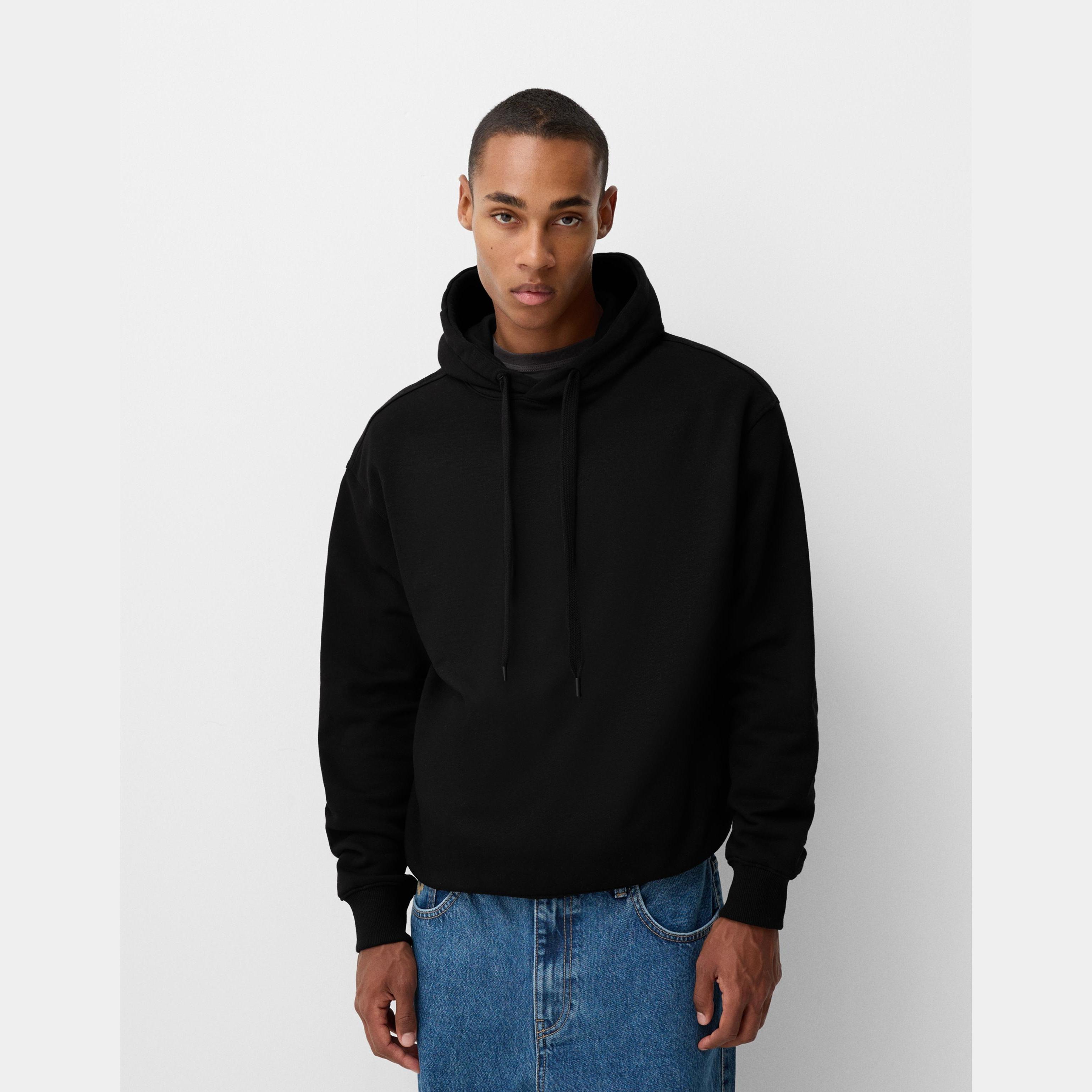 هودي واسع بلون أسود من Bershka – مجموعة Basics