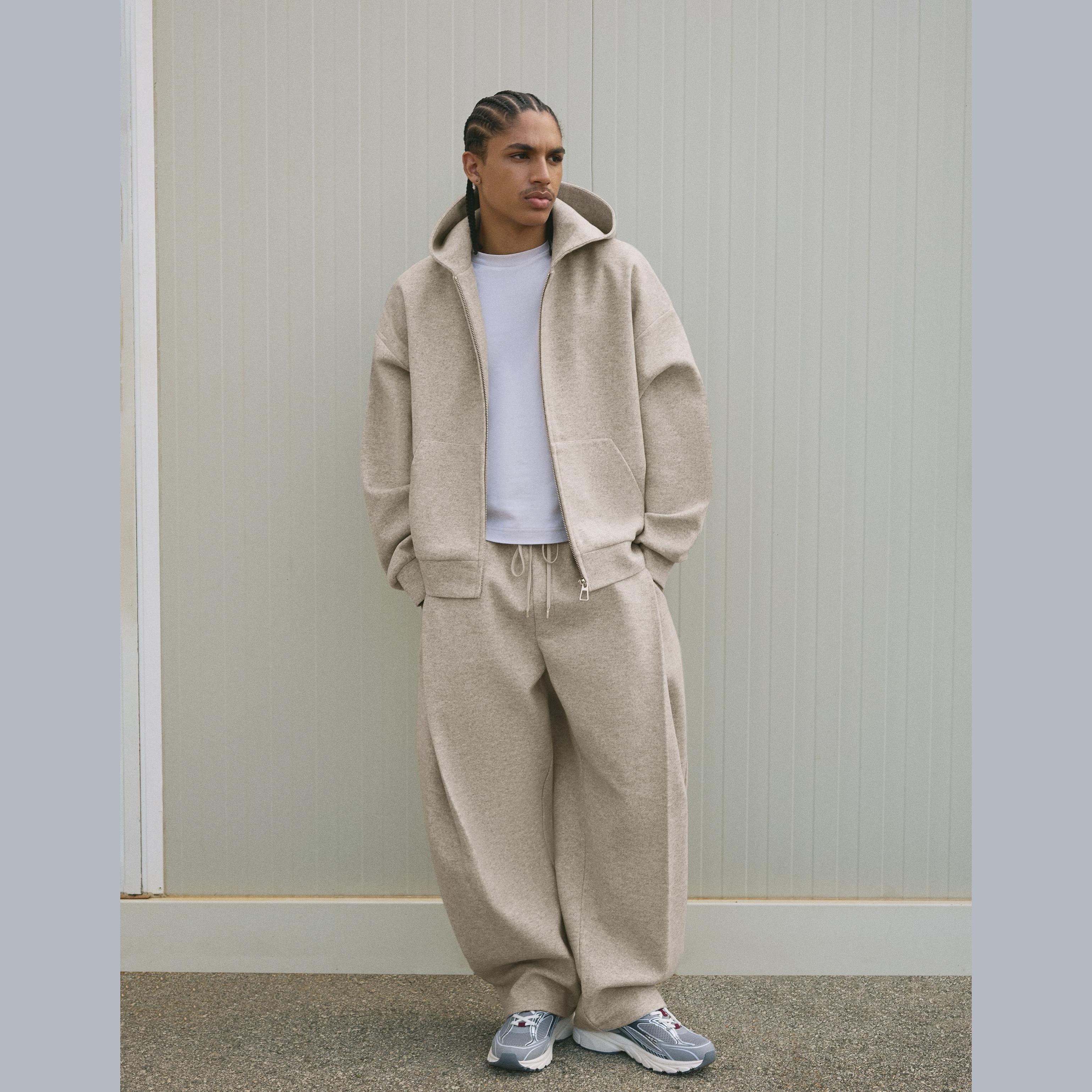 هودي بسحاب كامل بملمس فيلتي بلون رمادي غامق من Bershka