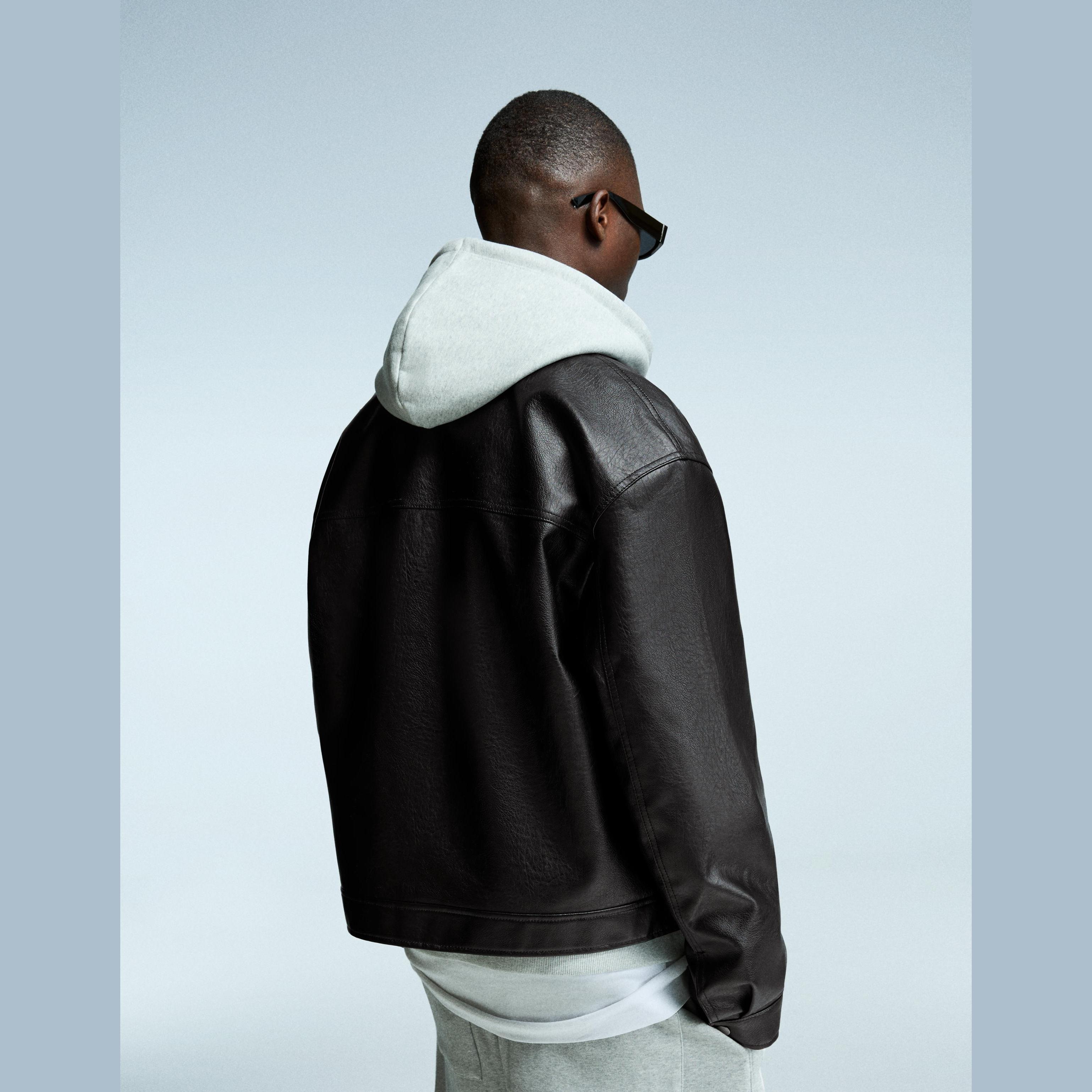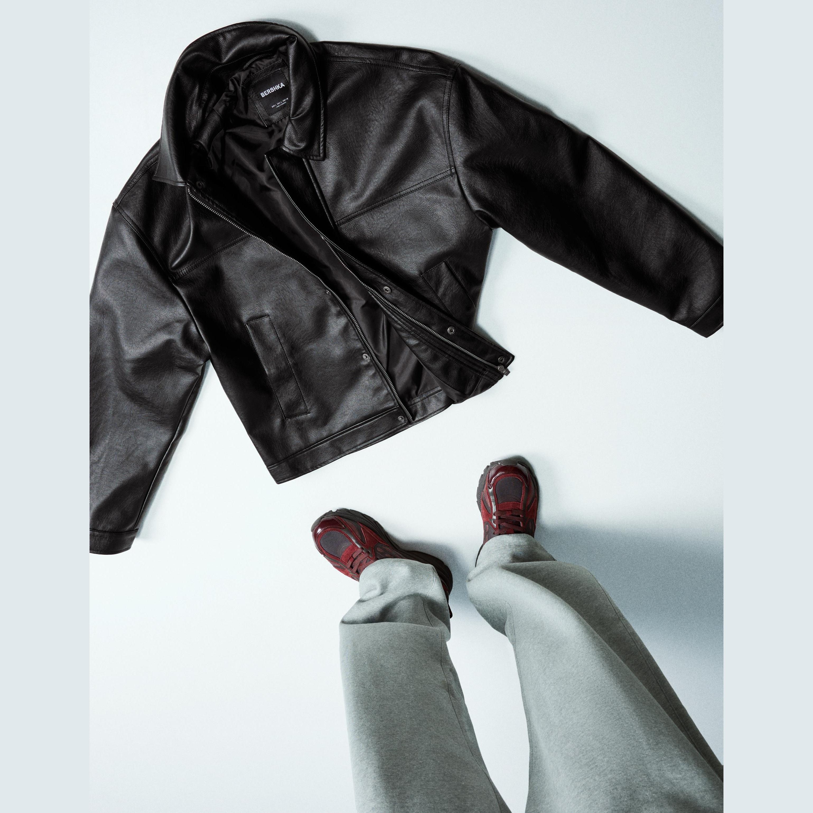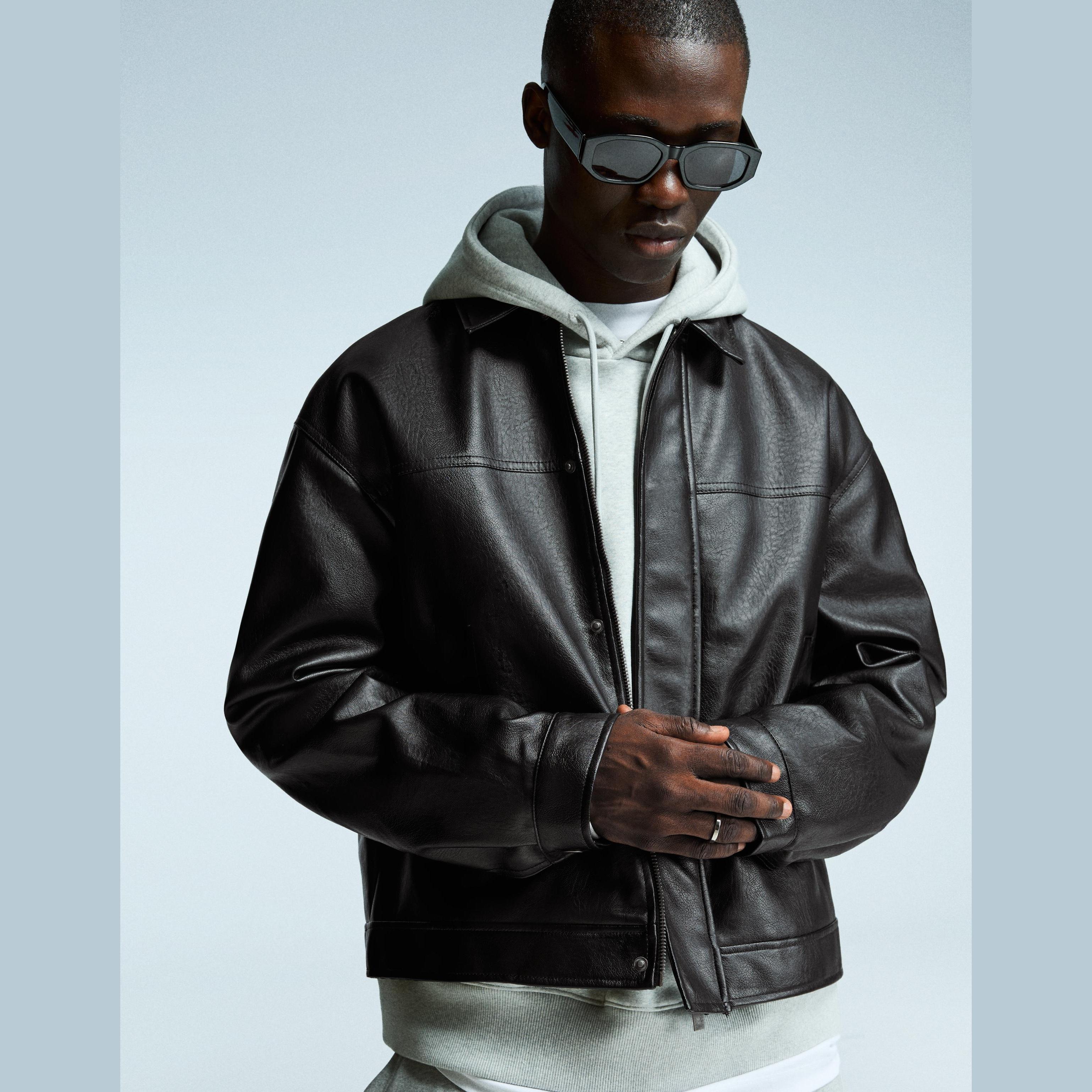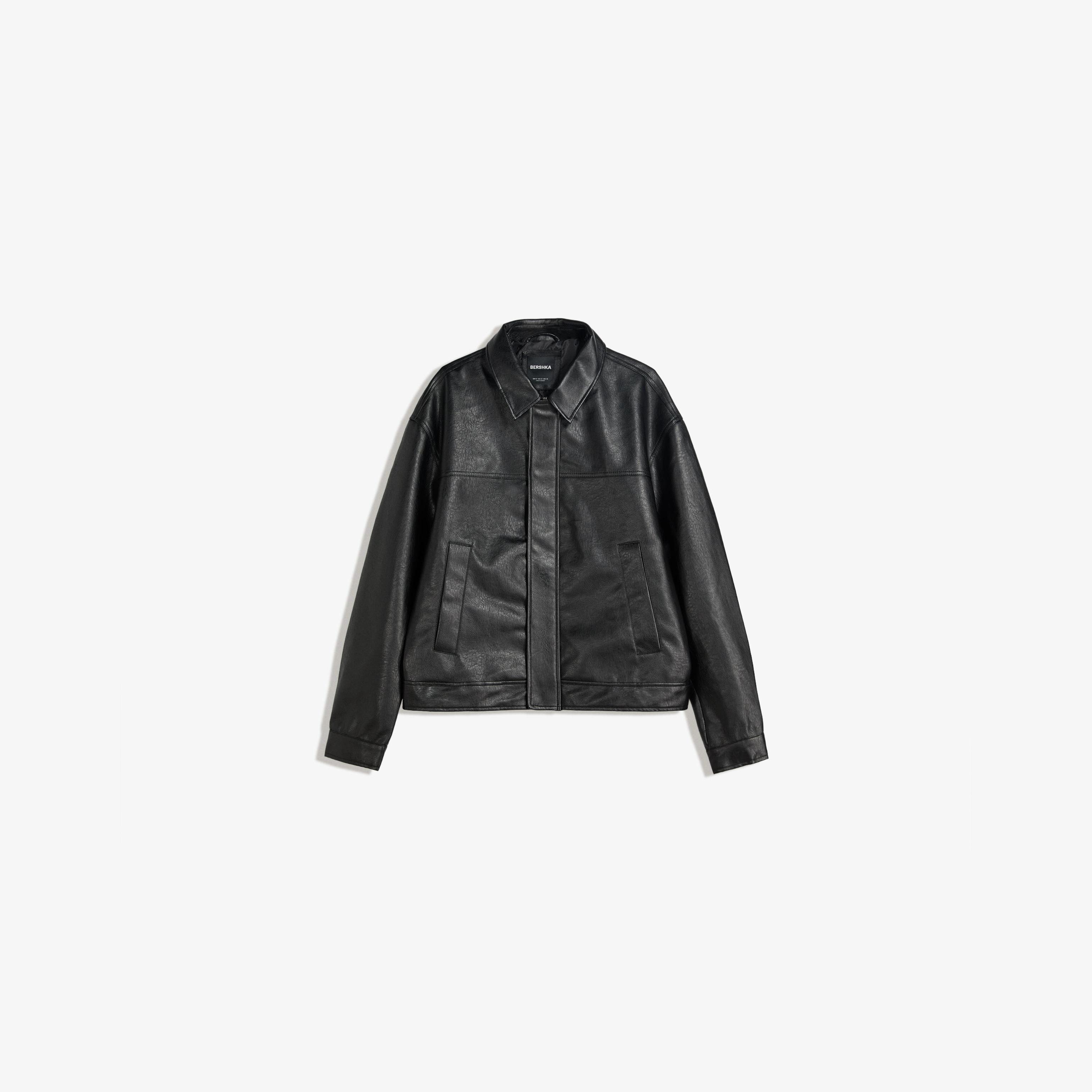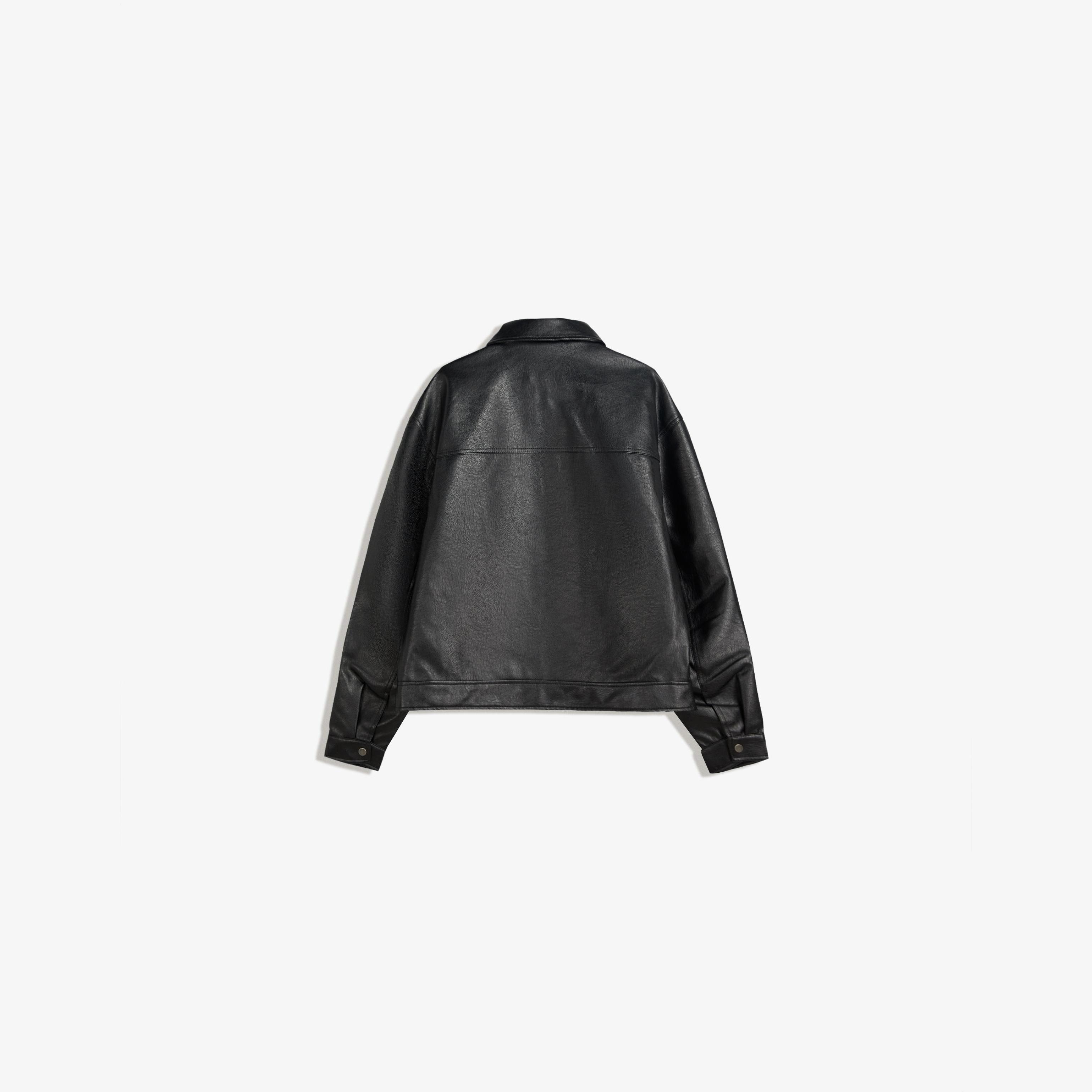 جاكيت بتأثير الجلد وقصة Boxy – أسود من Bershka
