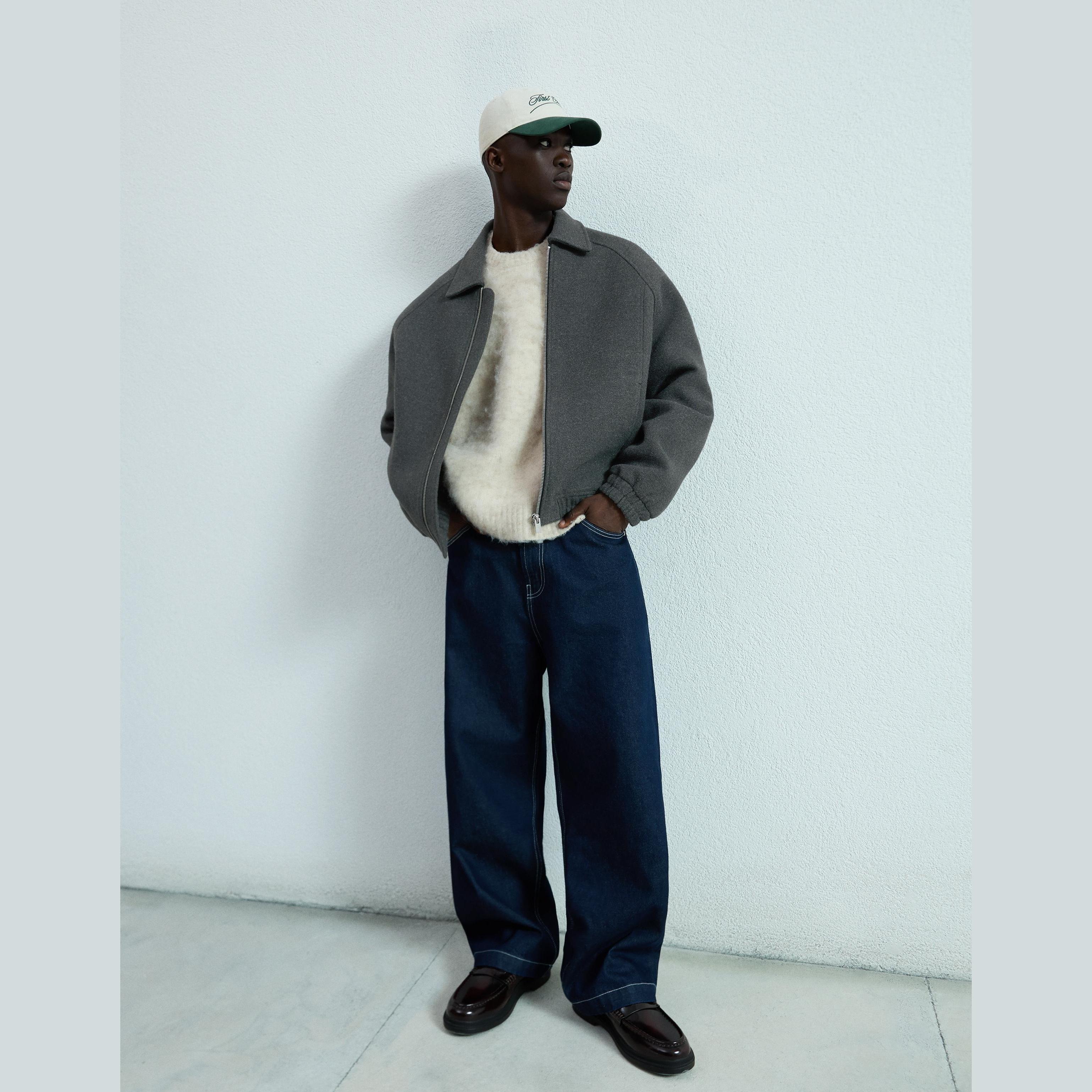 ارتقِ بإطلالتك الموسمية مع هذا الجاكيت الرجالي من Bershka المصمم بقصة Trucker كلاسيكية وخامة صوف صناعي بلون رمادي حيادي. تصميمه يمنحك دفئًا وأناقة في آنٍ واحد، مثالي للتنسيقات متعددة الطبقات في الخريف والشتاء.