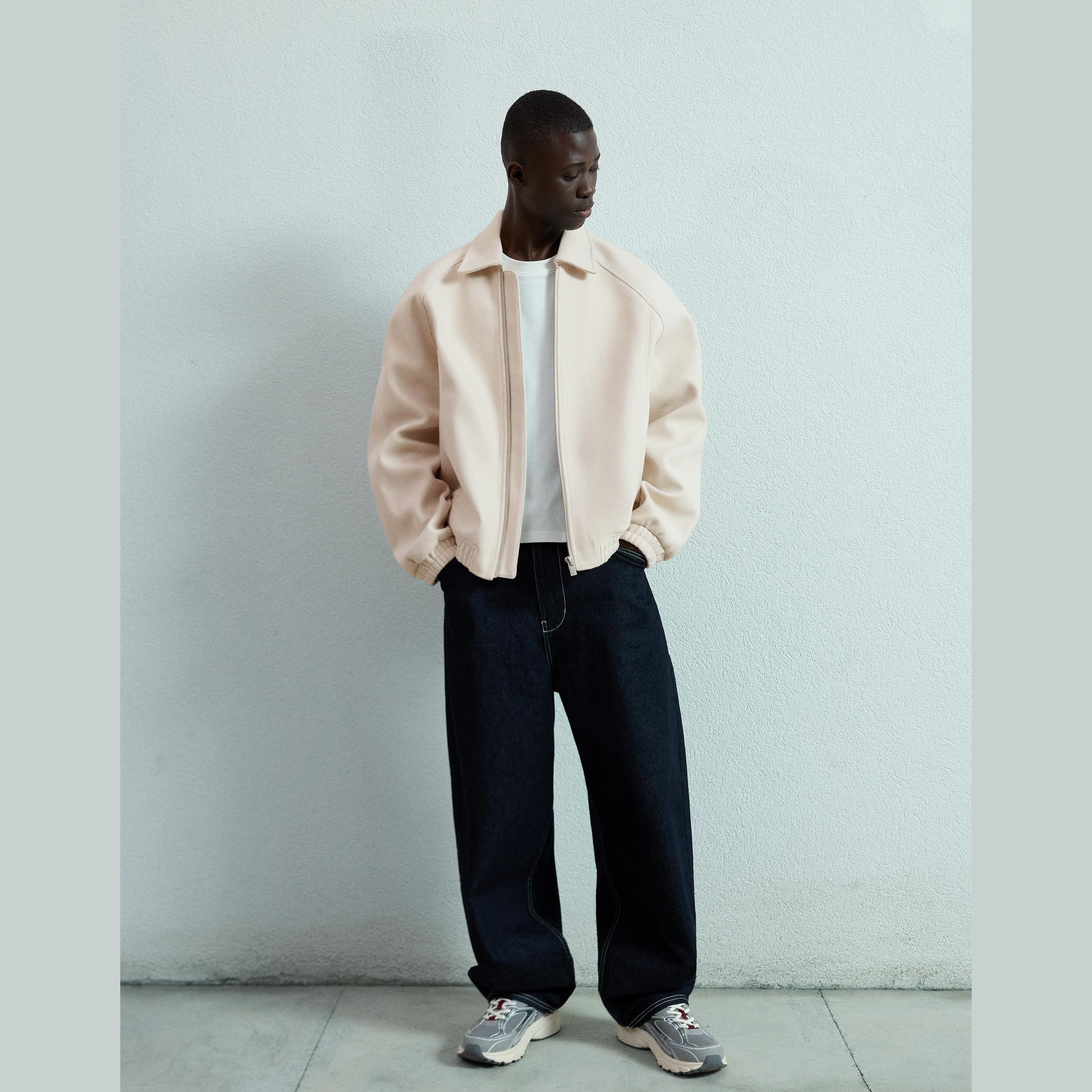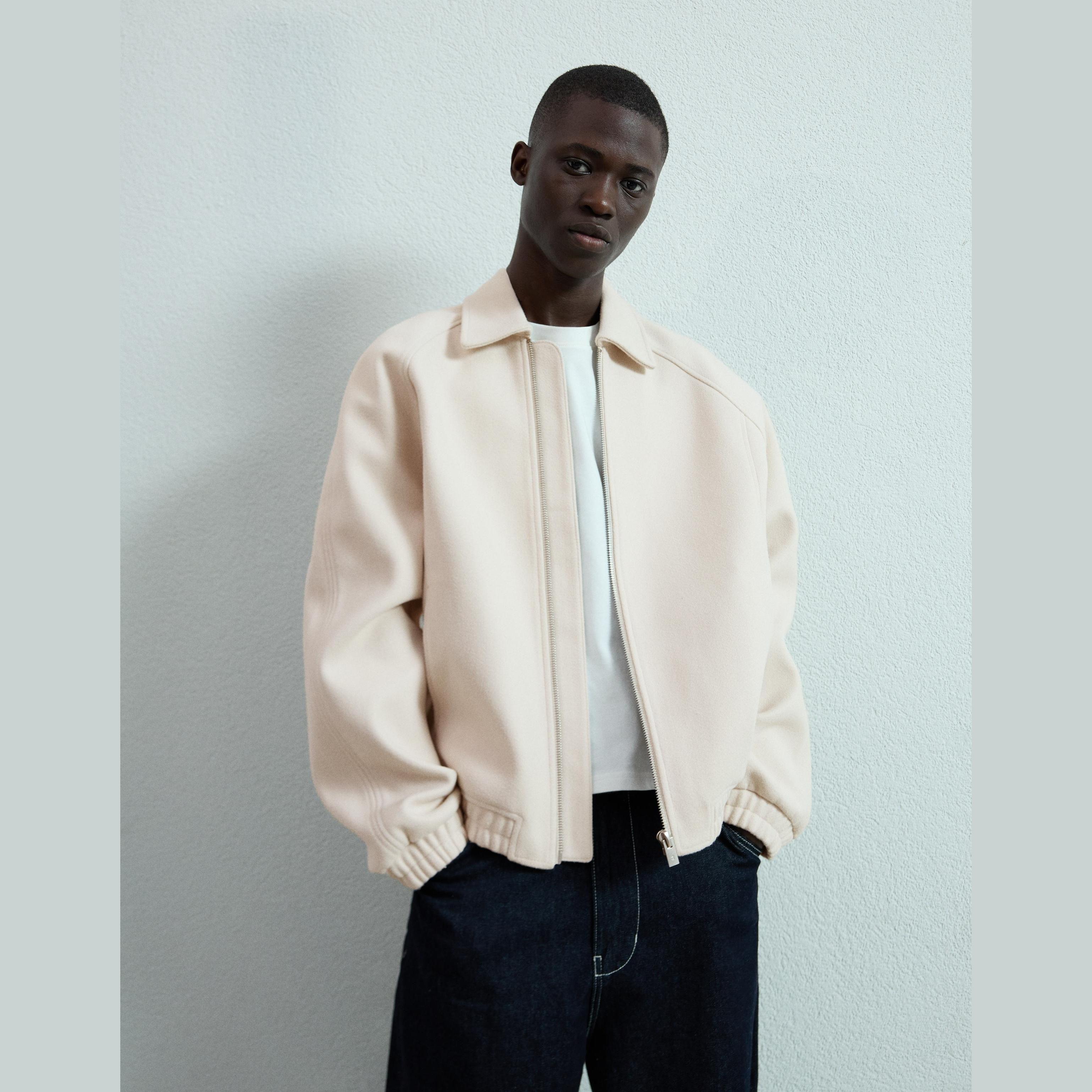ارتقِ بإطلالتك الموسمية مع هذا الجاكيت الرجالي من Bershka المصمم بقصة Trucker كلاسيكية وخامة صوف صناعي بلون بيج فاتح حيادي. تصميمه يمنحك دفئًا وأناقة في آنٍ واحد، مثالي للتنسيقات متعددة الطبقات في الخريف والشتاء.