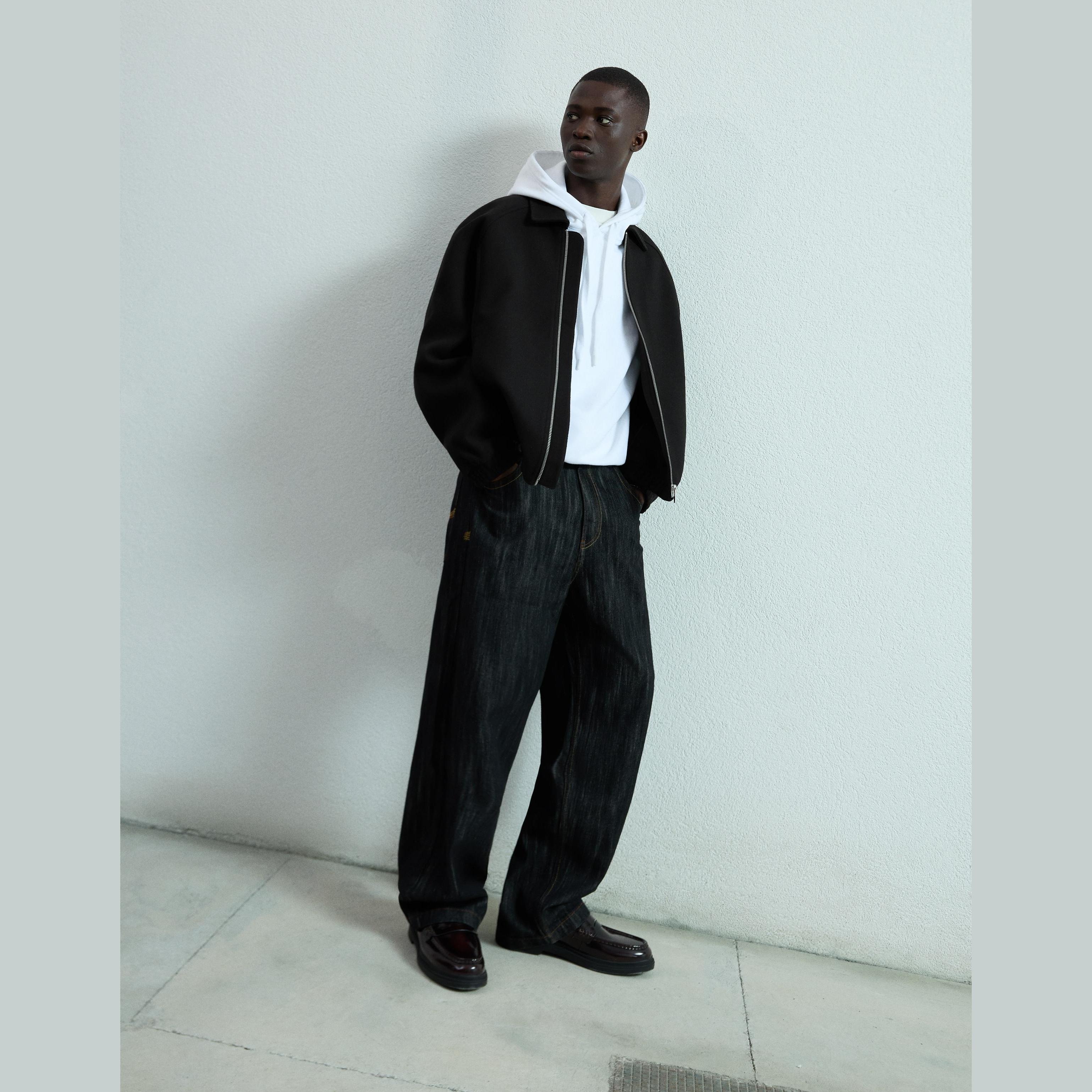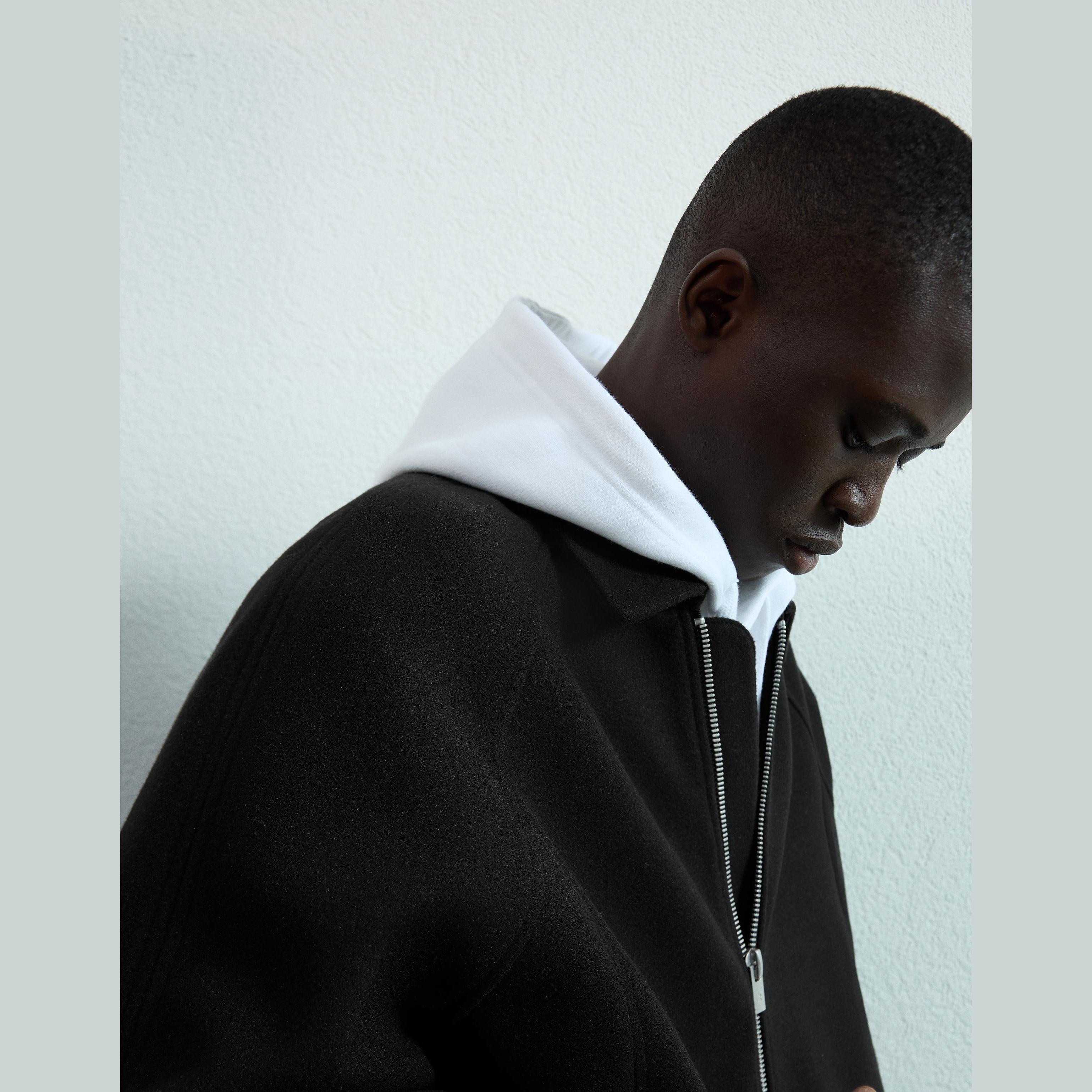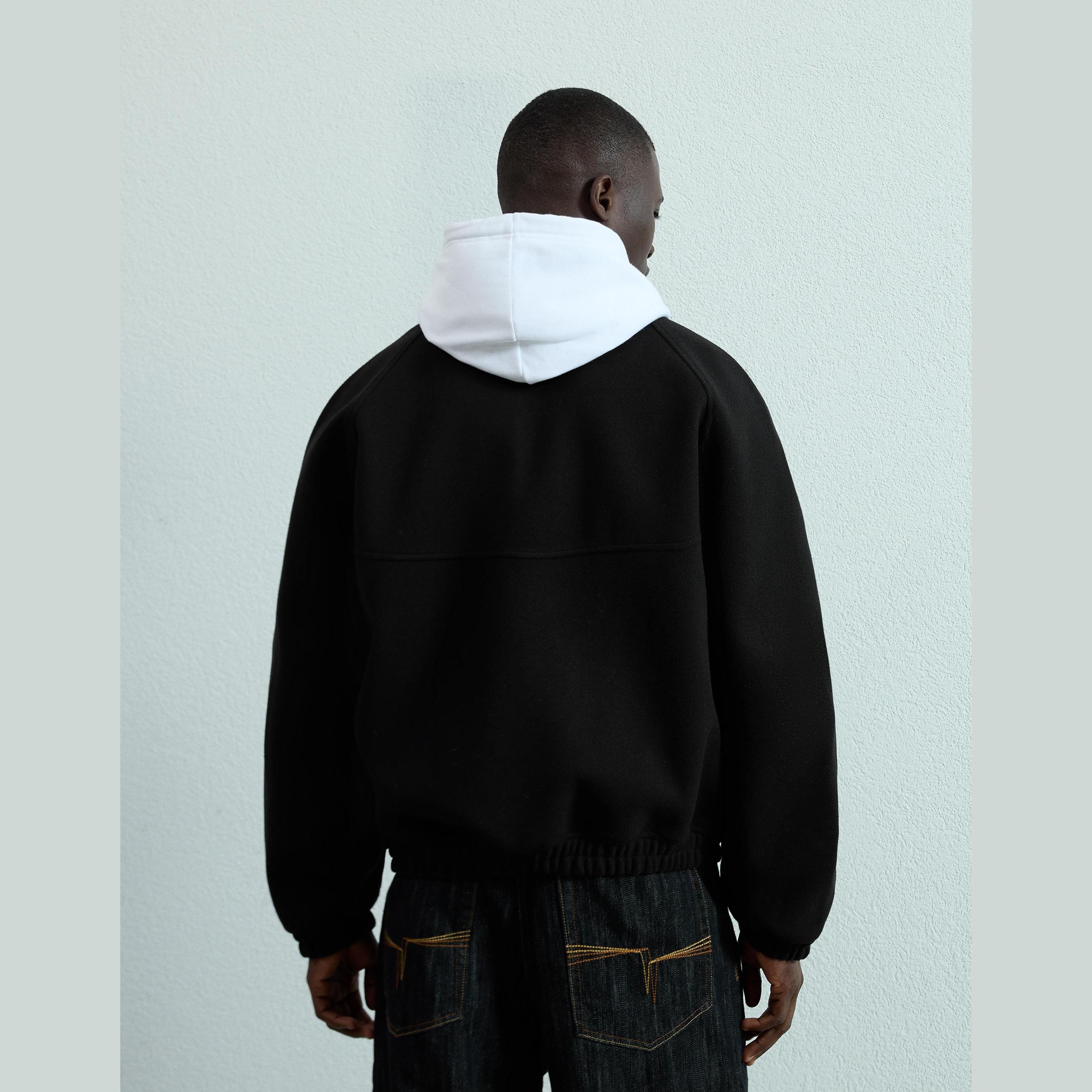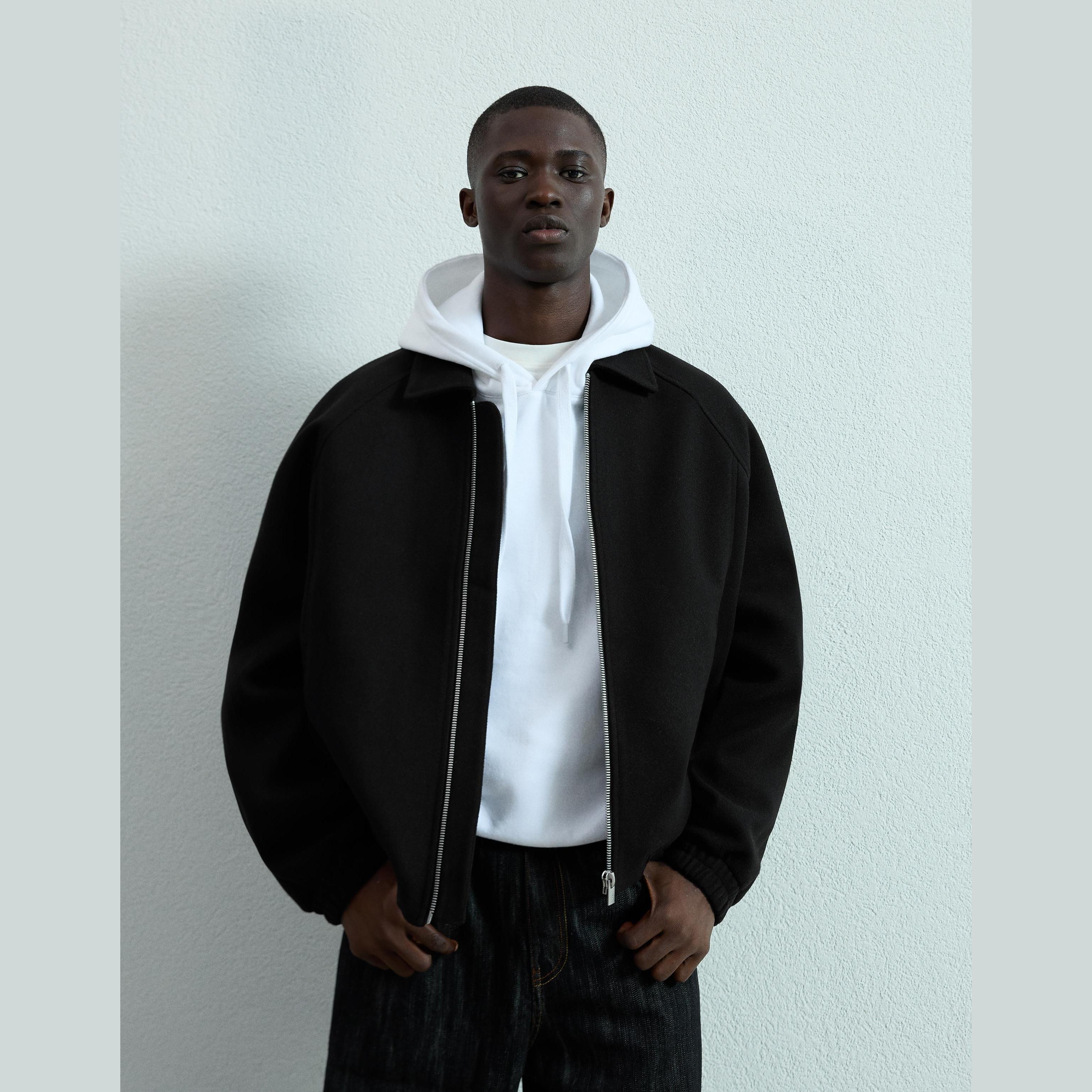 ارتقِ بإطلالتك الموسمية مع هذا الجاكيت الرجالي من Bershka المصمم بقصة Trucker كلاسيكية وخامة صوف صناعي بلون أسود حيادي. تصميمه يمنحك دفئًا وأناقة في آنٍ واحد، مثالي للتنسيقات متعددة الطبقات في الخريف والشتاء.