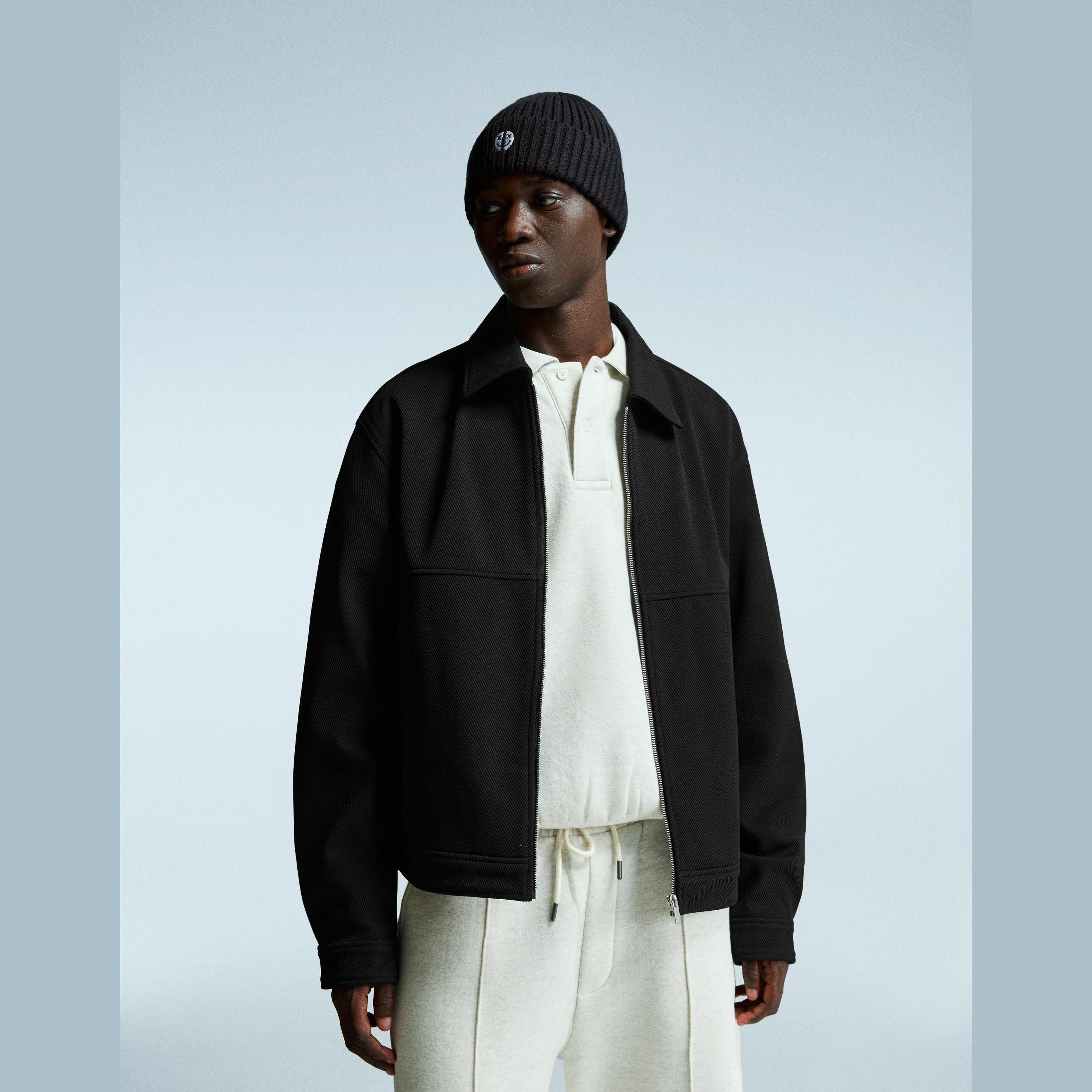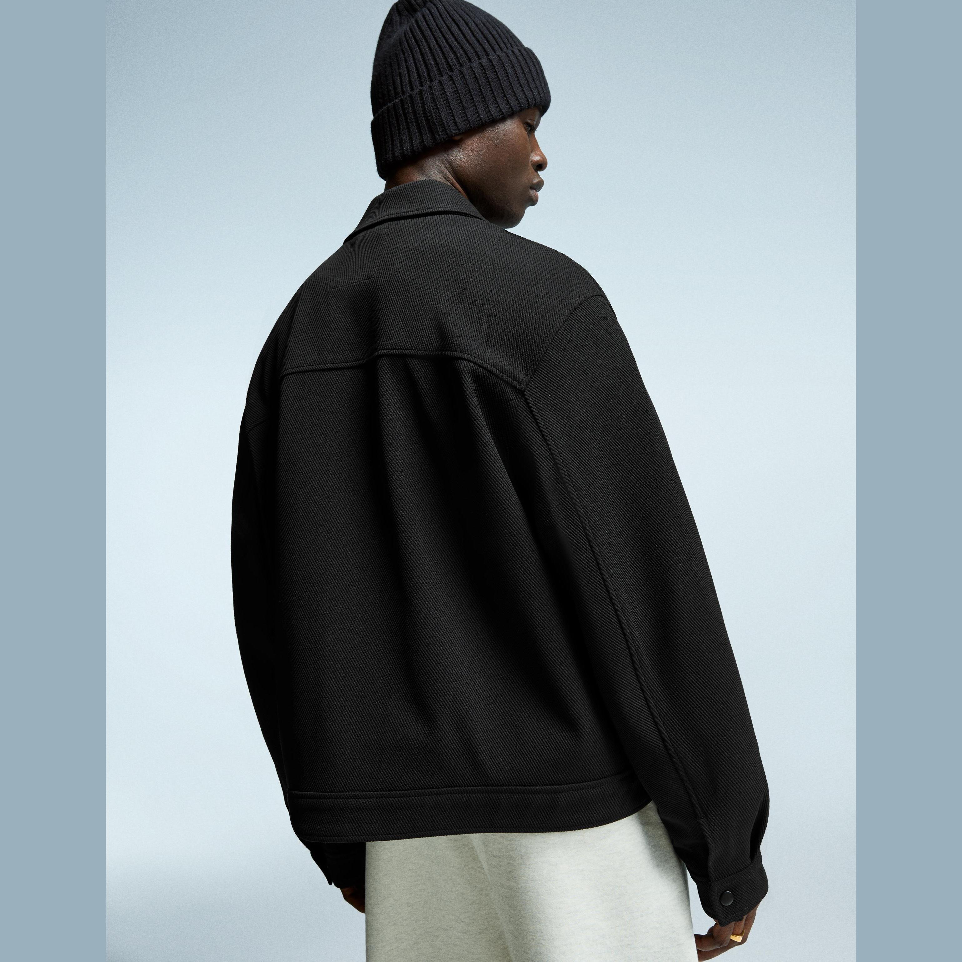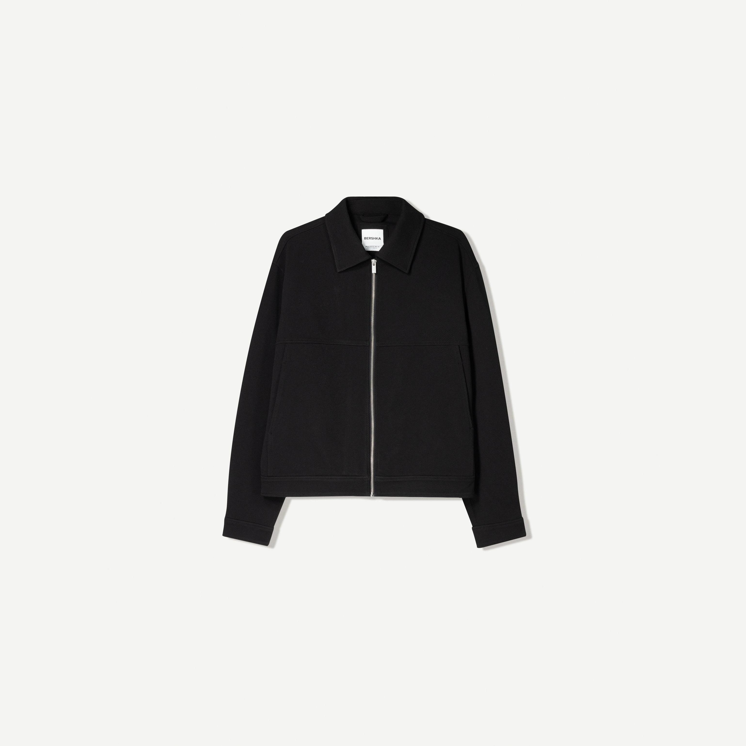 ارتقِ بإطلالتك الموسمية مع هذا الجاكيت الرجالي من Bershka المصمم بخامة محبوكة وقصة Trucker كلاسيكية بلون أسود حيادي. تصميمه يمنحك مظهرًا حضريًا أنيقًا وراحة مثالية في الأجواء الباردة.