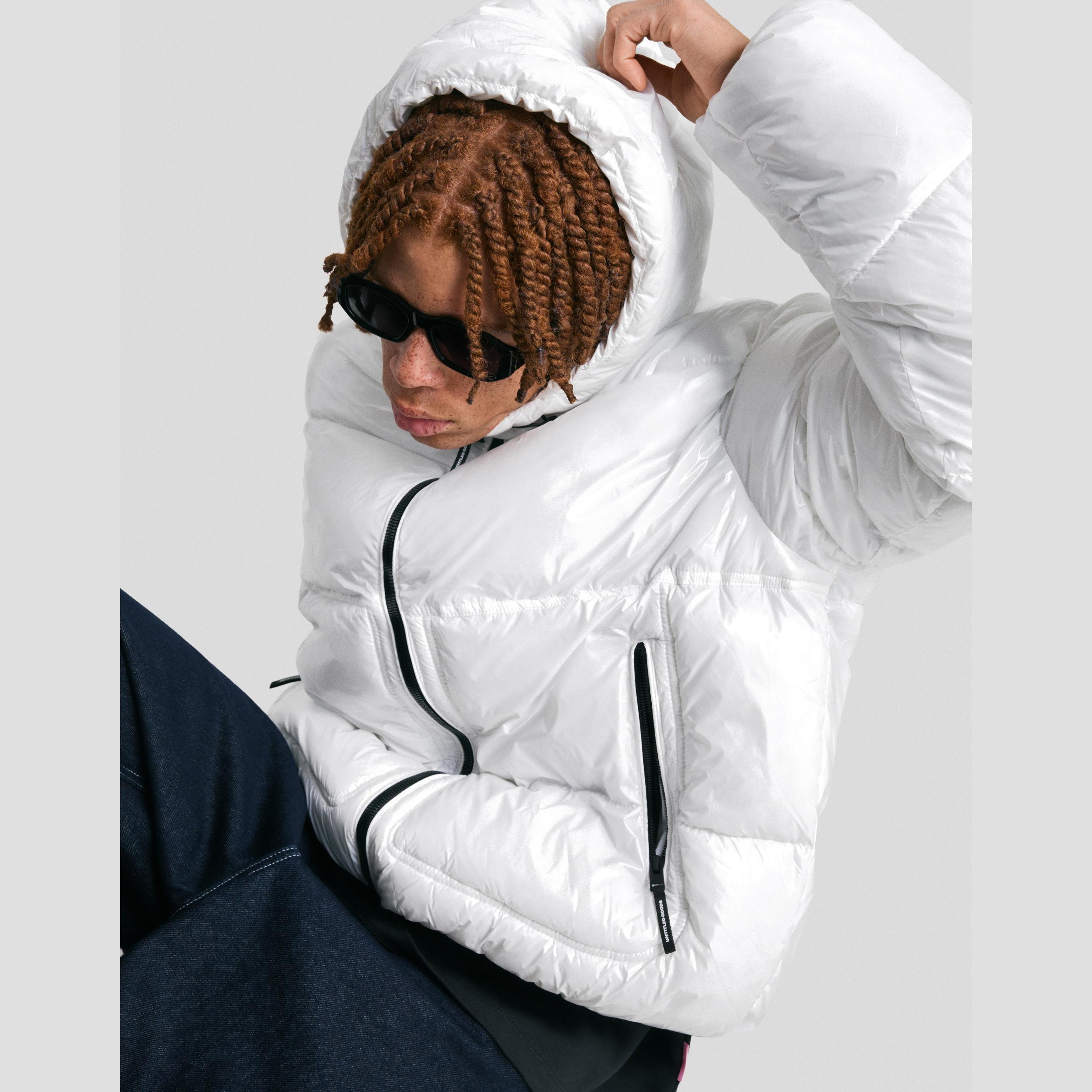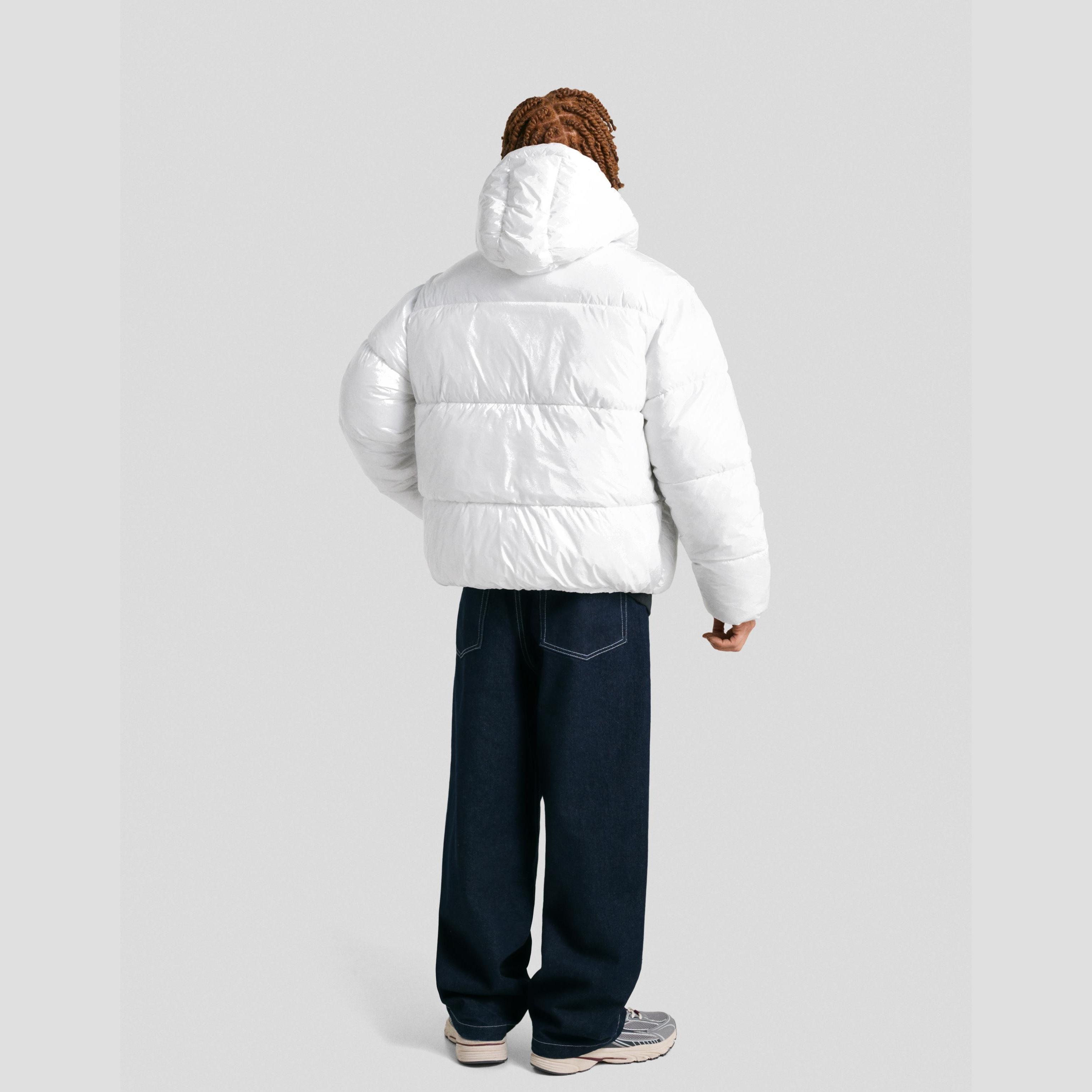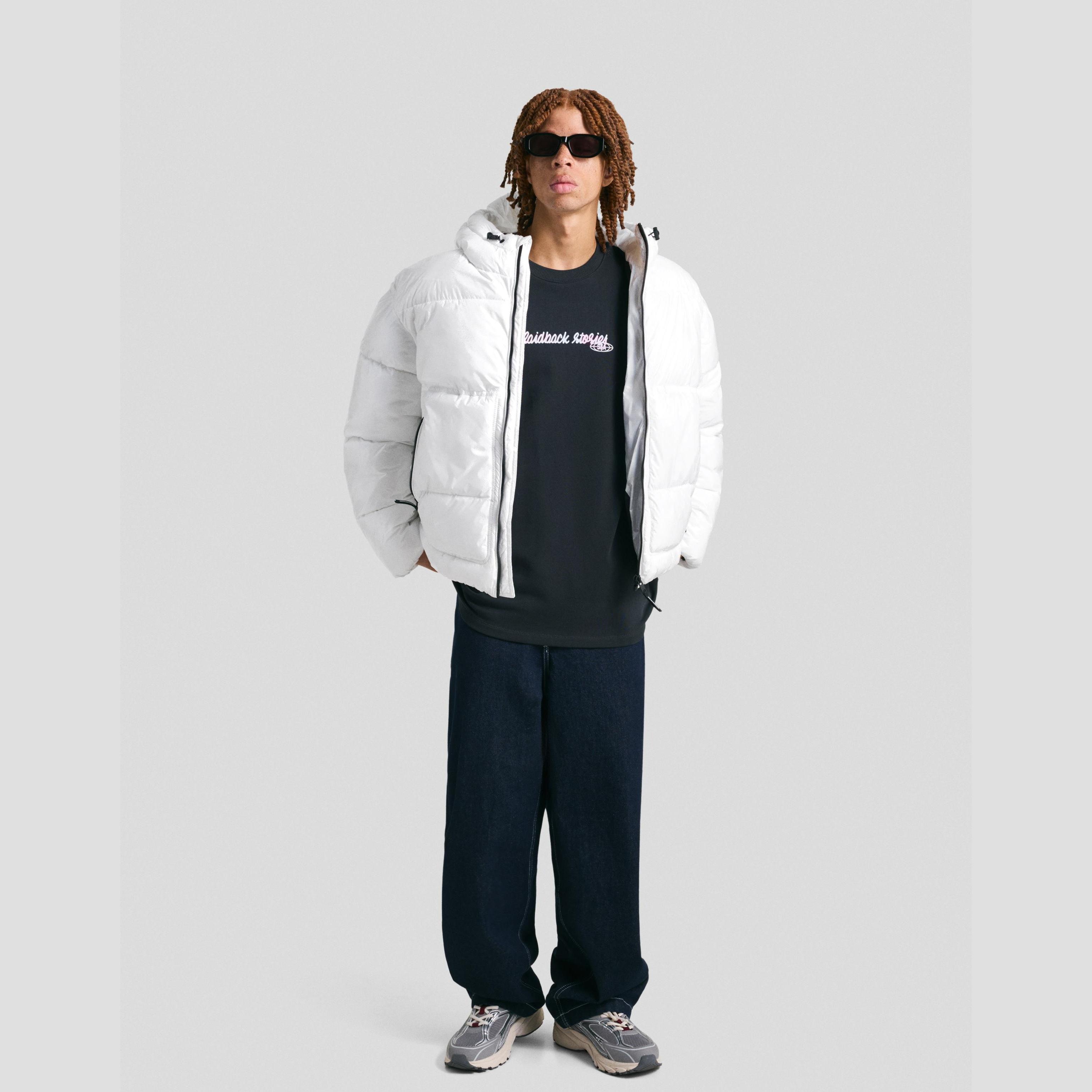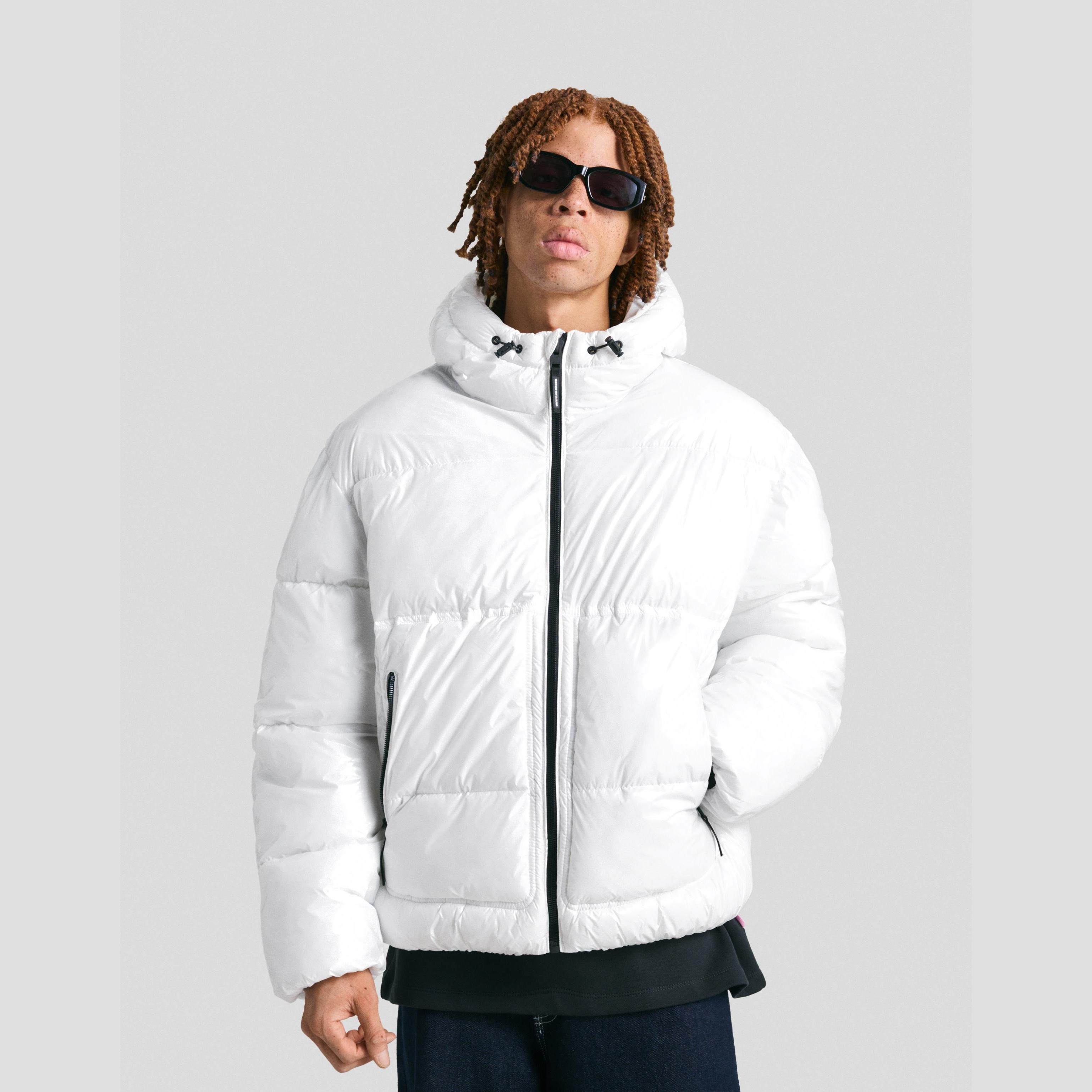 جاكيت منتفخ بغطاء رأس – أبيض من Bershka