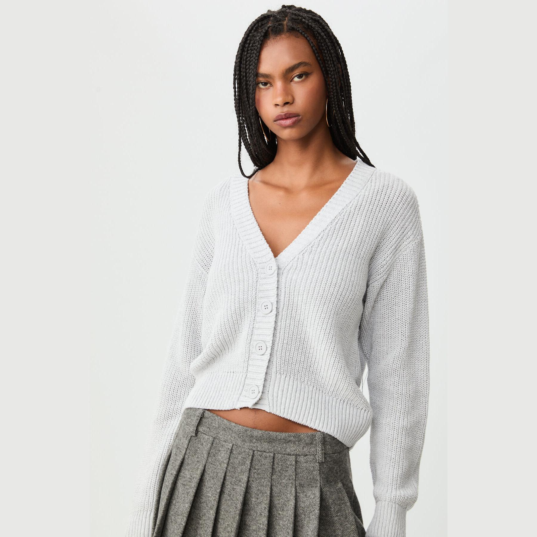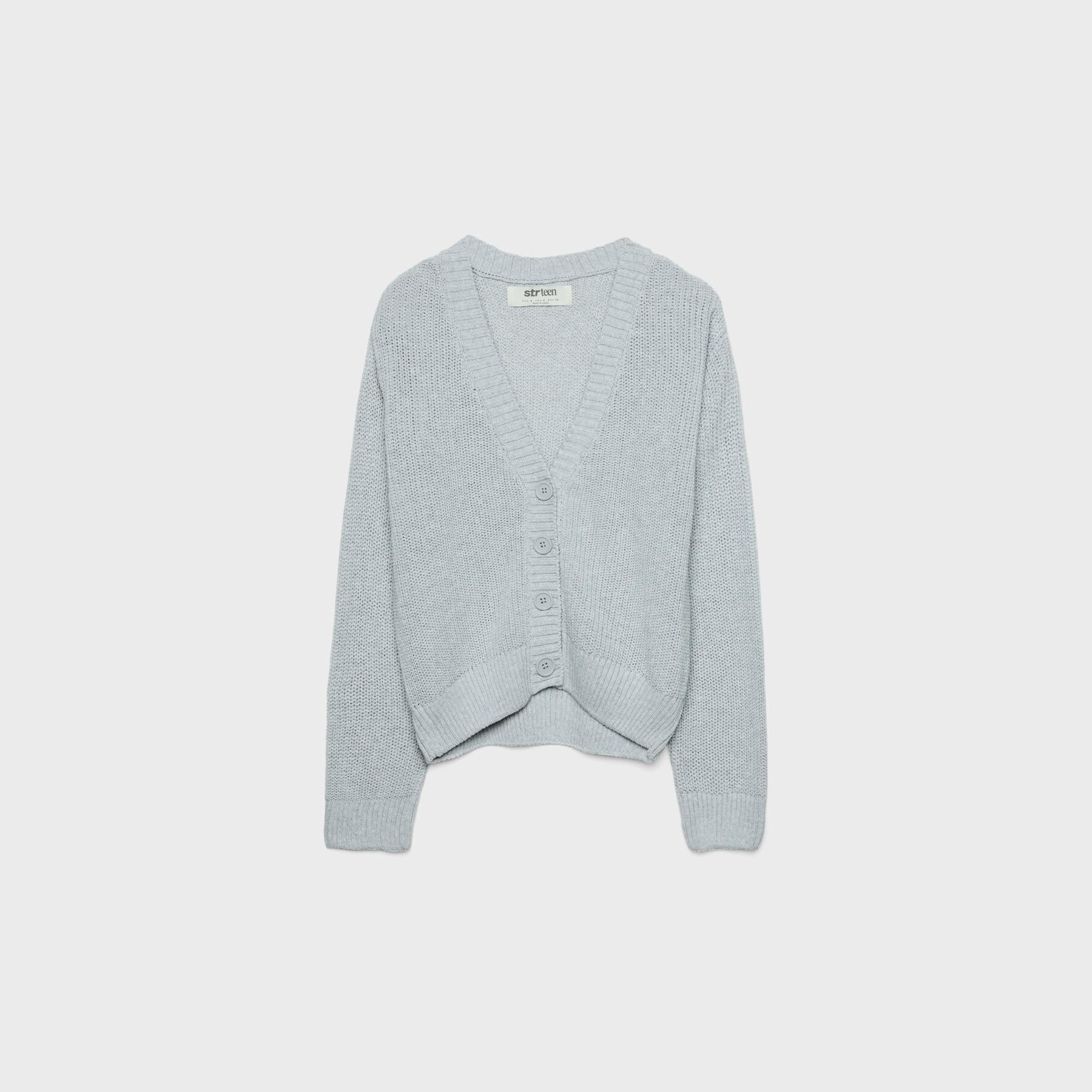 كارديغان تريكو بأزرار – رمادي من Stradivarius