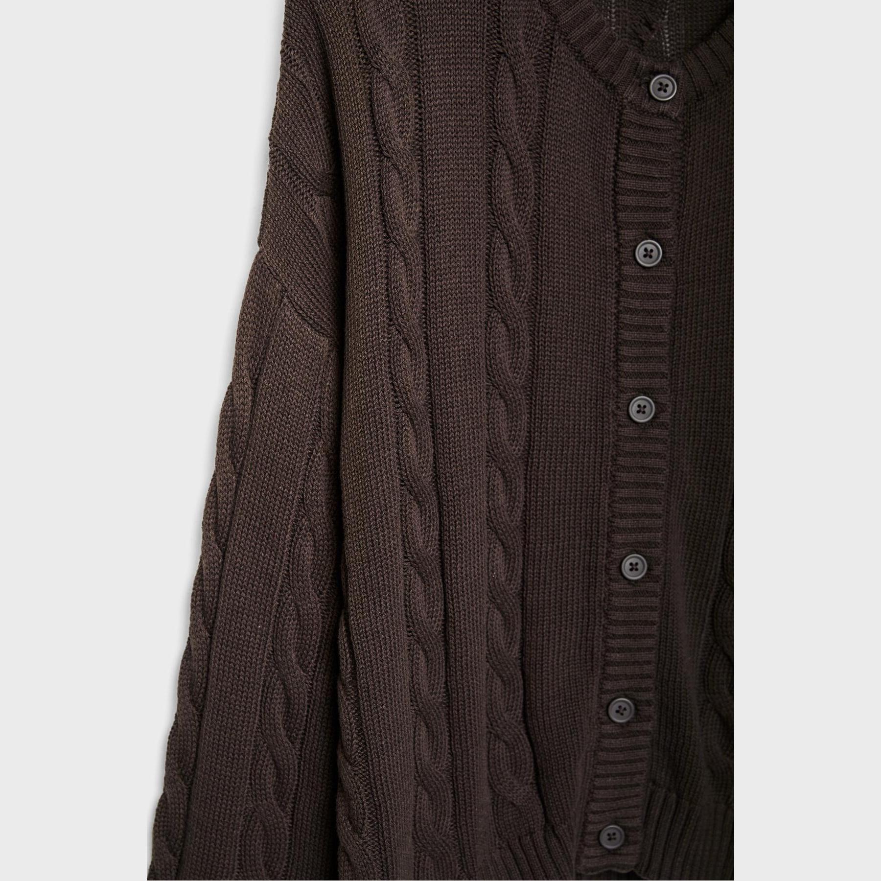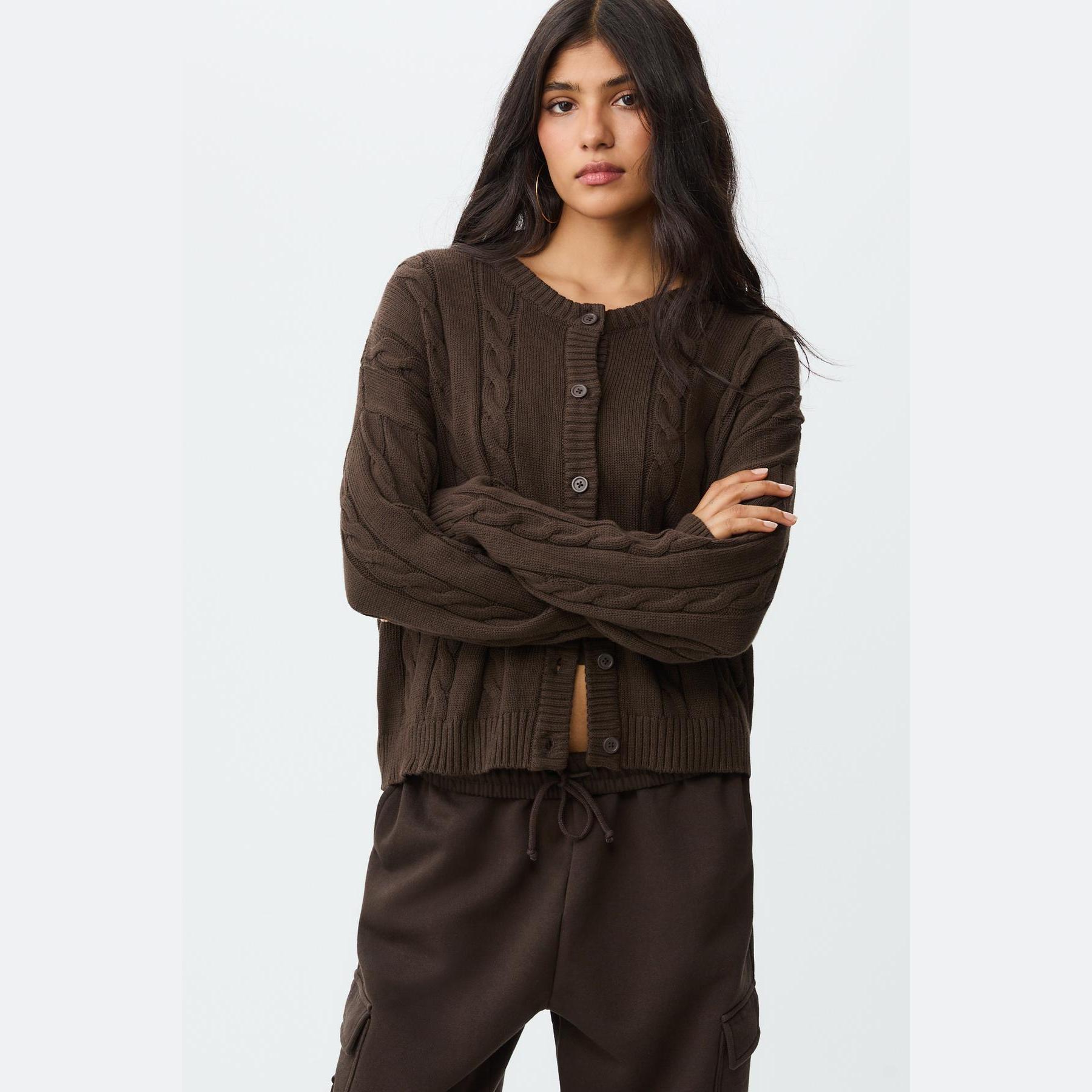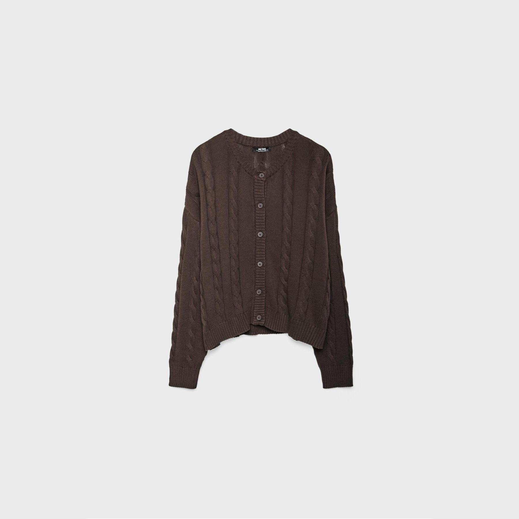 كارديغان تريكو بأزرار بنقشة مضلعة – بني من Stradivarius