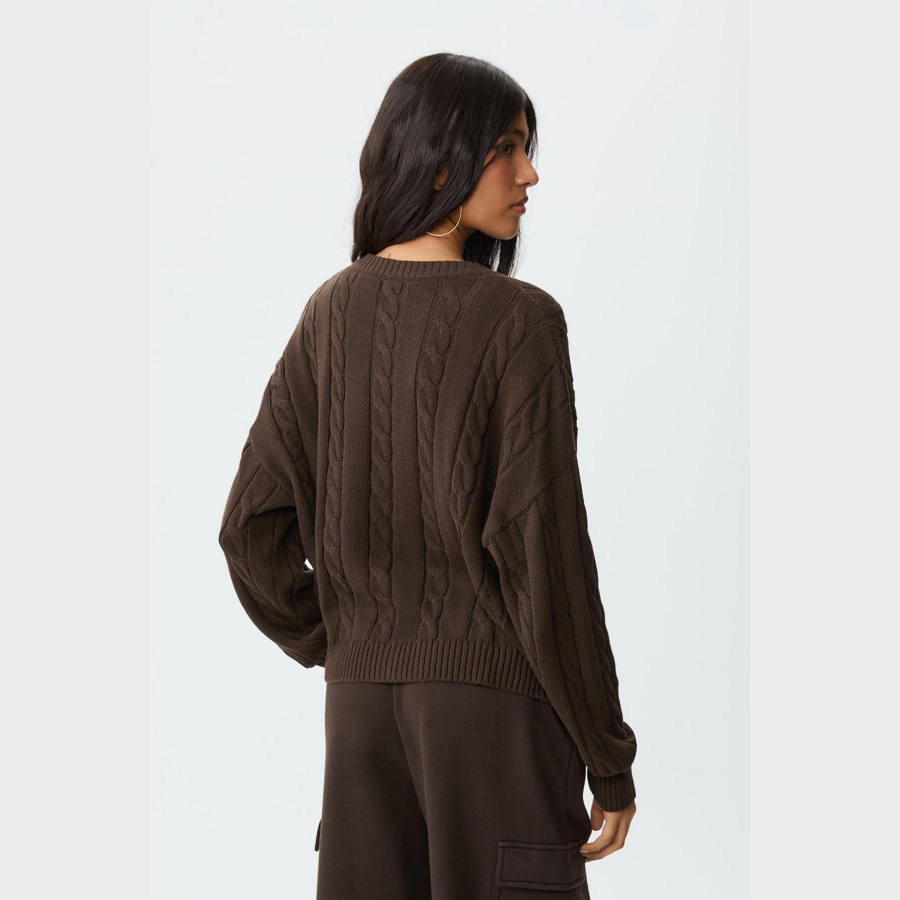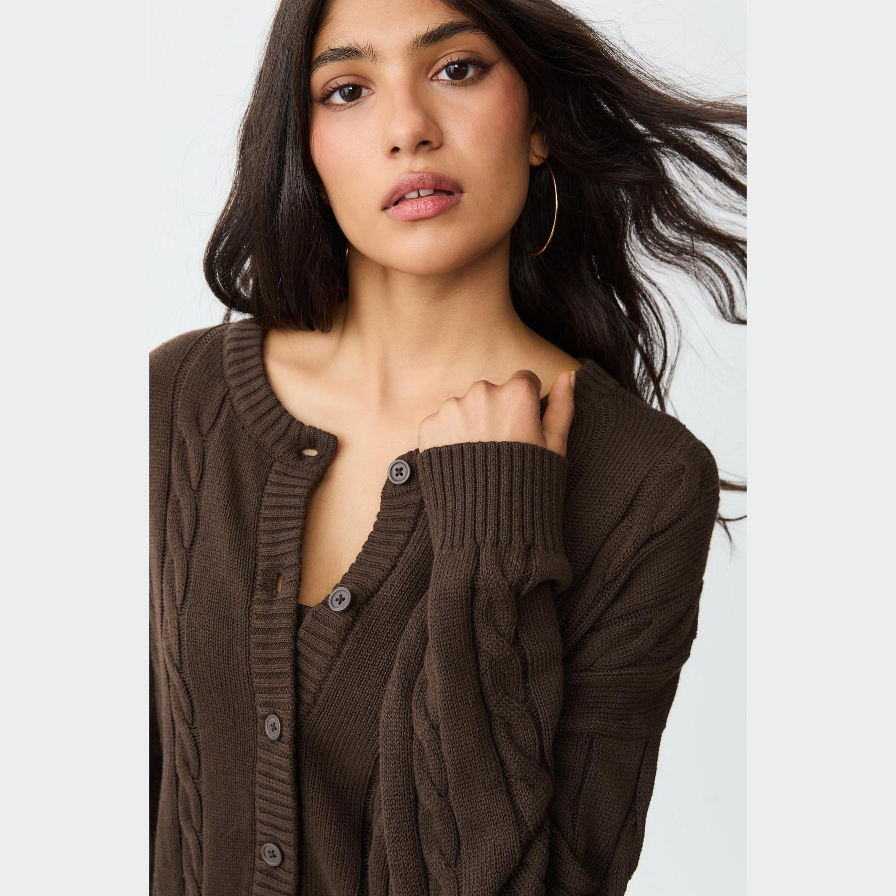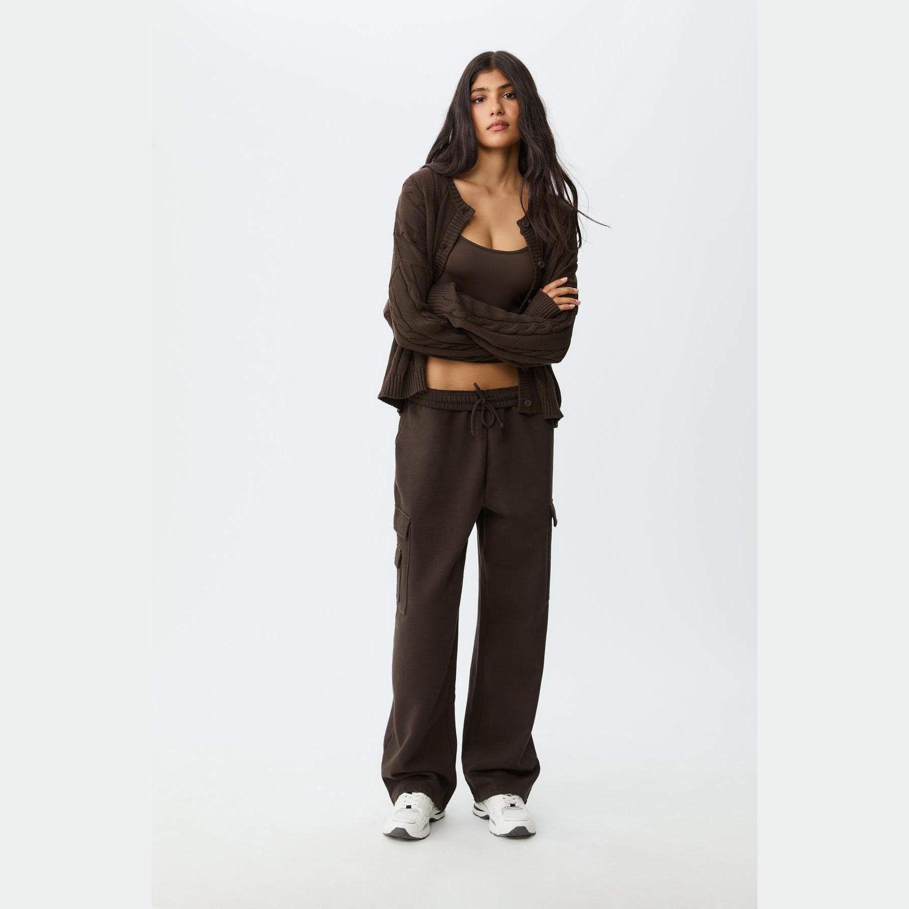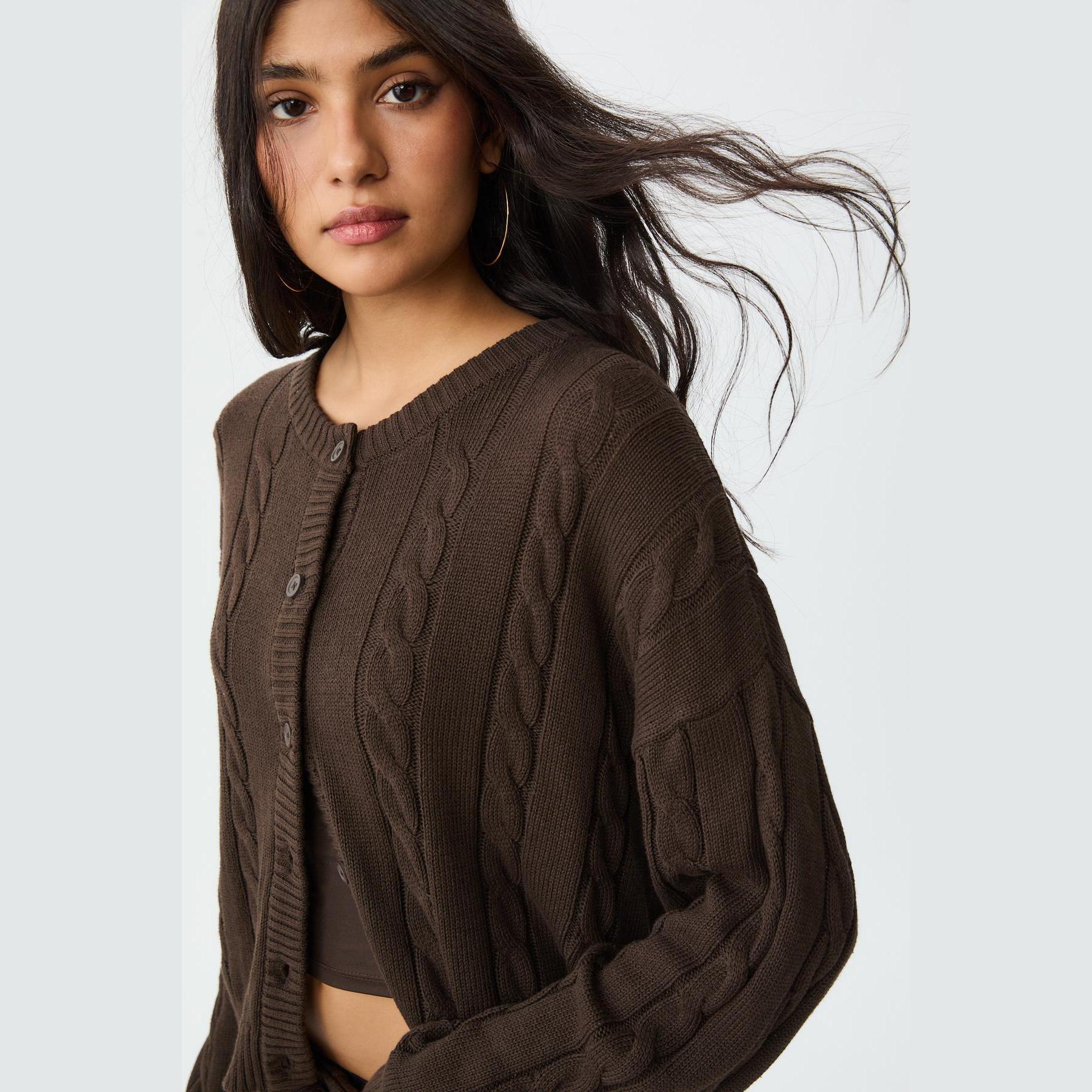 كارديغان تريكو بأزرار بنقشة مضلعة – بني من Stradivarius