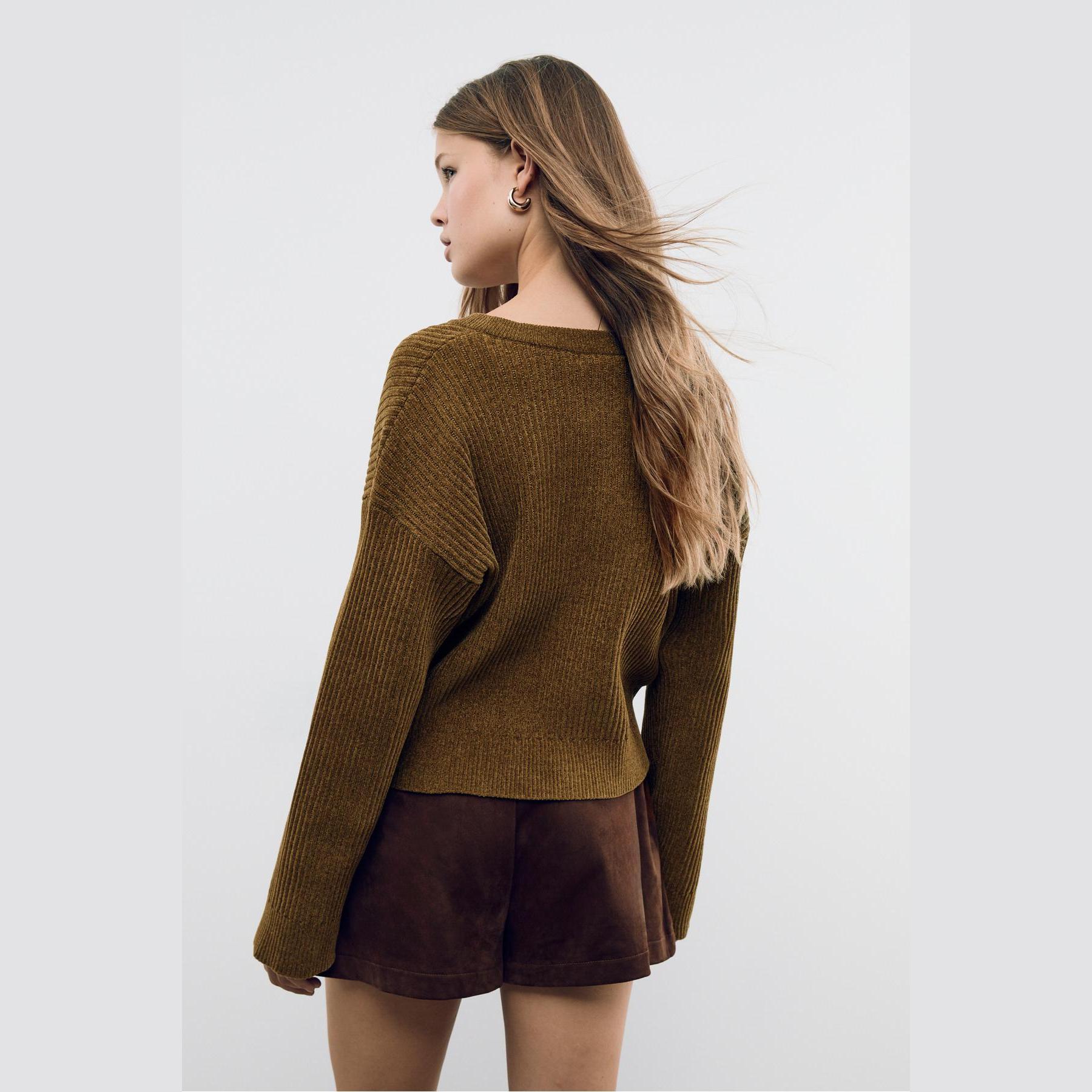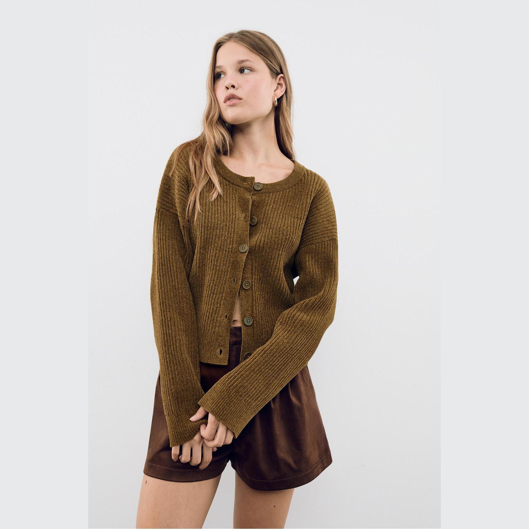 جاكيت تريكو بأزرار – زيتي من Stradivarius