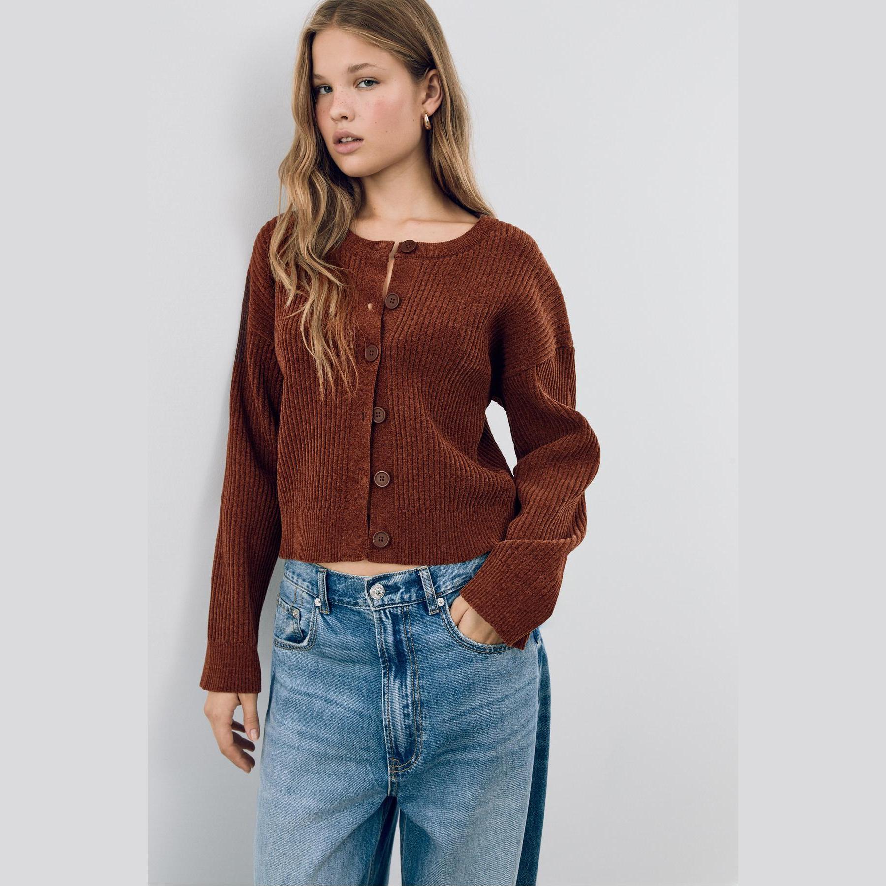 جاكيت تريكو بأزرار – بني فاتح من Stradivarius