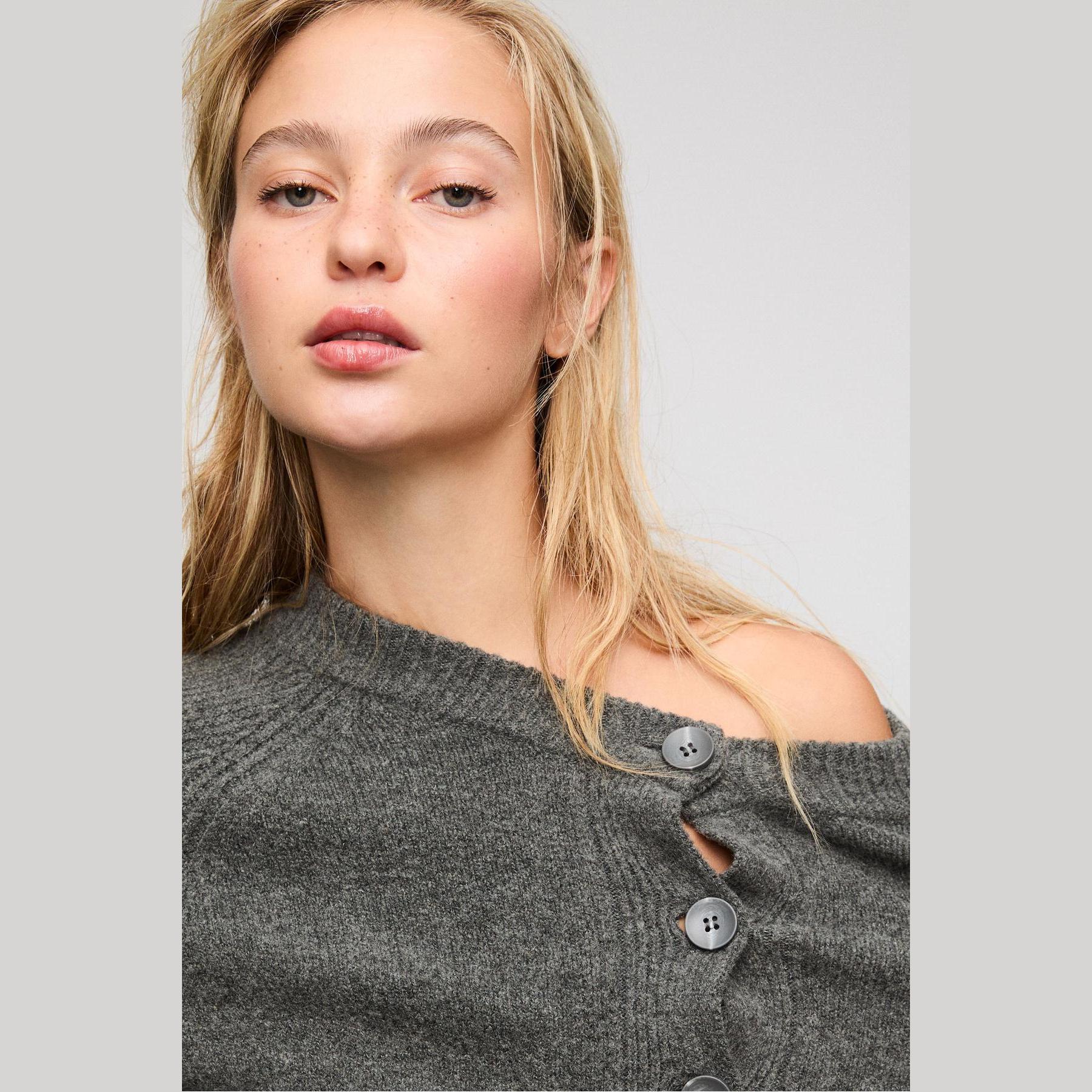 - التصميم: كارديغان بأزرار ونقشة ضفائر