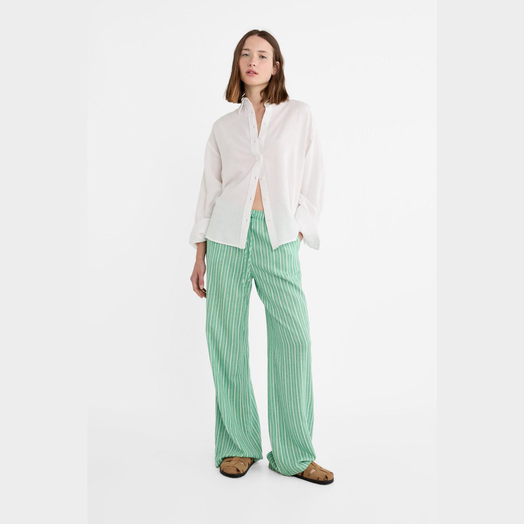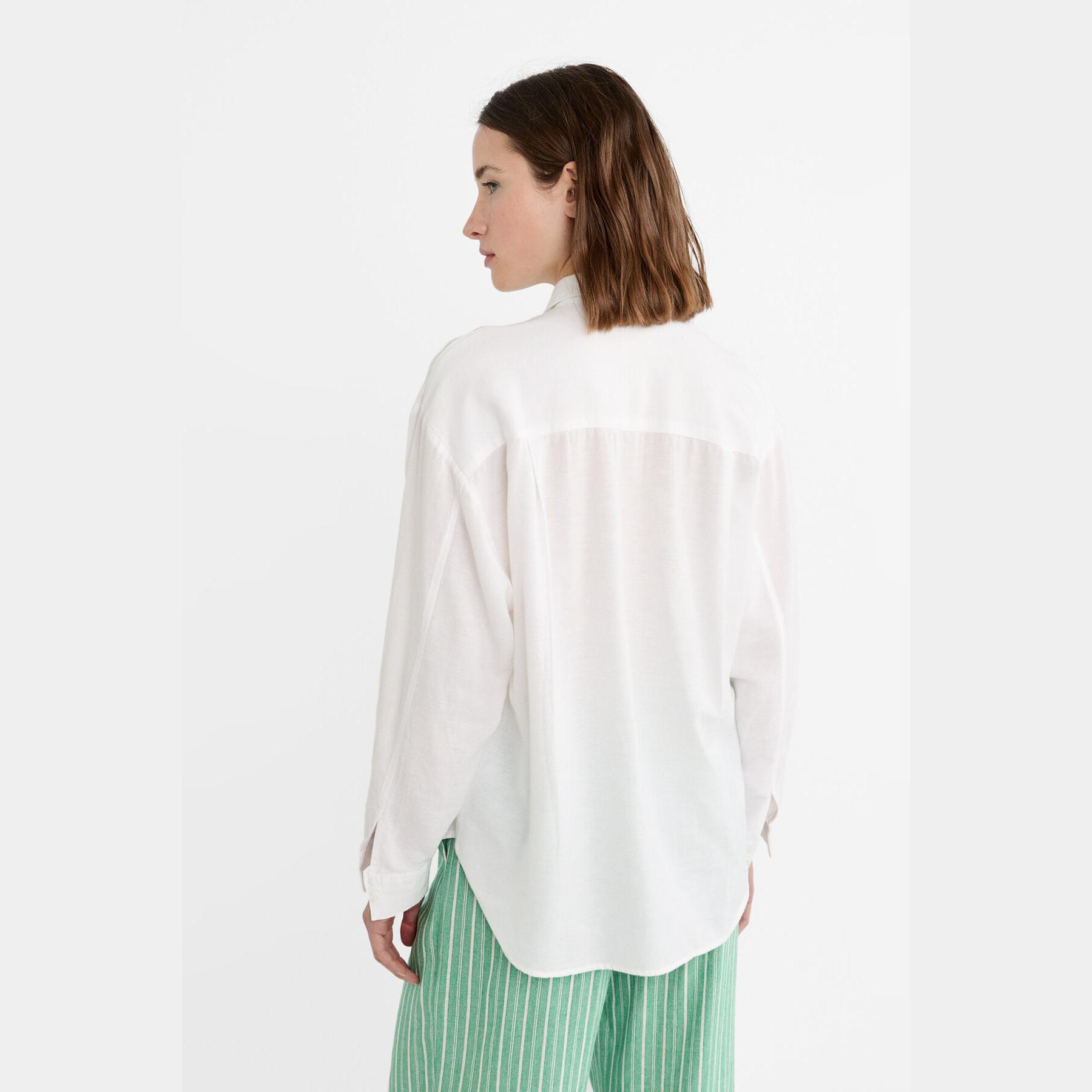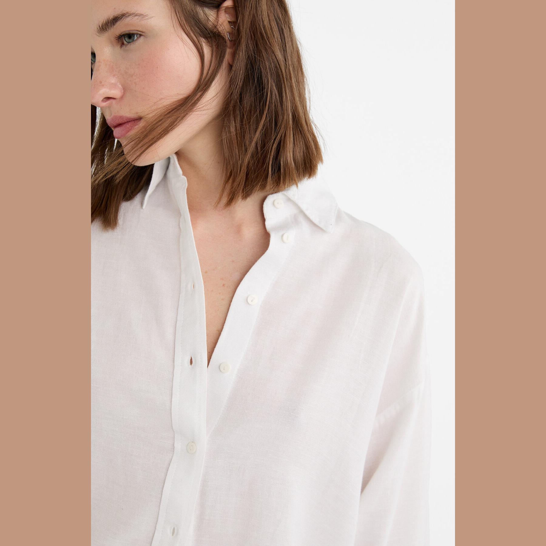 قميص بخليط الكتان – أبيض من Stradivarius