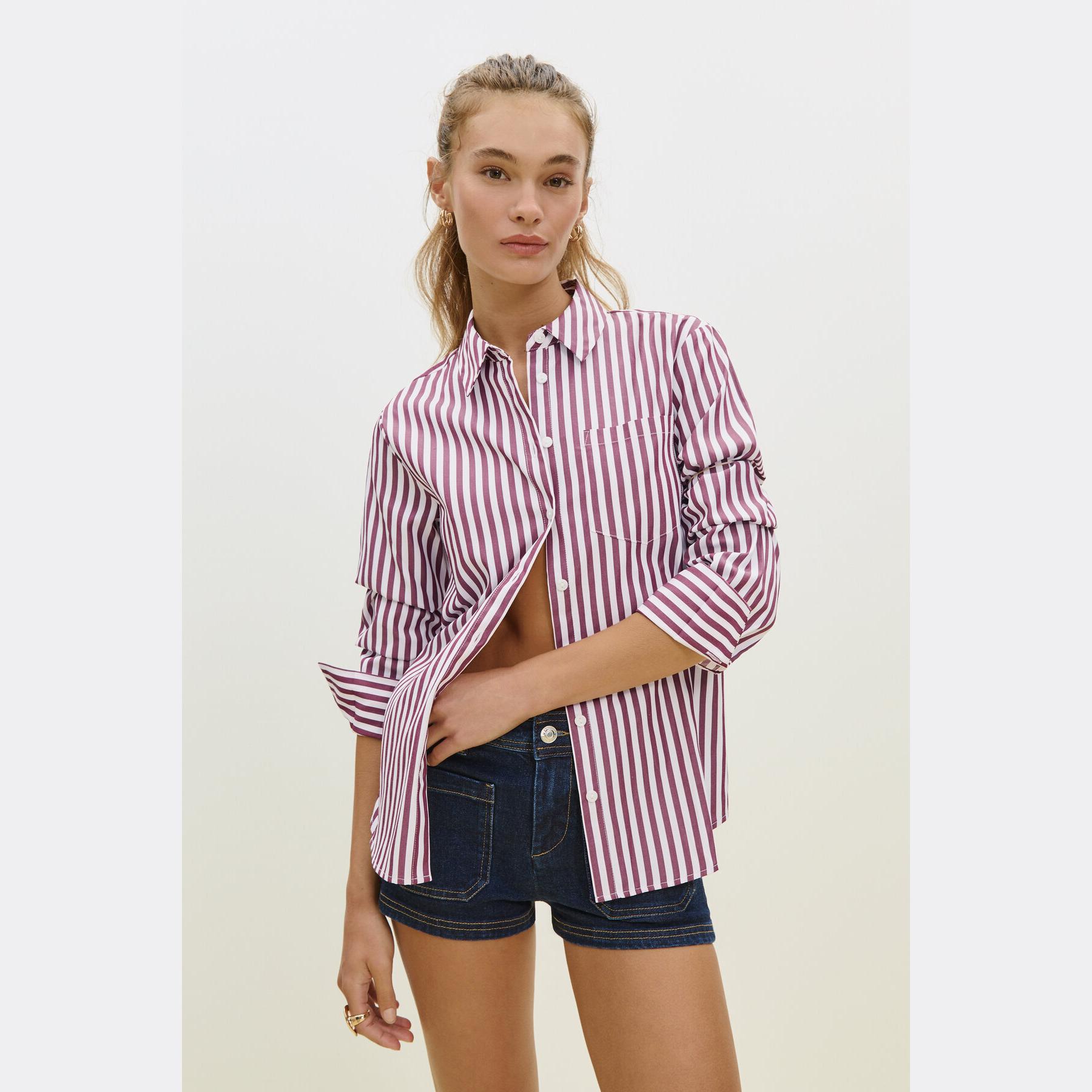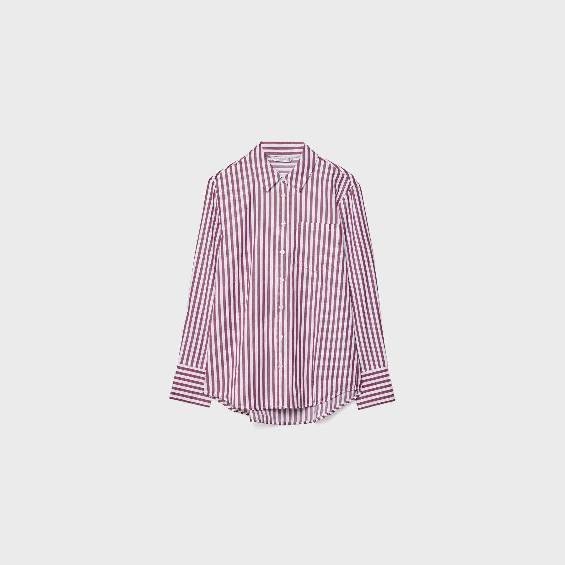 قميص بوبلين مخطط بجيب أمامي – بنفسجي من Stradivarius