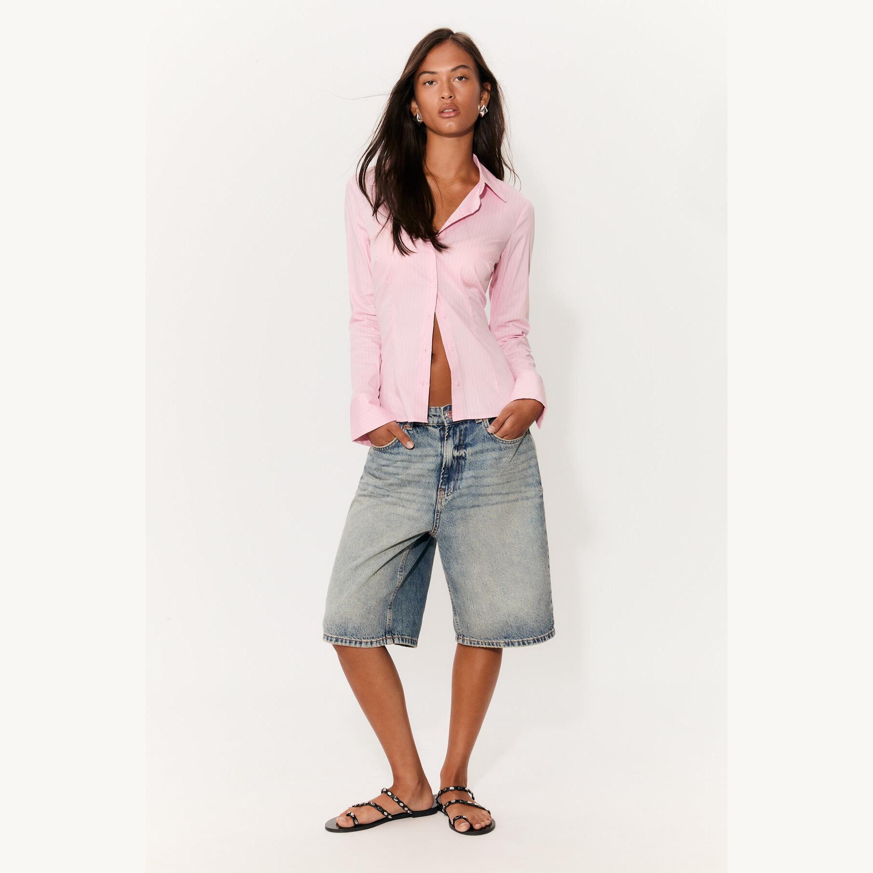 قميص مخطط بقصة ضيقة – وردي فاتح من Stradivarius