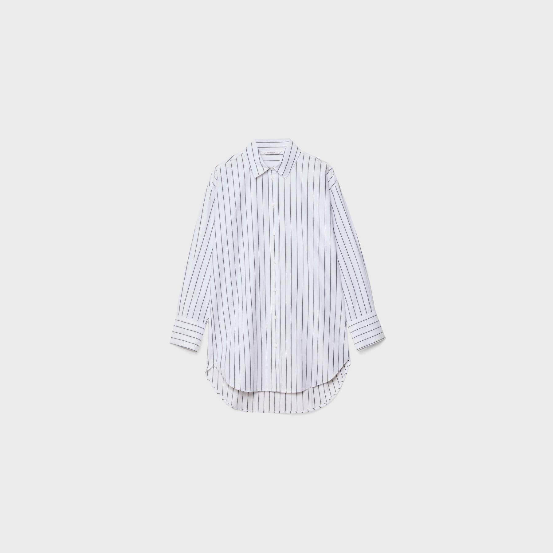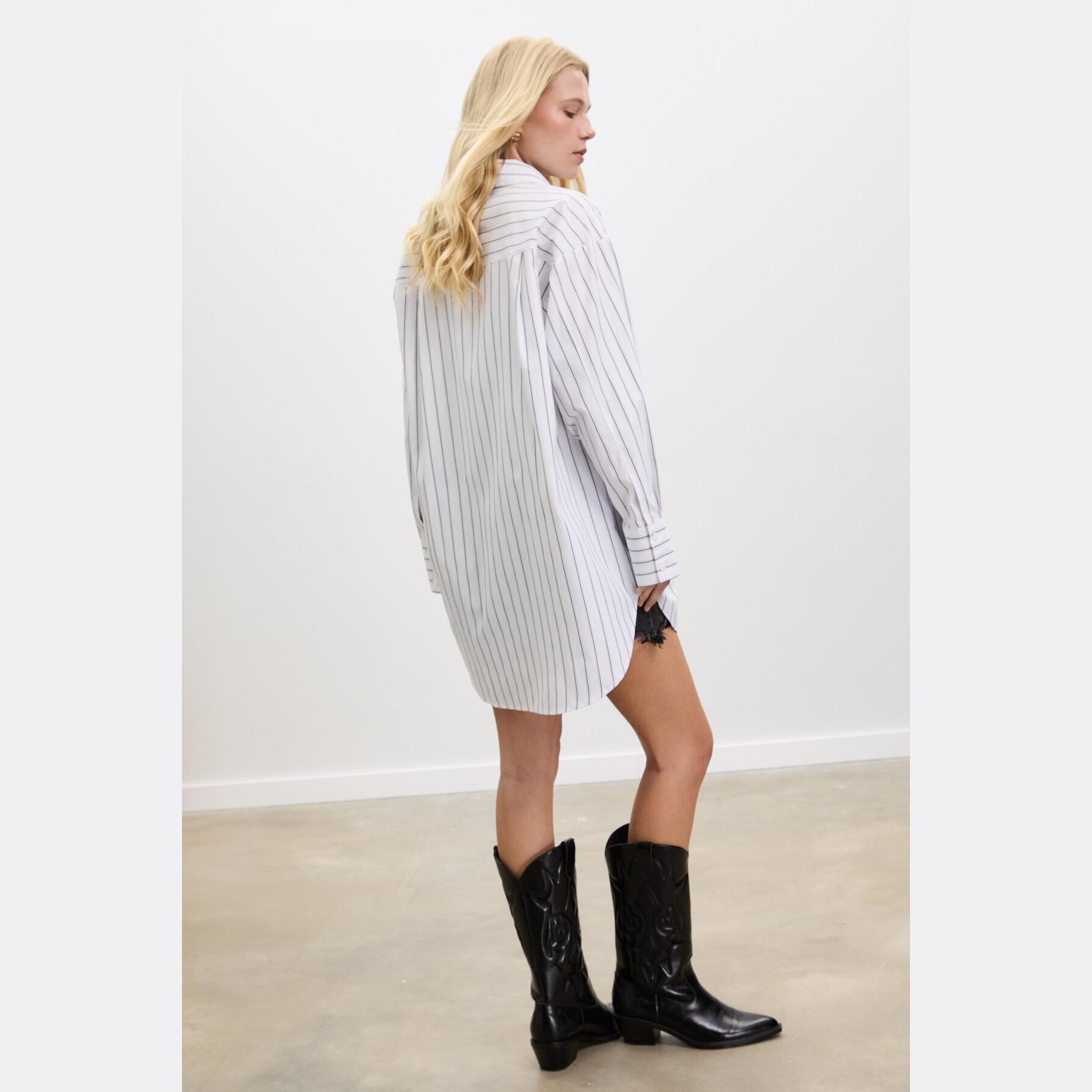 - التصميم: قميص طويل بوبلين بأزرار وياقة V