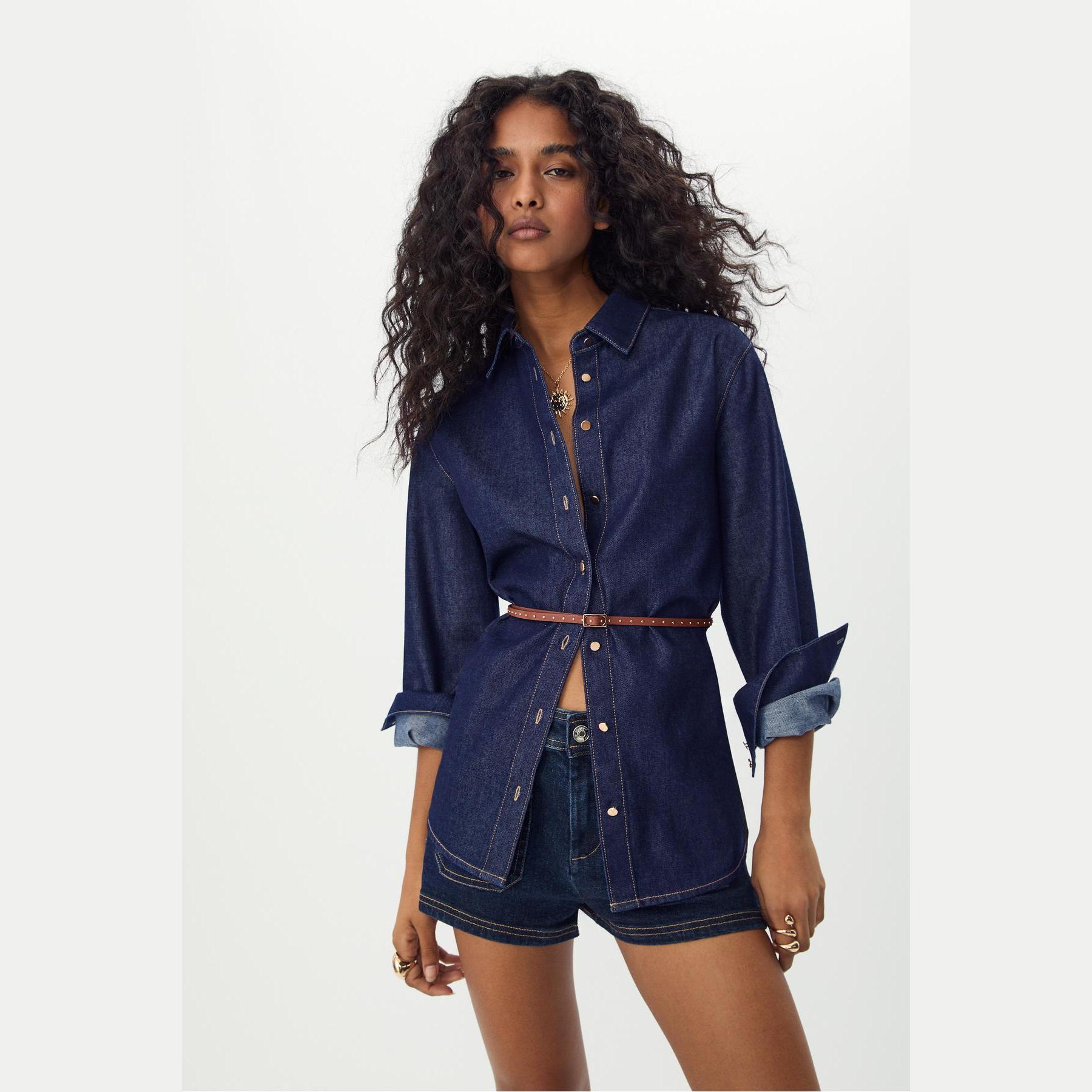 قميص دنيم بكمر معدني – كحلي من Stradivarius